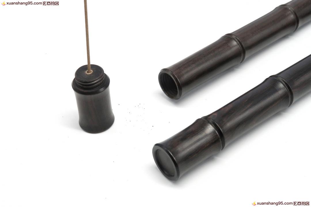 黑檀木 香筒一对 竹节款式 做工精致 长26里面 口径1厘米。