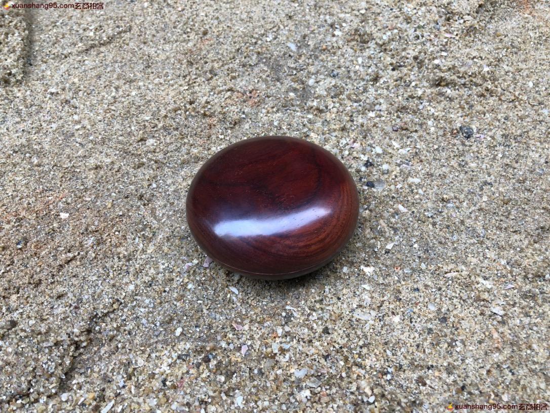 印度小叶紫檀 胭脂盒 零瑕疵 精品 料子细腻 带金星 方便携带 整料挖空制作 直径8厘米 高3.5厘米 重量0.13斤。