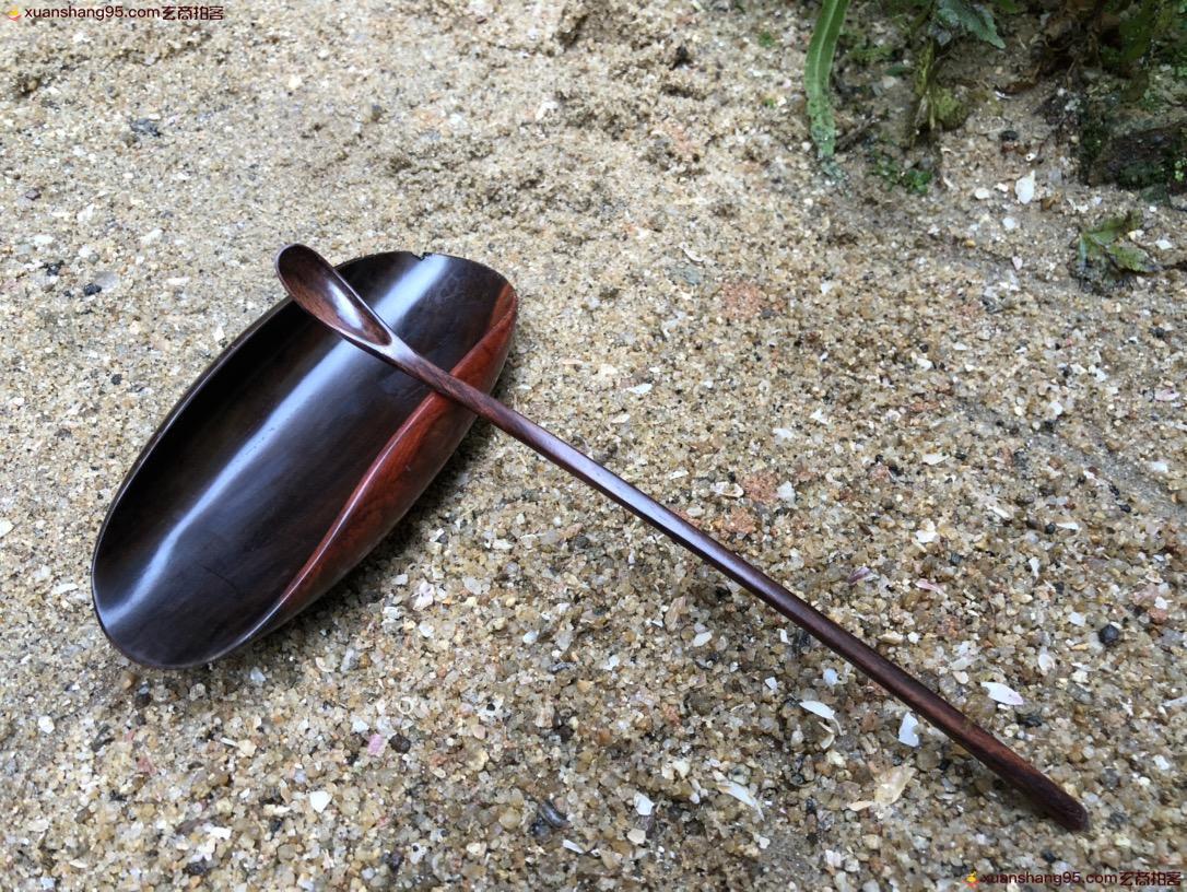 老挝 大红酸枝 茶具两件套 零瑕疵 精品 黑红料 带点水波 全实心 器型漂亮 手感一流。12*5.8*2.8厘米,茶勺18*1*1厘米。