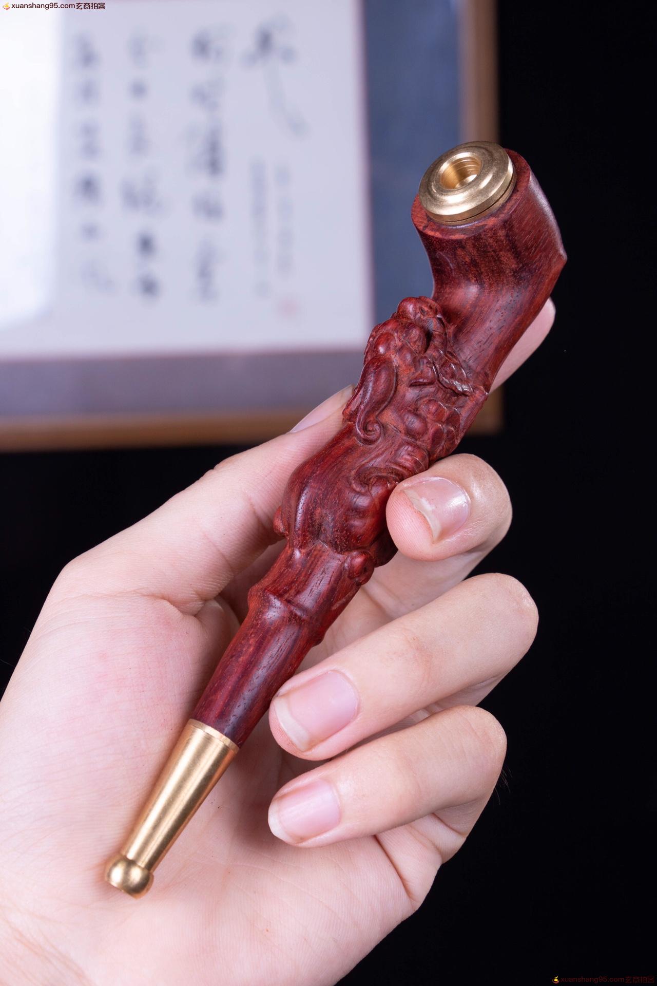 印度小叶紫檀 貔貅烟斗 密度好 手感好 无胶 无蜡 佳品。尺寸15*2.8*3.5厘米 重量0.1斤。
