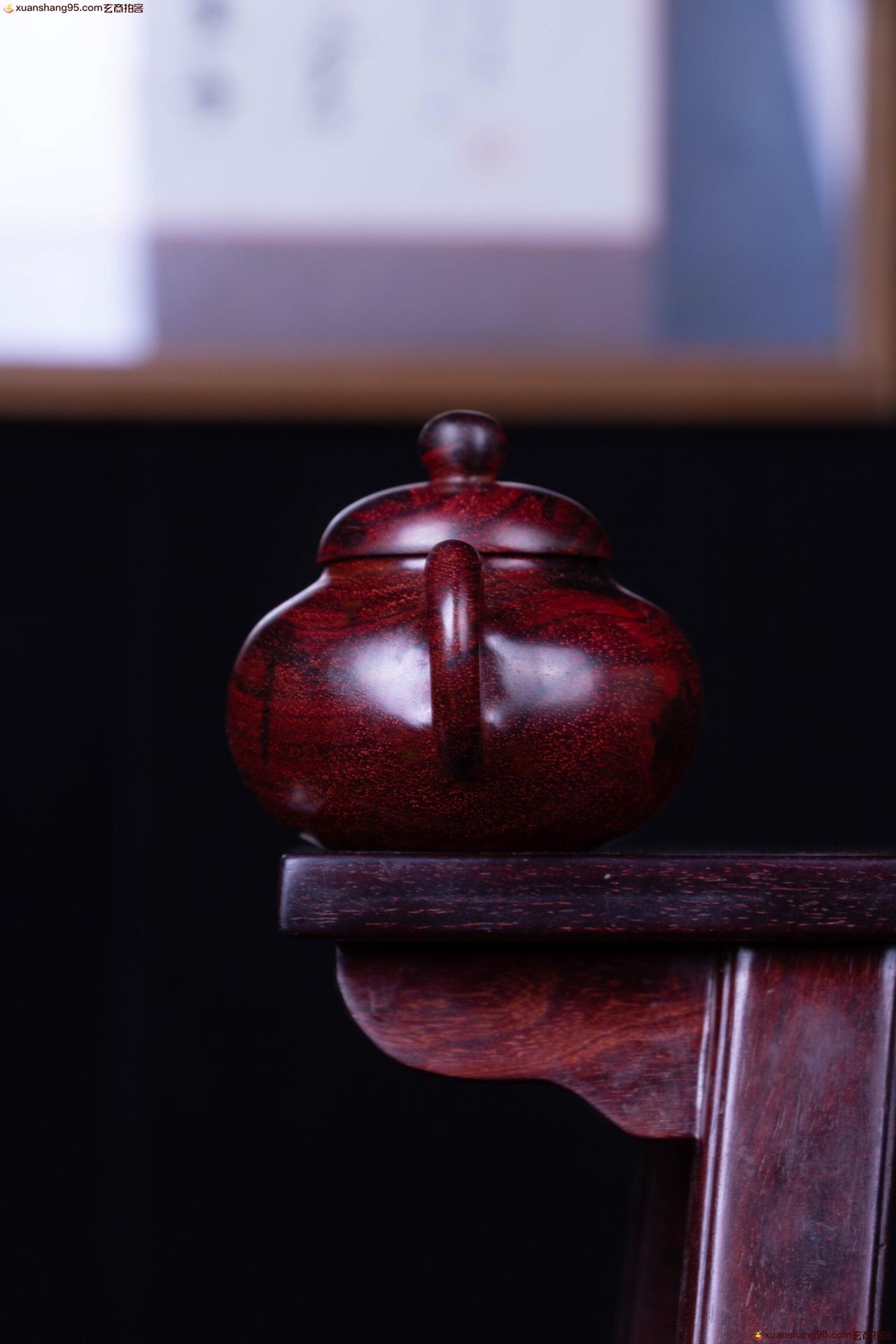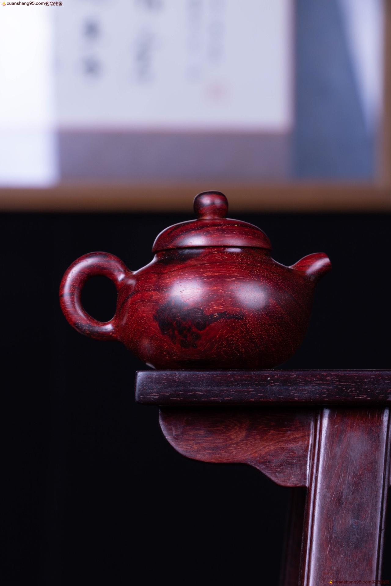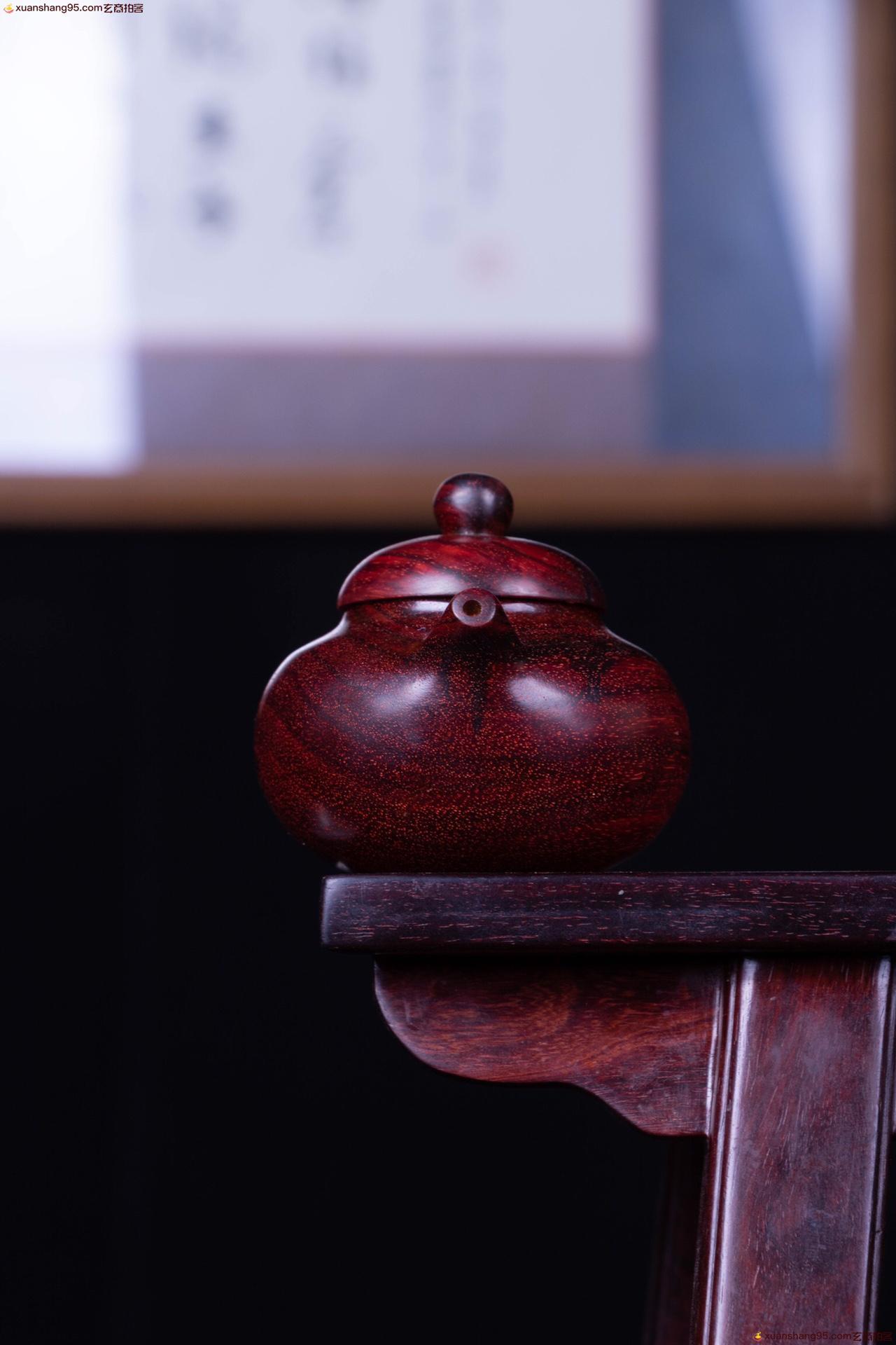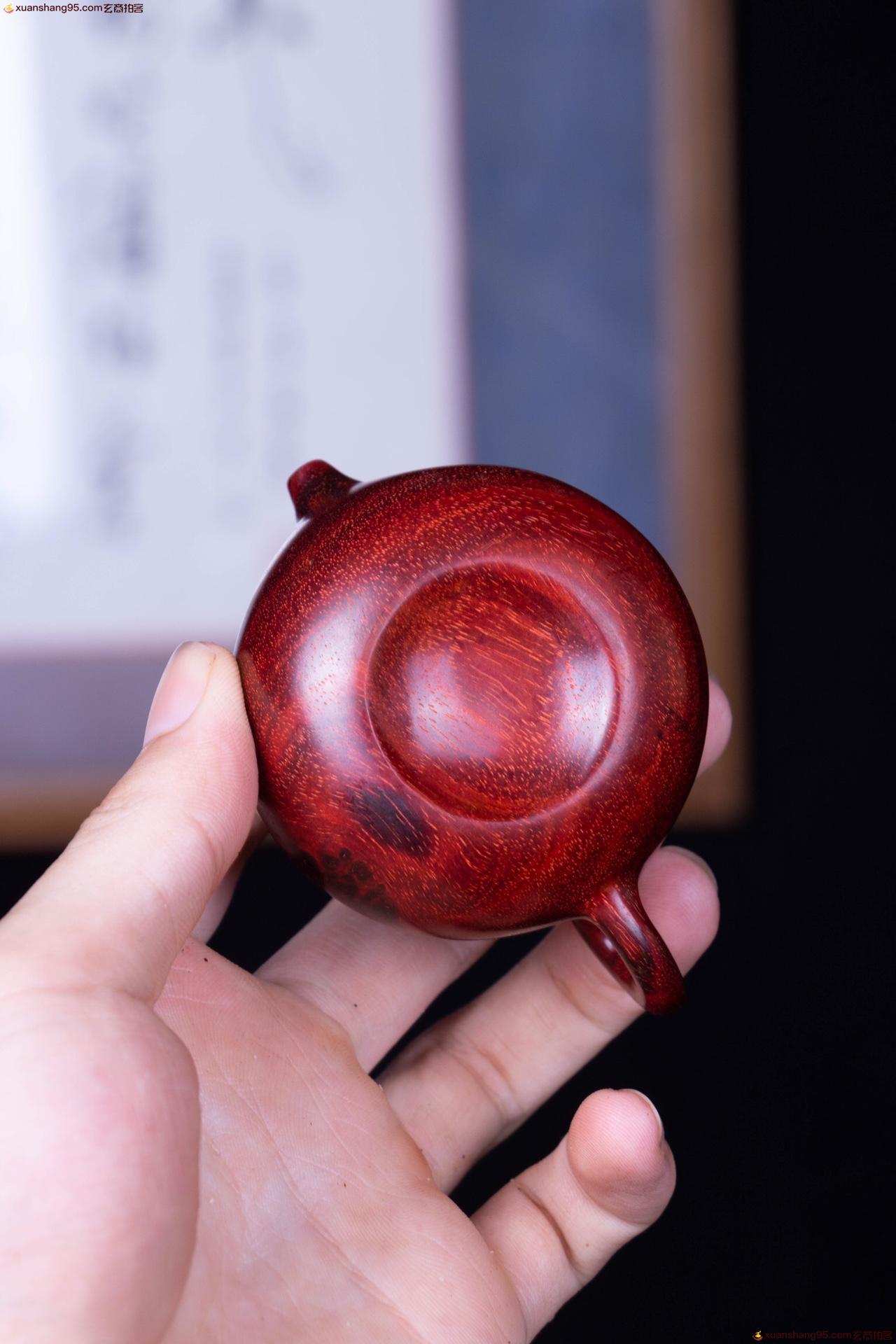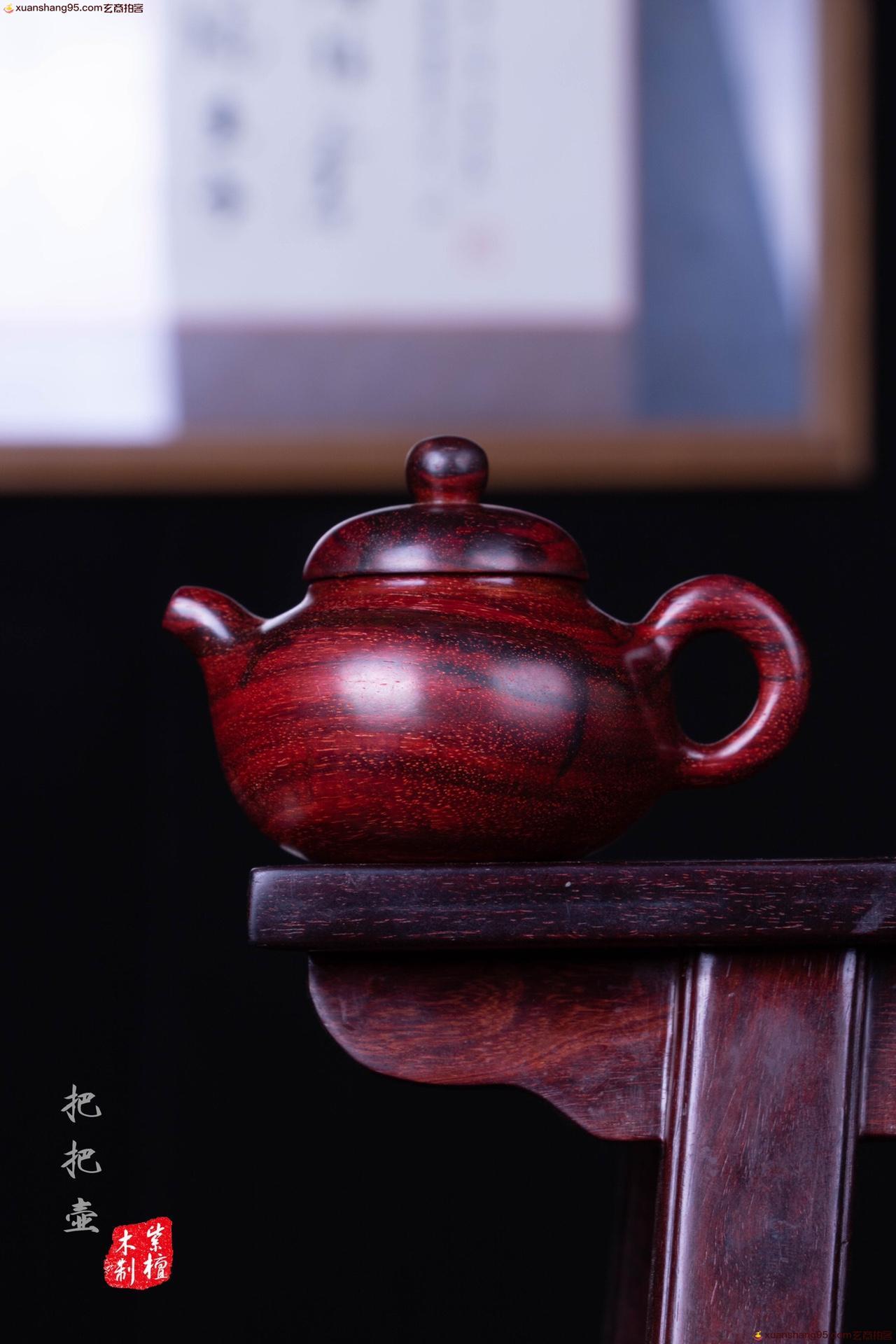印度小叶紫檀 把把壶 料子细腻密度不错 火焰纹 带留疤 把玩手感非常好 长7.8厘米 宽5.8厘米 高6厘米 重量0.21斤。