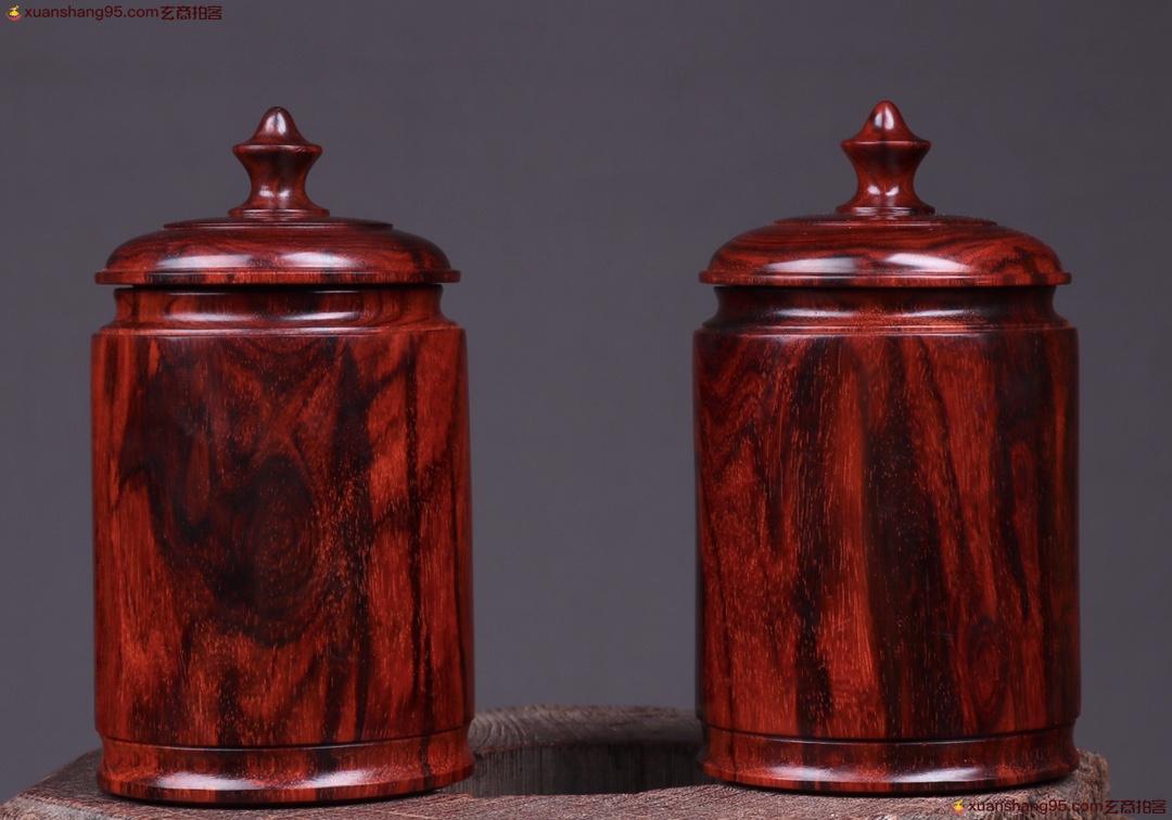 3. 竞拍详细 - 印度小叶紫檀 茶叶罐一对