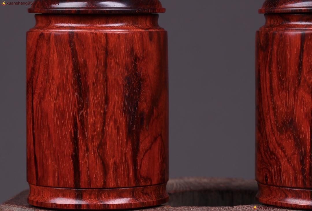 印度小叶紫檀 茶叶罐一对 器型简约大气 实木打造 线条流畅 无拼接。尺寸7.5*7.5*13厘米 重量1.1斤,
