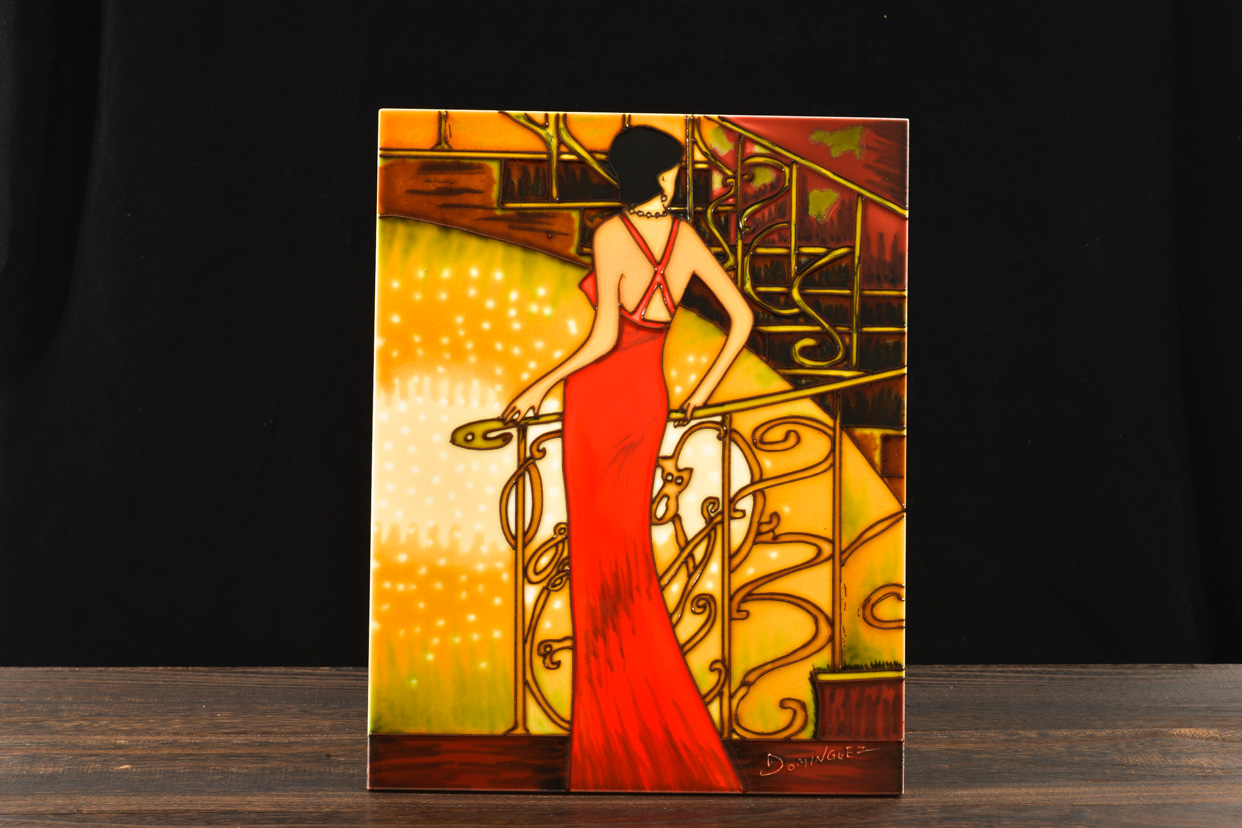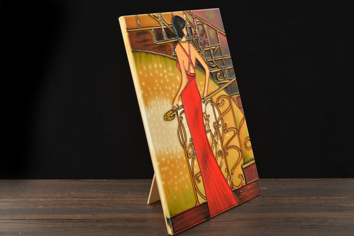 瓷板画 倩影 家具装饰必备佳品。瓷板画是指在平素瓷板上使用特殊的颜料手工绘画、上釉,再经高温烧制而成的一种平面陶瓷工艺品。瓷板画可装裱、或嵌入屏风中,作观赏用。瓷板画的工艺历史悠久,最早可追溯到秦汉时期,到了明中叶真正意义上的瓷板画出现,清中期,随着*瓷艺的迅猛发展,当时的瓷画艺人致力于把纸绢上的中国画移植到瓷器上,因此瓷板画受到了人们的青睐,成为重要的商品瓷。尺寸35×27cm。
