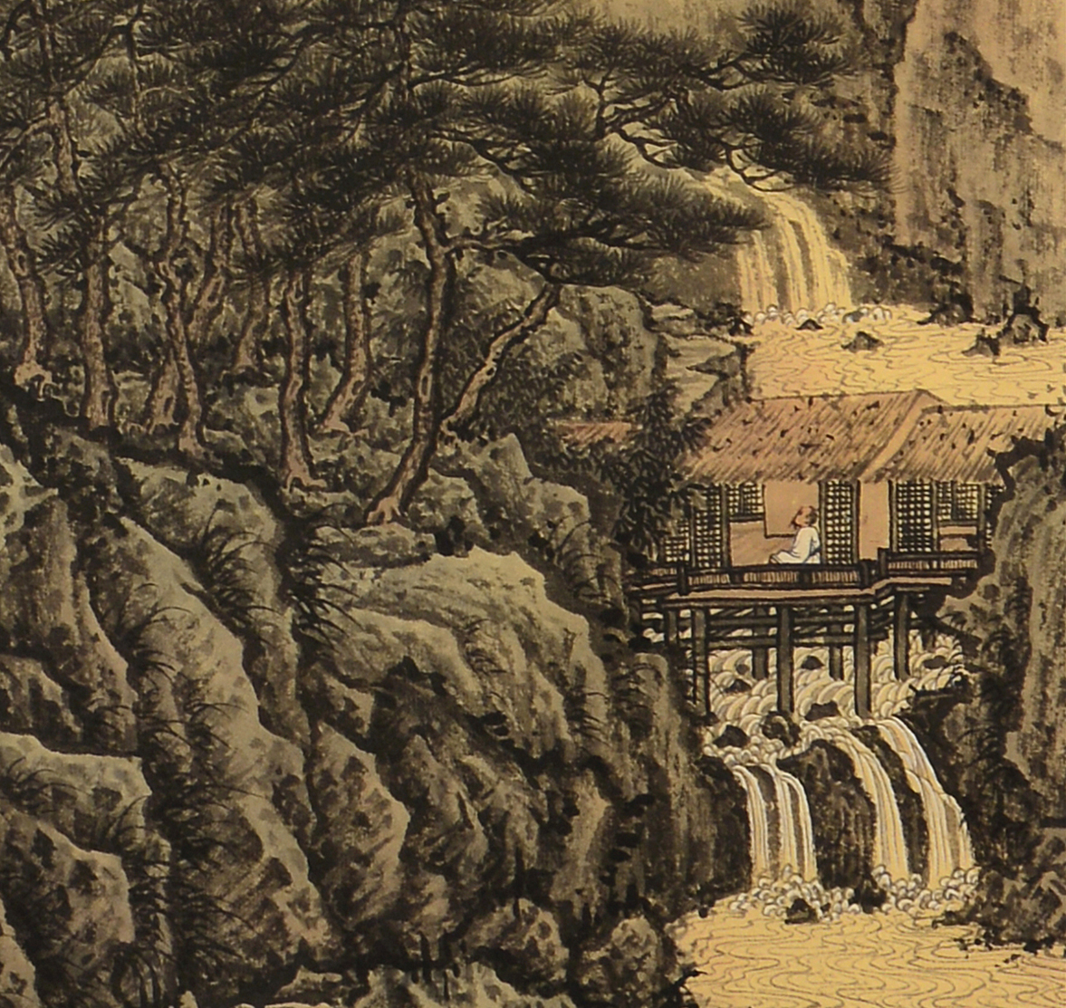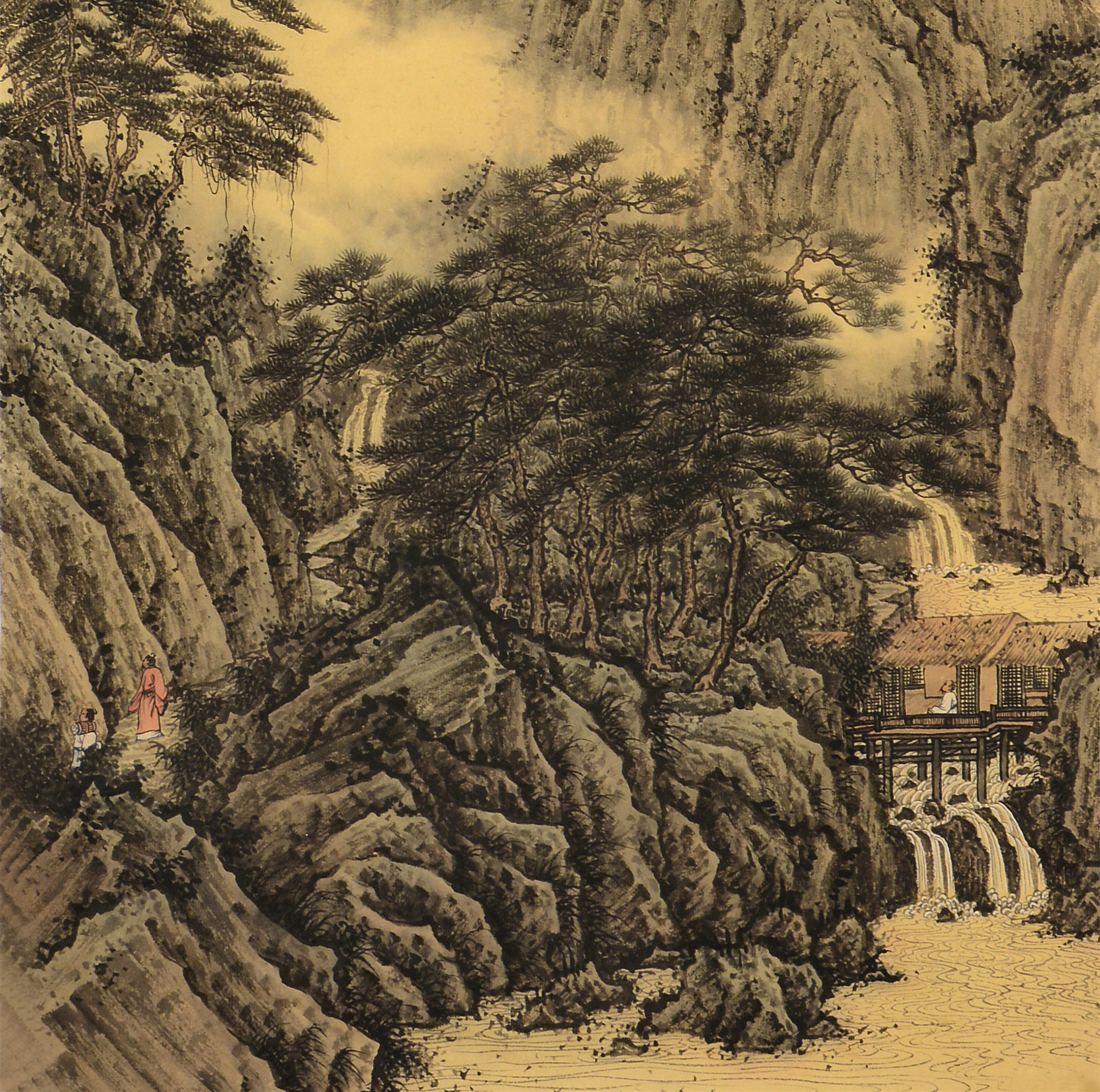 吴显刚 《水阁松风图》山水名家 精工笔山水画