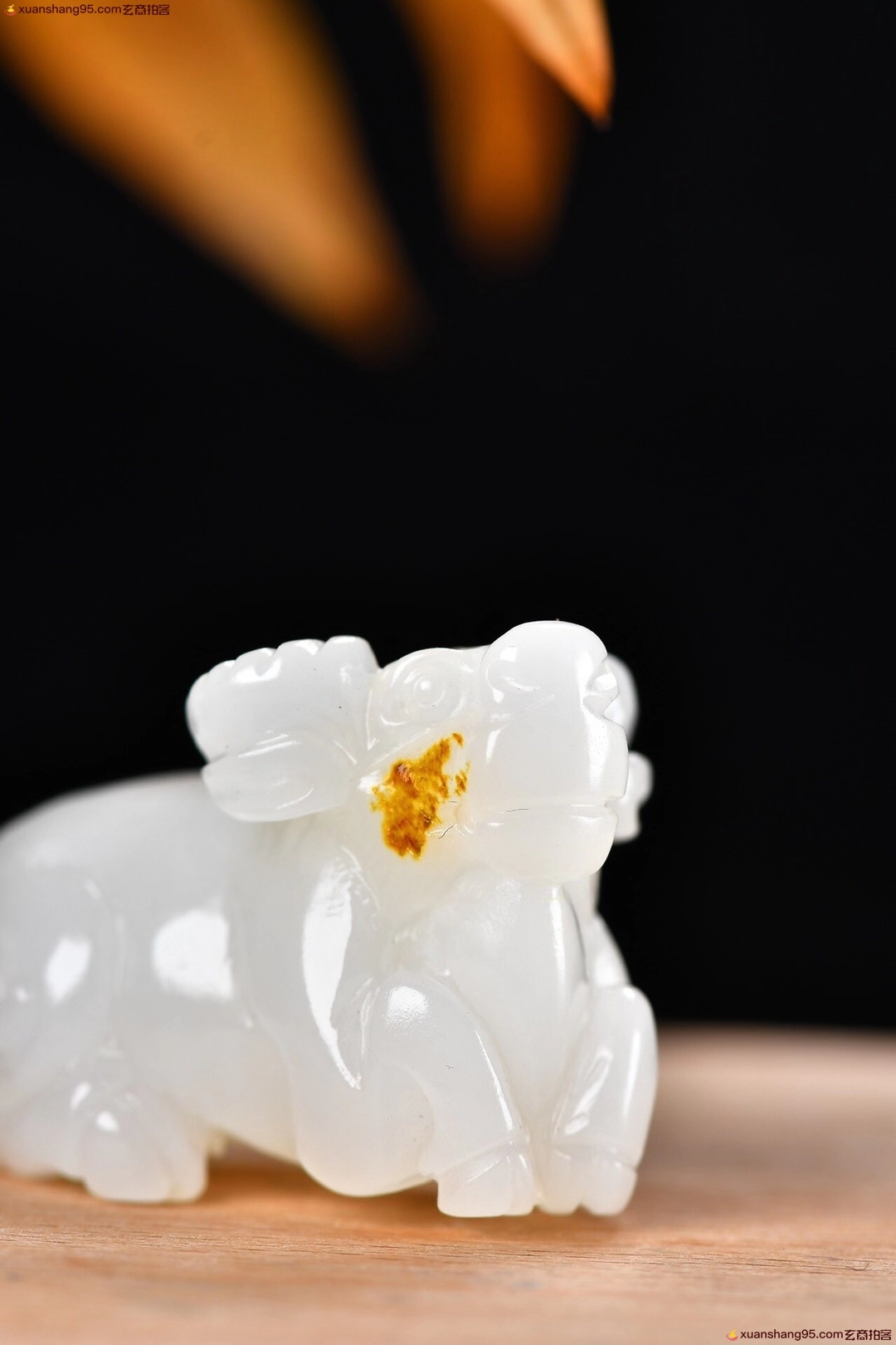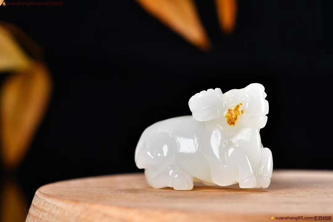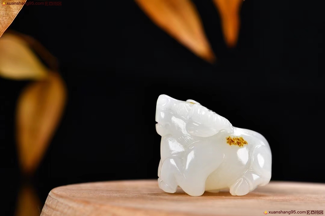《扭转乾坤》和田玉籽料 规格:43.23.29重:33.2克。白度一级,玉质温润细腻,上手油润满满,脂粉满溢,牌面精工雕刻牛,牛代表着拥有旺盛的生命力,自强不息,寓意牛转乾坤,平安无事。