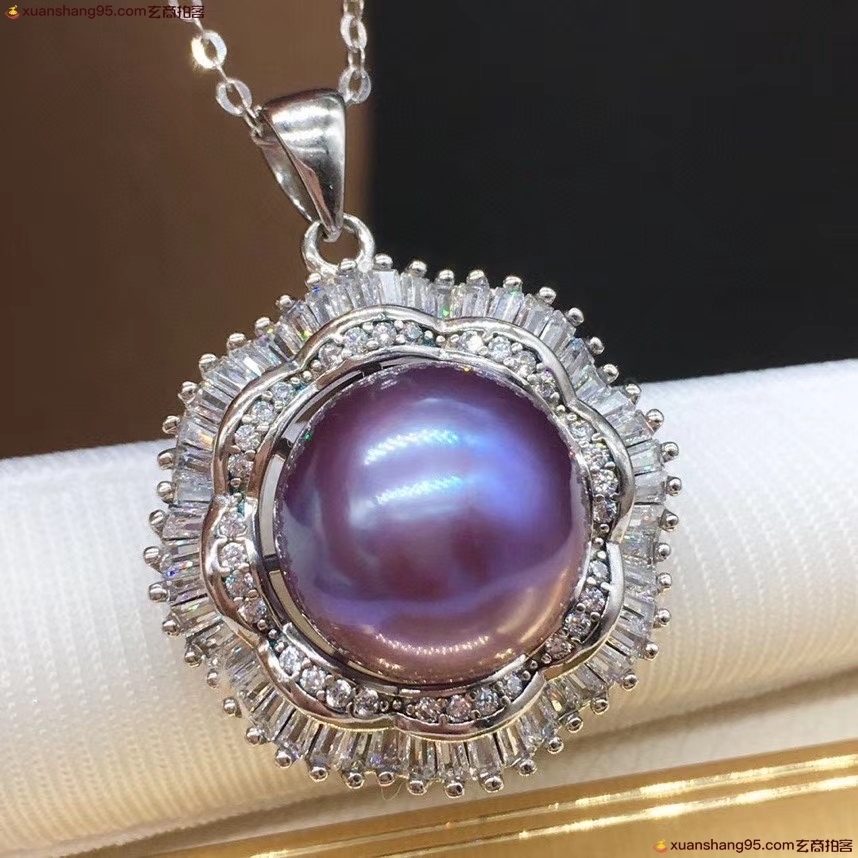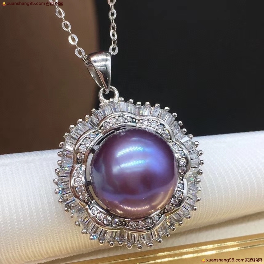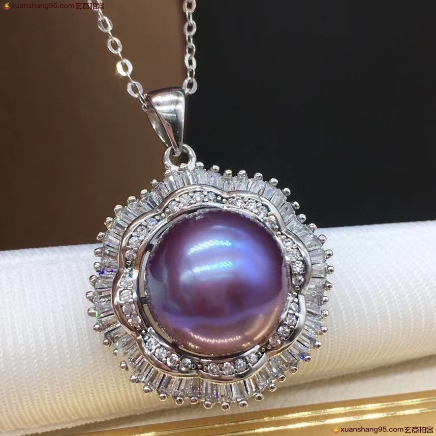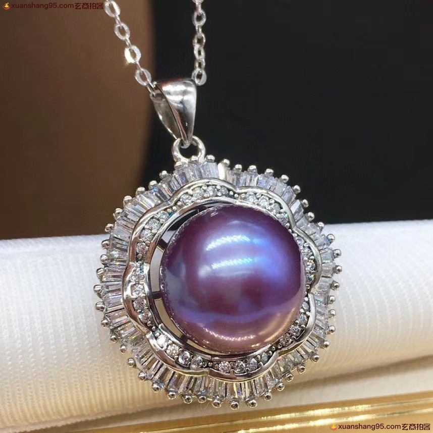 纯天然 妖艳紫 珍珠吊坠 纯银镶嵌 进口工艺 正圆 *强光 高品质 尺寸11毫米。