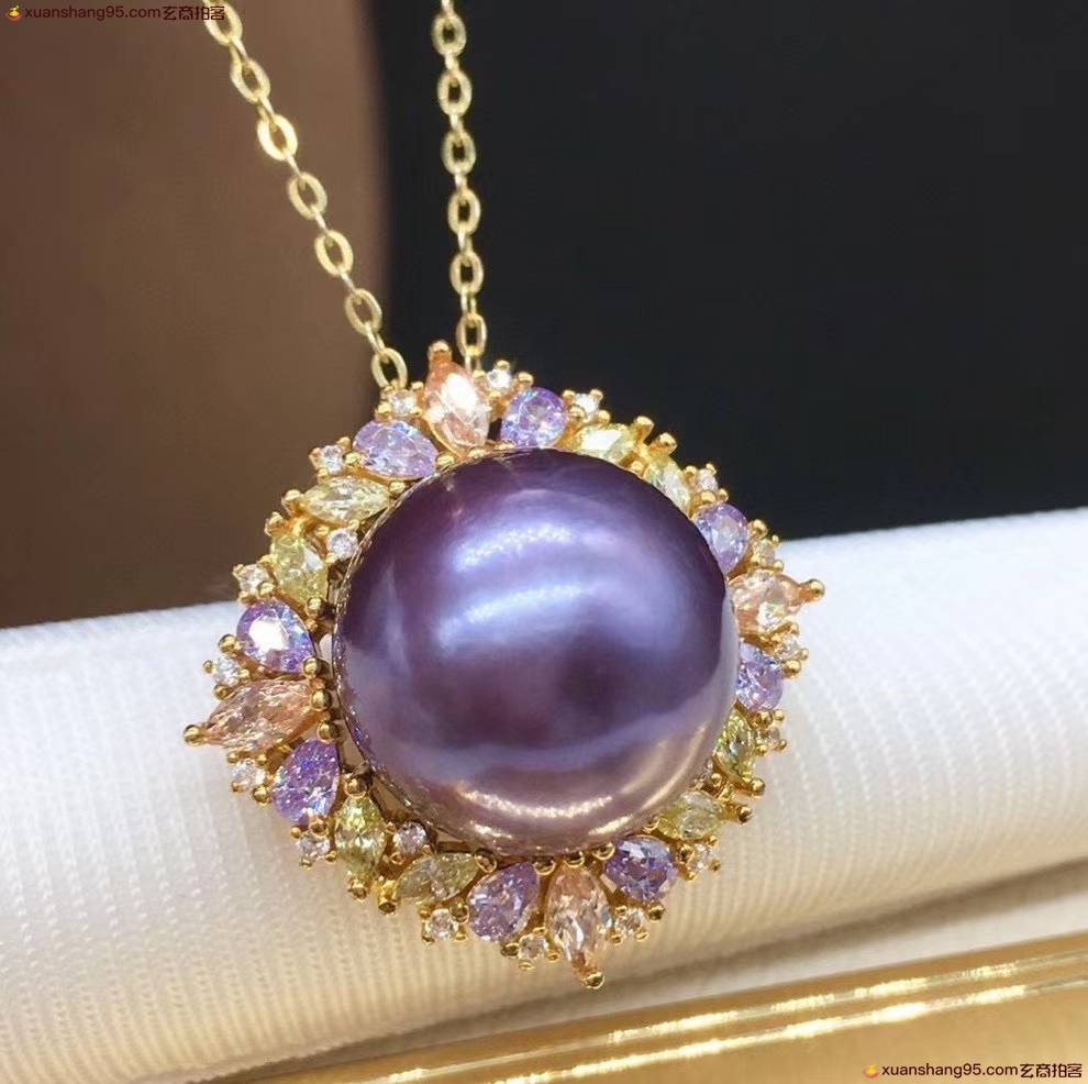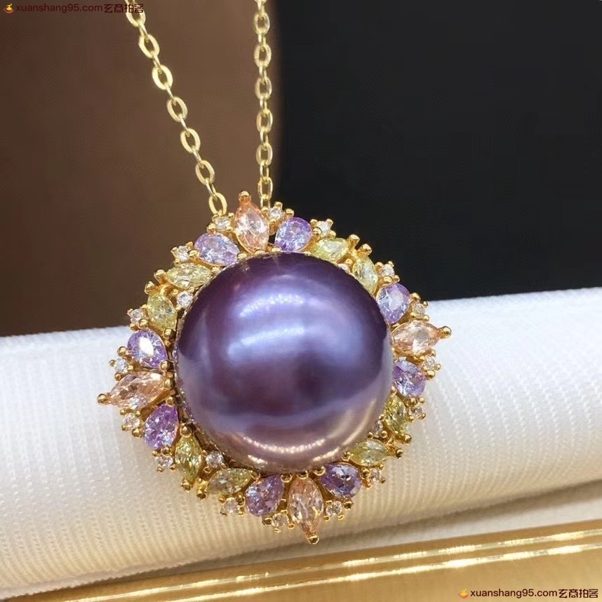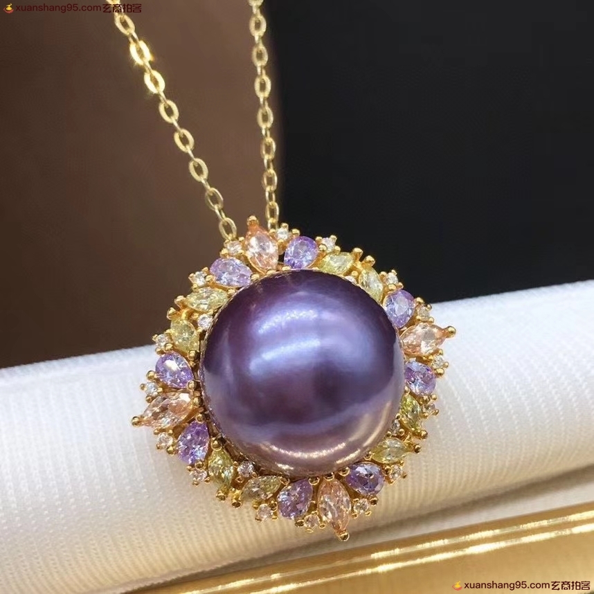 纯天然 妖艳紫 珍珠吊坠 纯银镶嵌 进口工艺 正圆 *强光 高品质 尺寸12毫米。