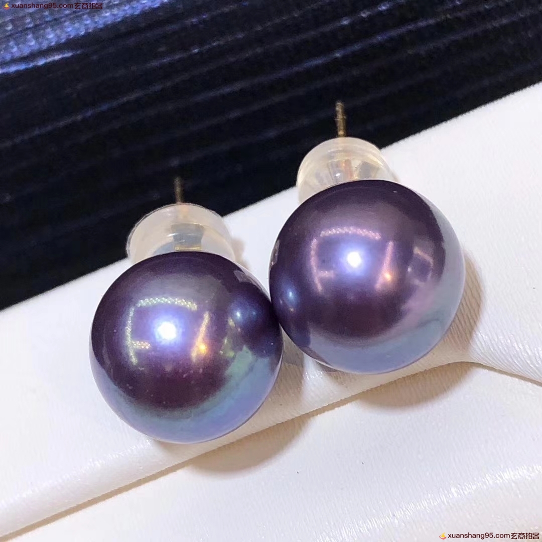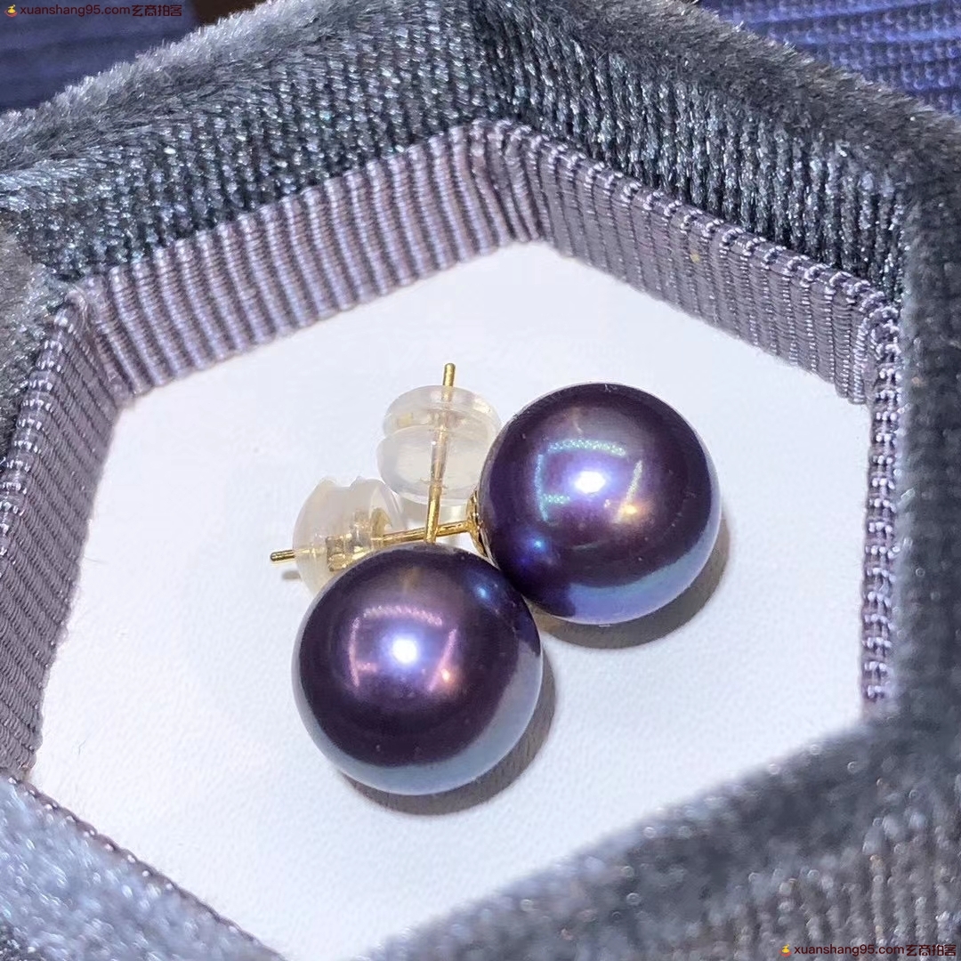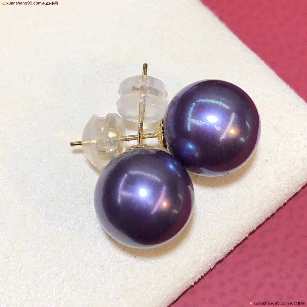 *品 帝王紫 珍珠耳钉 时尚百搭款 妖艳紫 大颗粒 正圆 尺寸12毫米。