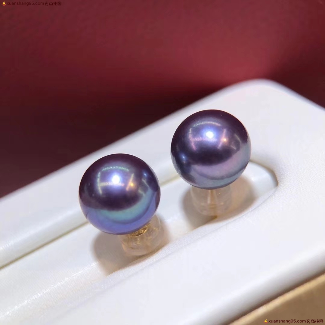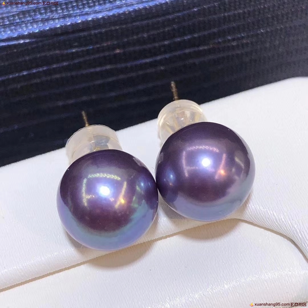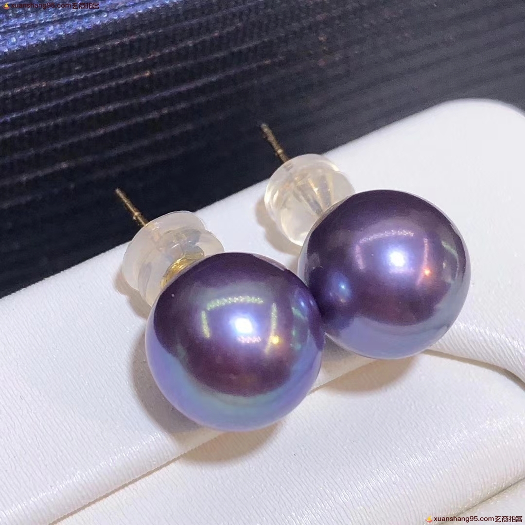*品 帝王紫 珍珠耳钉 时尚百搭款 妖艳紫 大颗粒 正圆 尺寸12毫米。