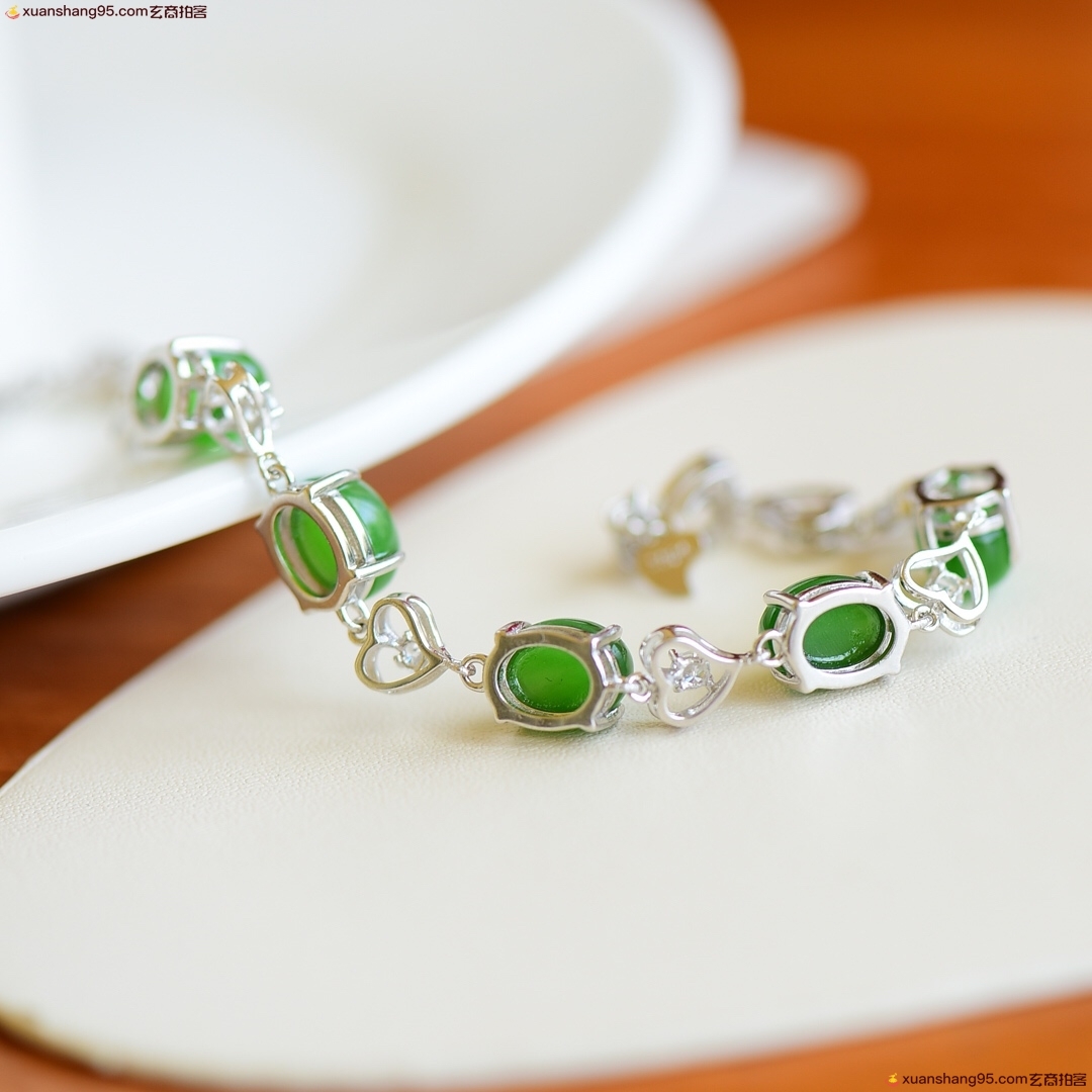 3. 竞拍详细 - 纯银镶嵌 碧玉手链