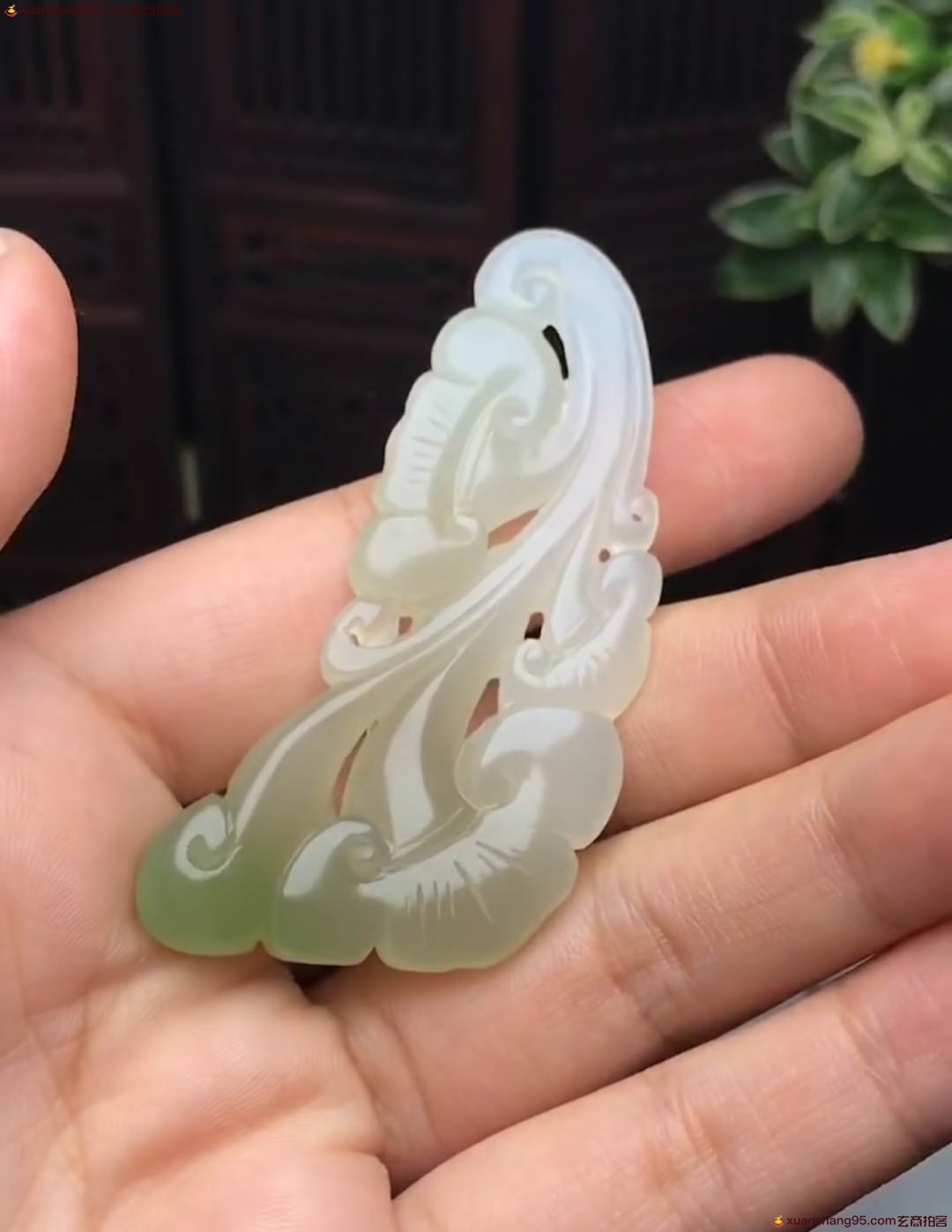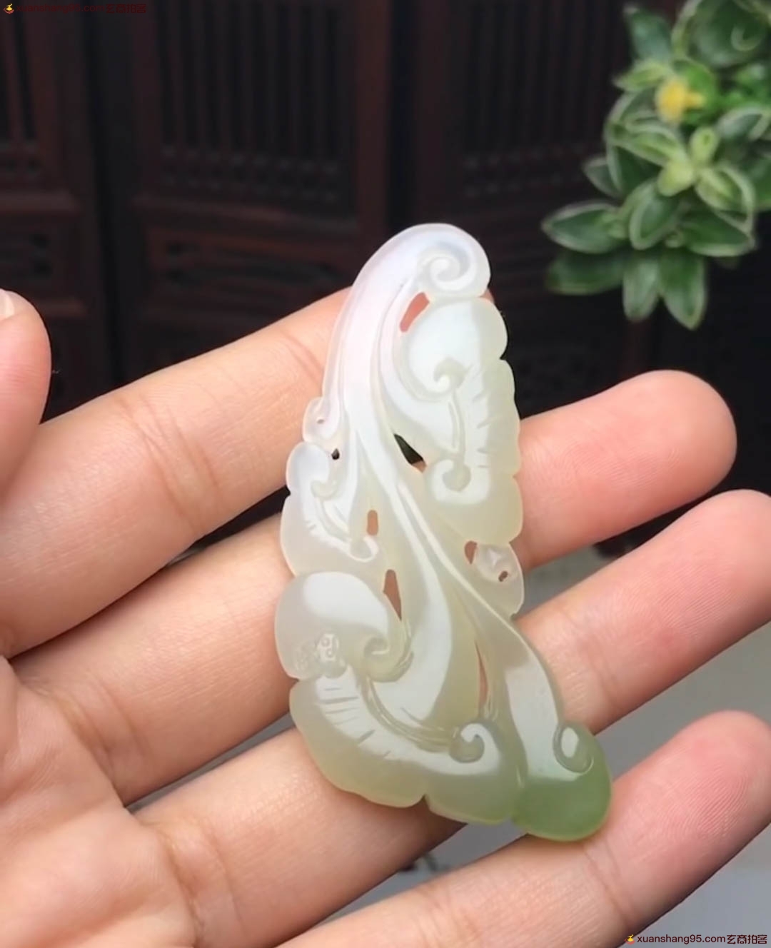 和田玉 吉祥如意 带翠挂件 玉质细腻 油润 油性十足。尺寸61*31*7毫米 重量13克。