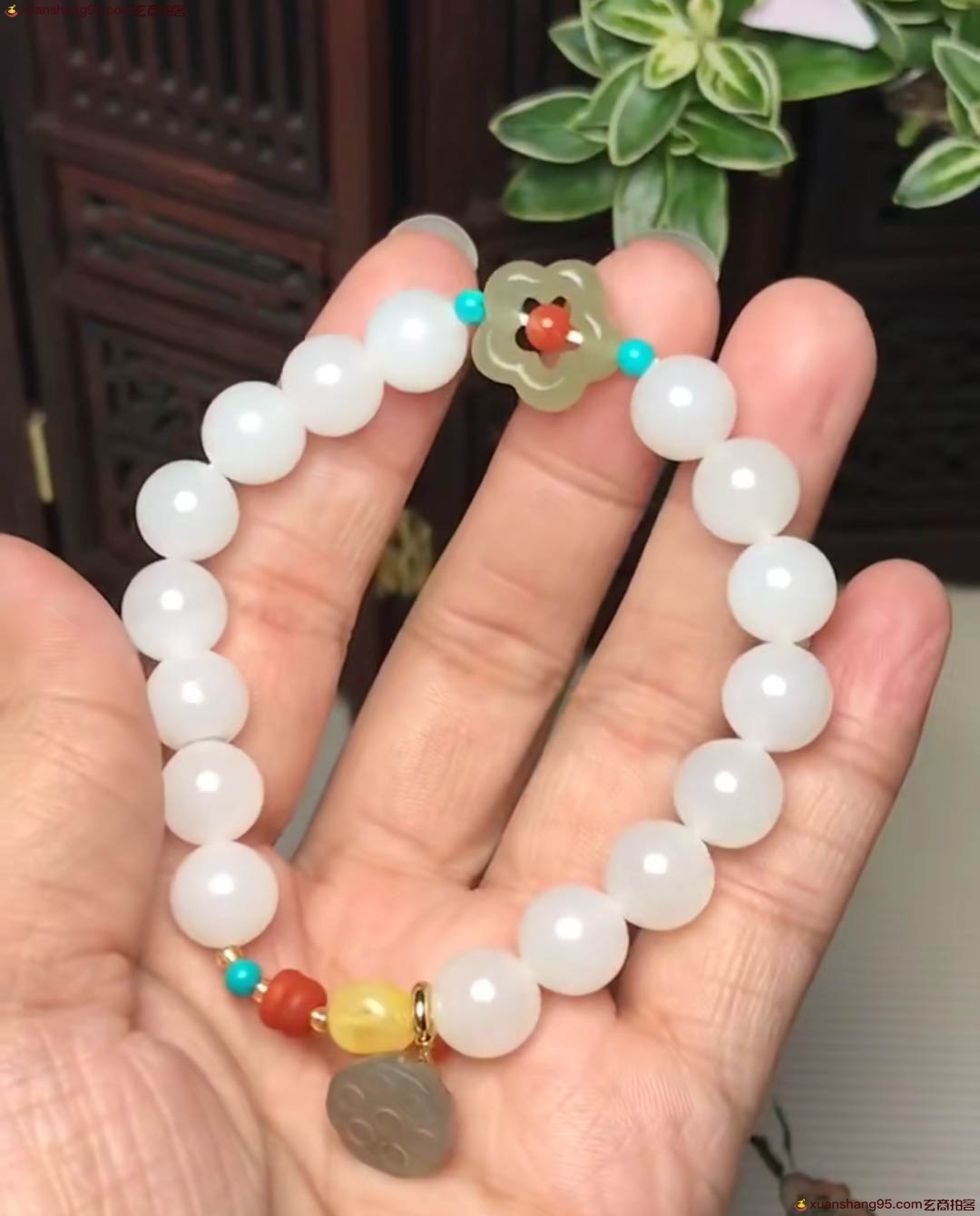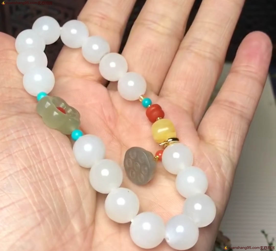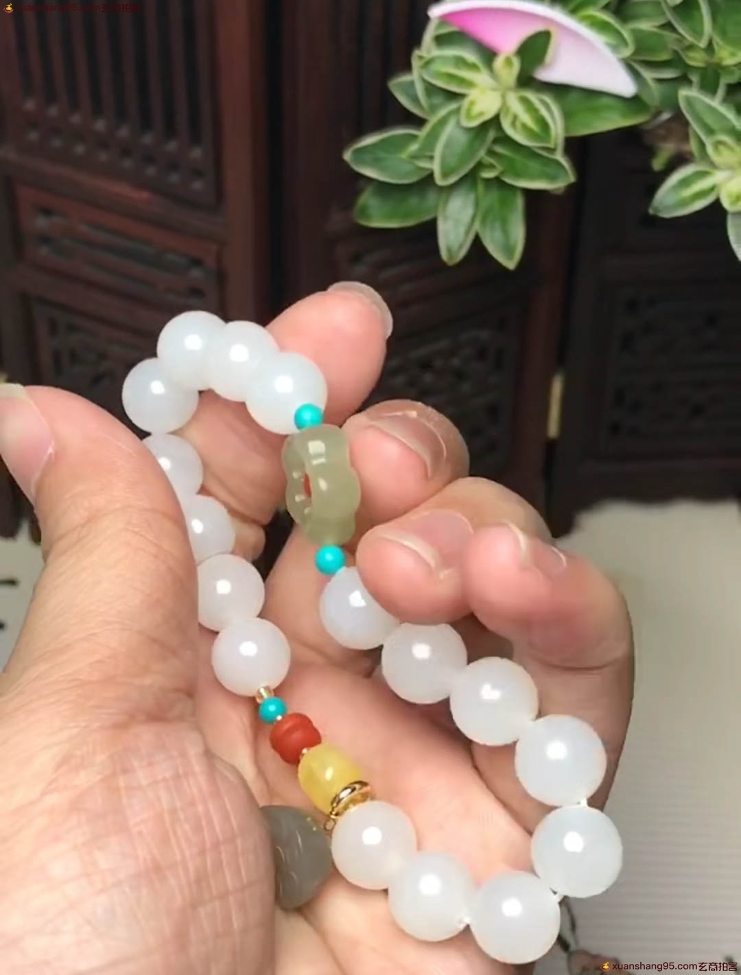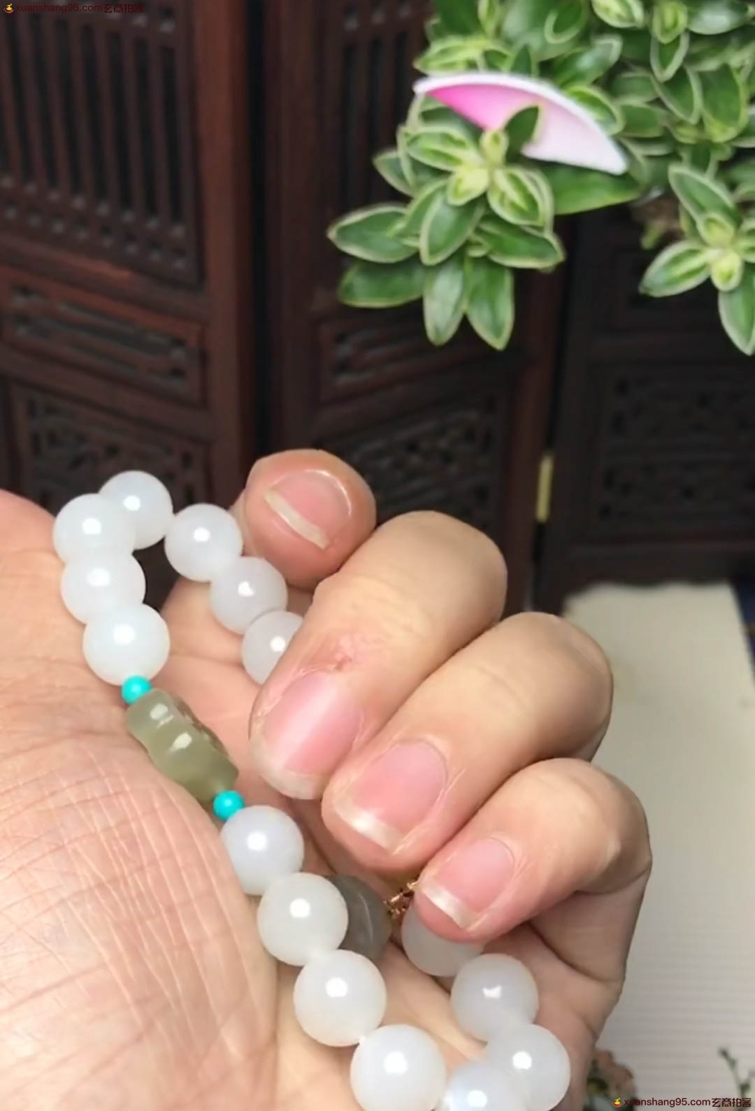 和田玉 白玉 手串 玉质温润 细腻 油性十足 尺寸9毫米 重量25克。