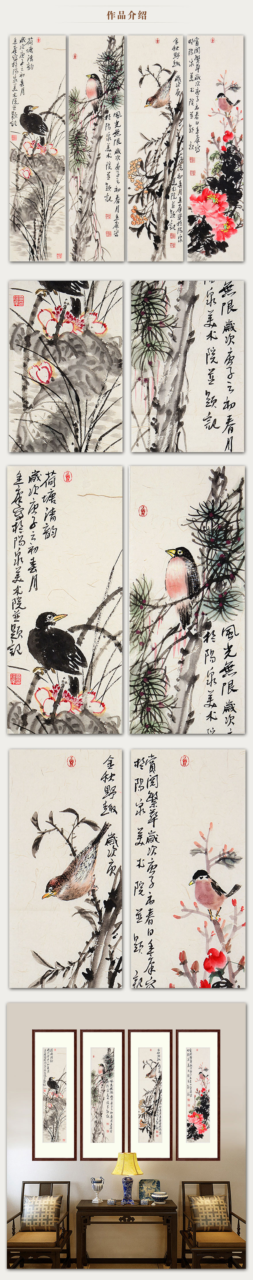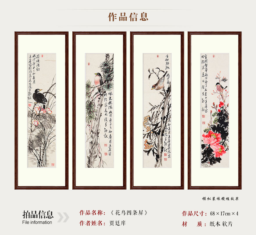 3. 竞拍详细 - 贾廷庠《花鸟四条屏》山西省美协理事
