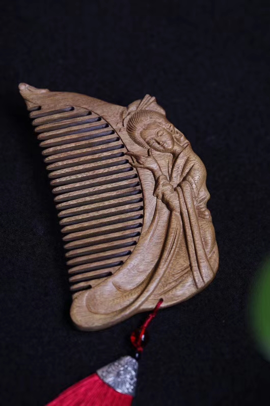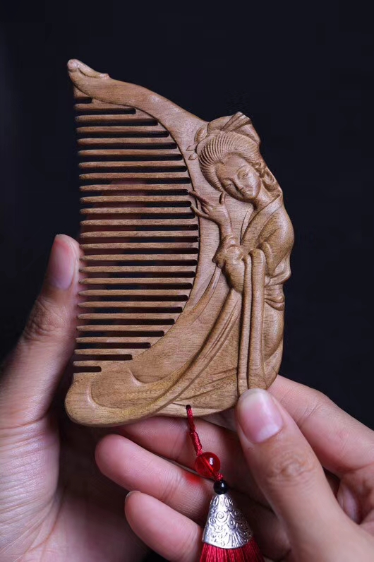 金丝楠木 仕女抚琴 木梳,结发同心。以梳为礼。红尘不负,青丝白发,只愿与你一世长情!尺寸:12*6.5*1.3厘米。
