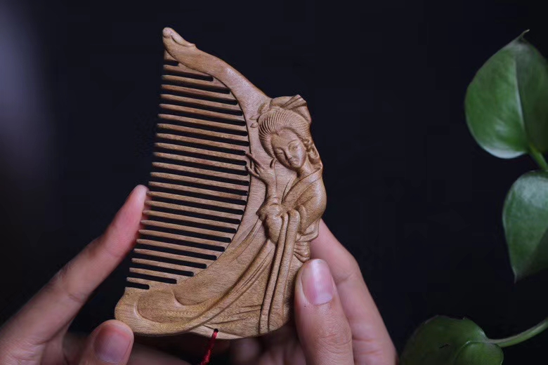 金丝楠木 仕女抚琴 木梳
