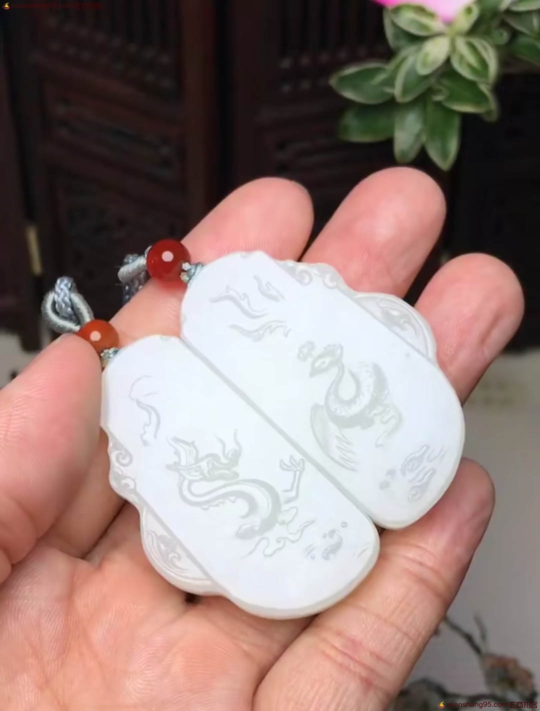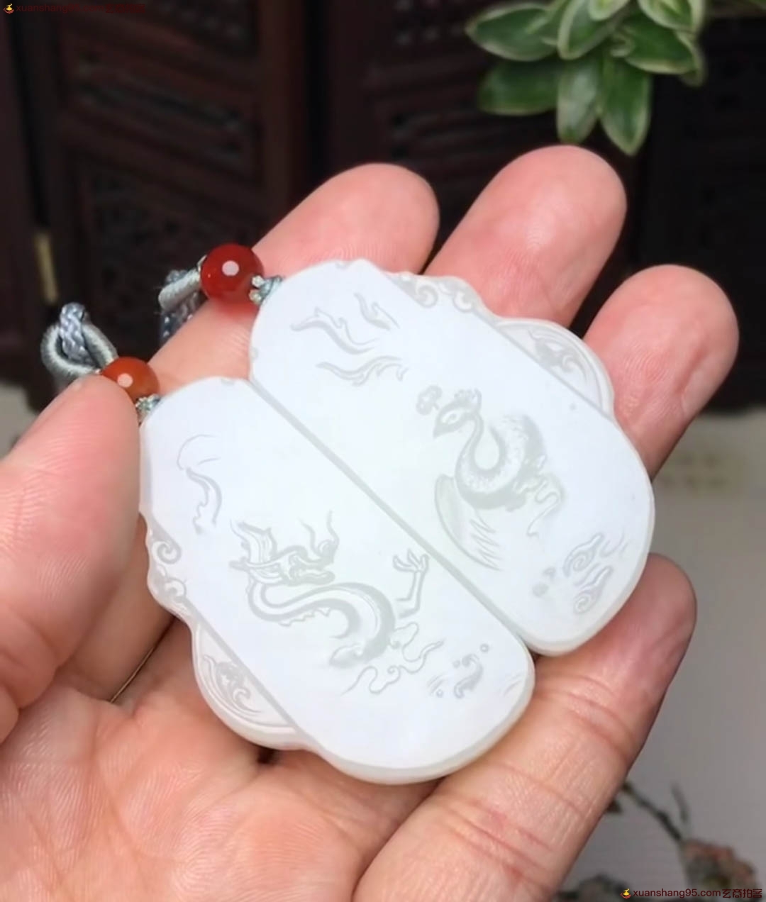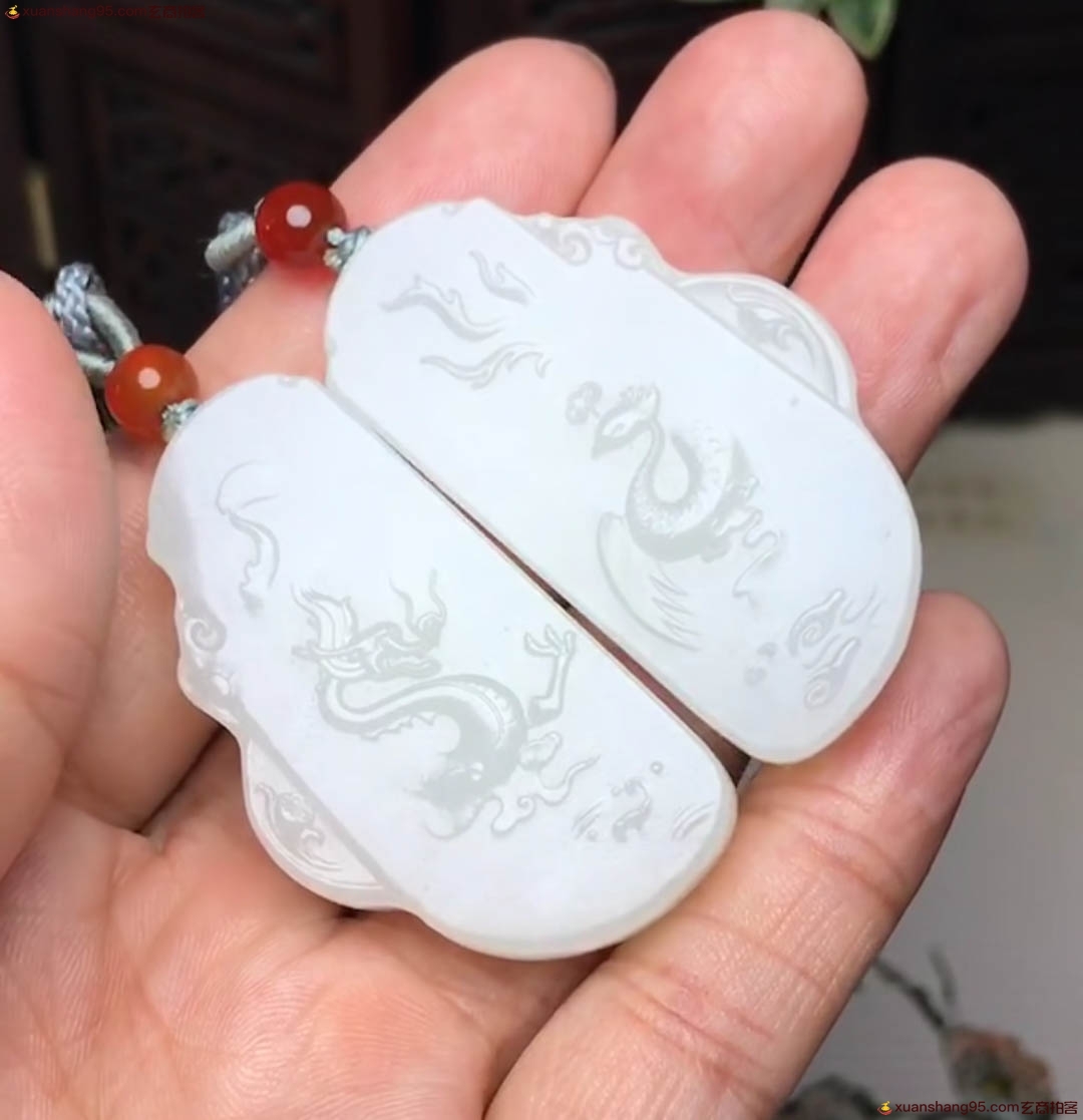 精雕 龙凤呈祥 一对 玉质温润 细腻 油性十足 雕工精湛 尺寸45*24*8毫米 重量40克。