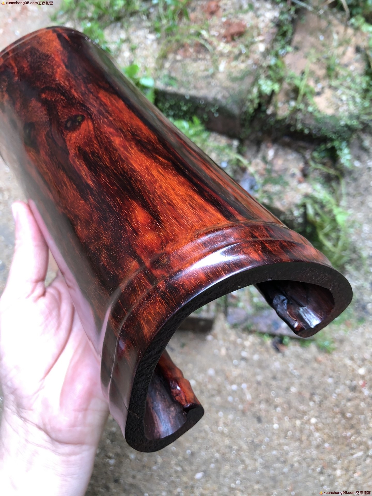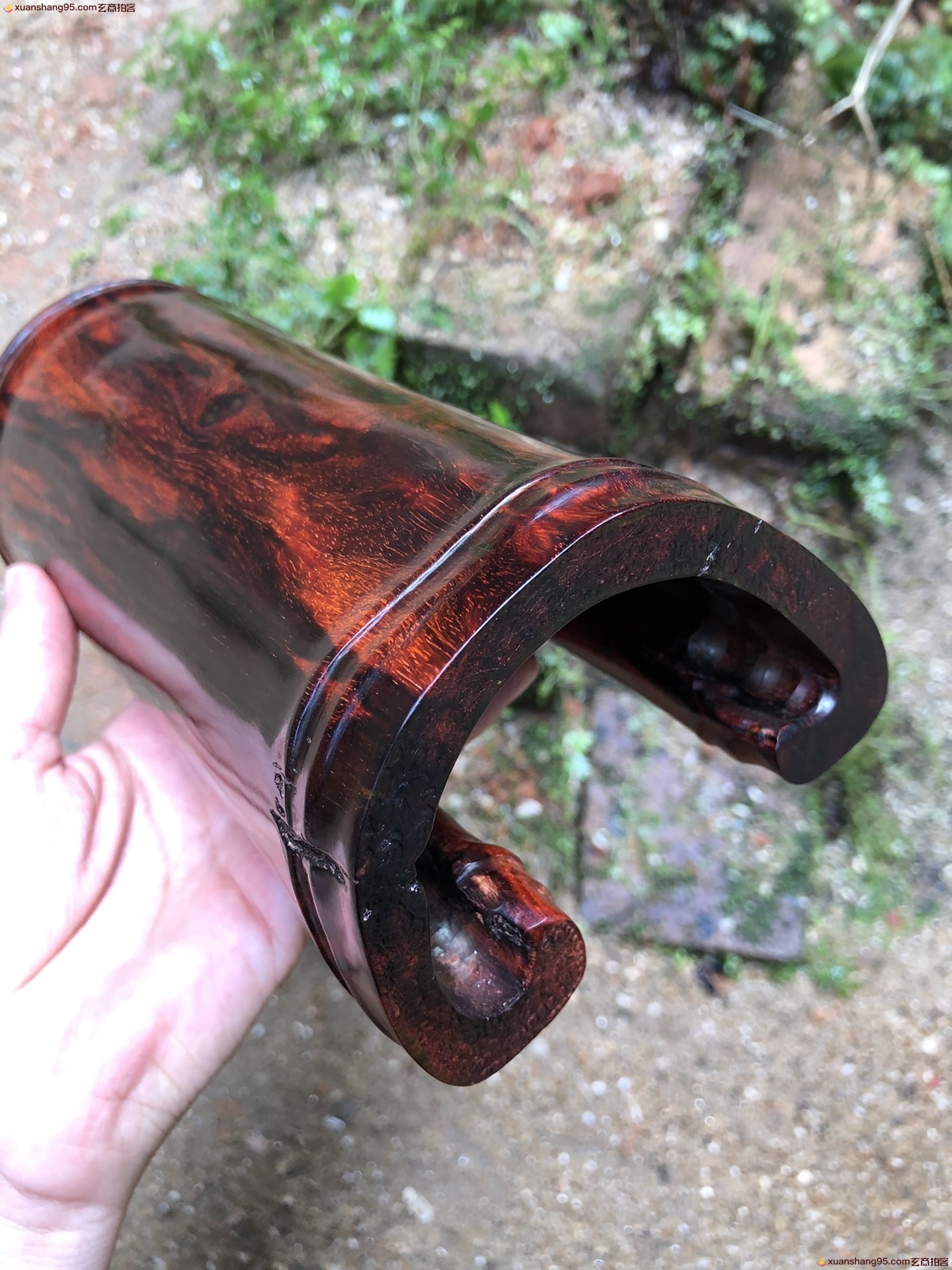印度 小叶紫檀 臂搁 高密度 高油性 火焰纹 长22厘米 宽10厘米 高7厘米 重量520克。
