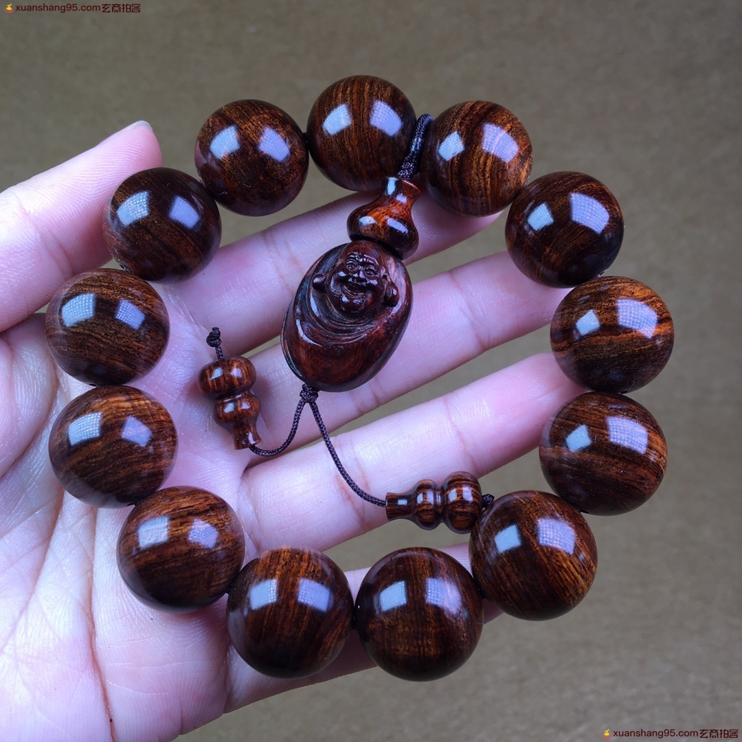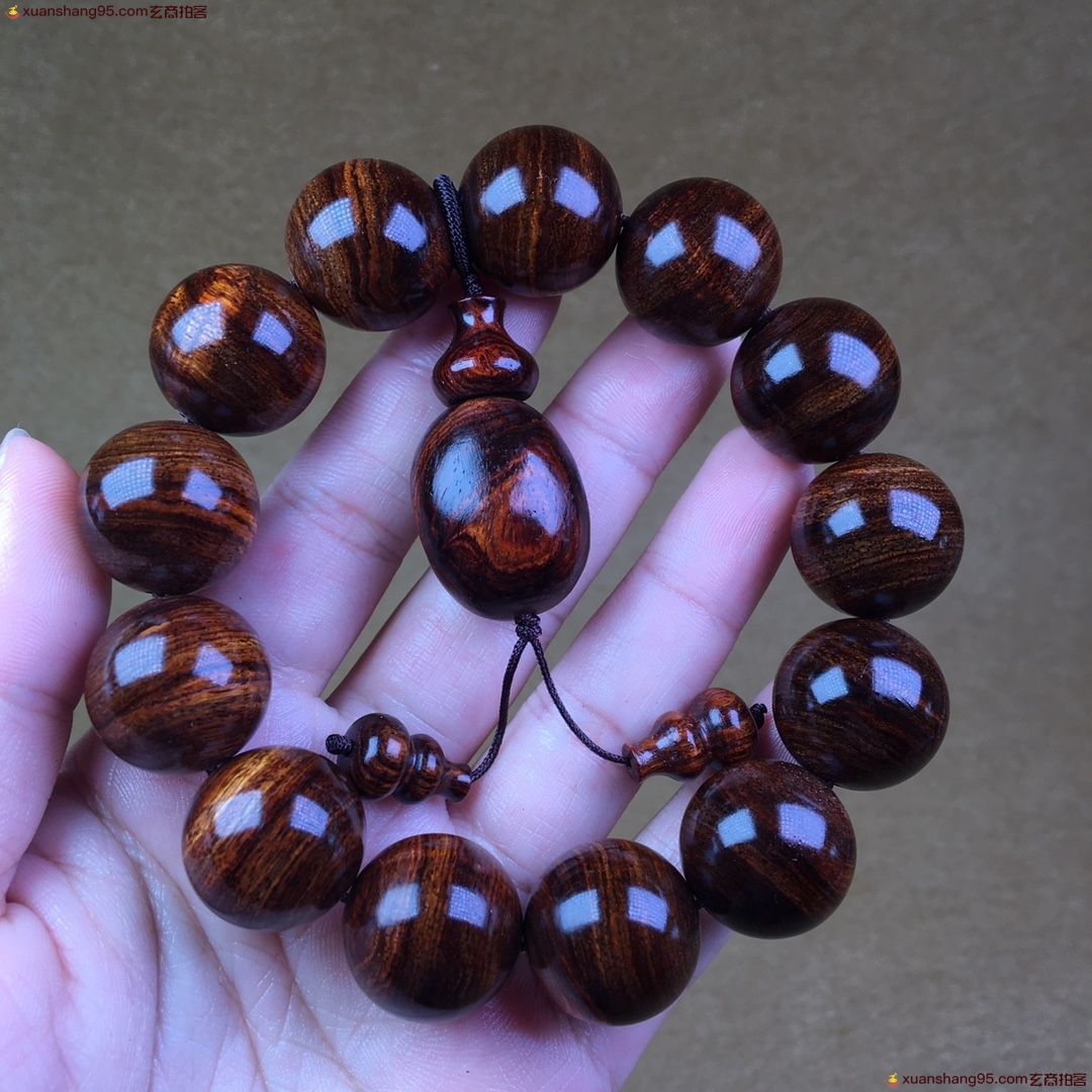 海南黄花梨 油梨 1.8手串 颗颗精选 虎皮纹 大黑线 清晰通透 纹理流畅 盘盘就出油 尺寸1.8厘米 。