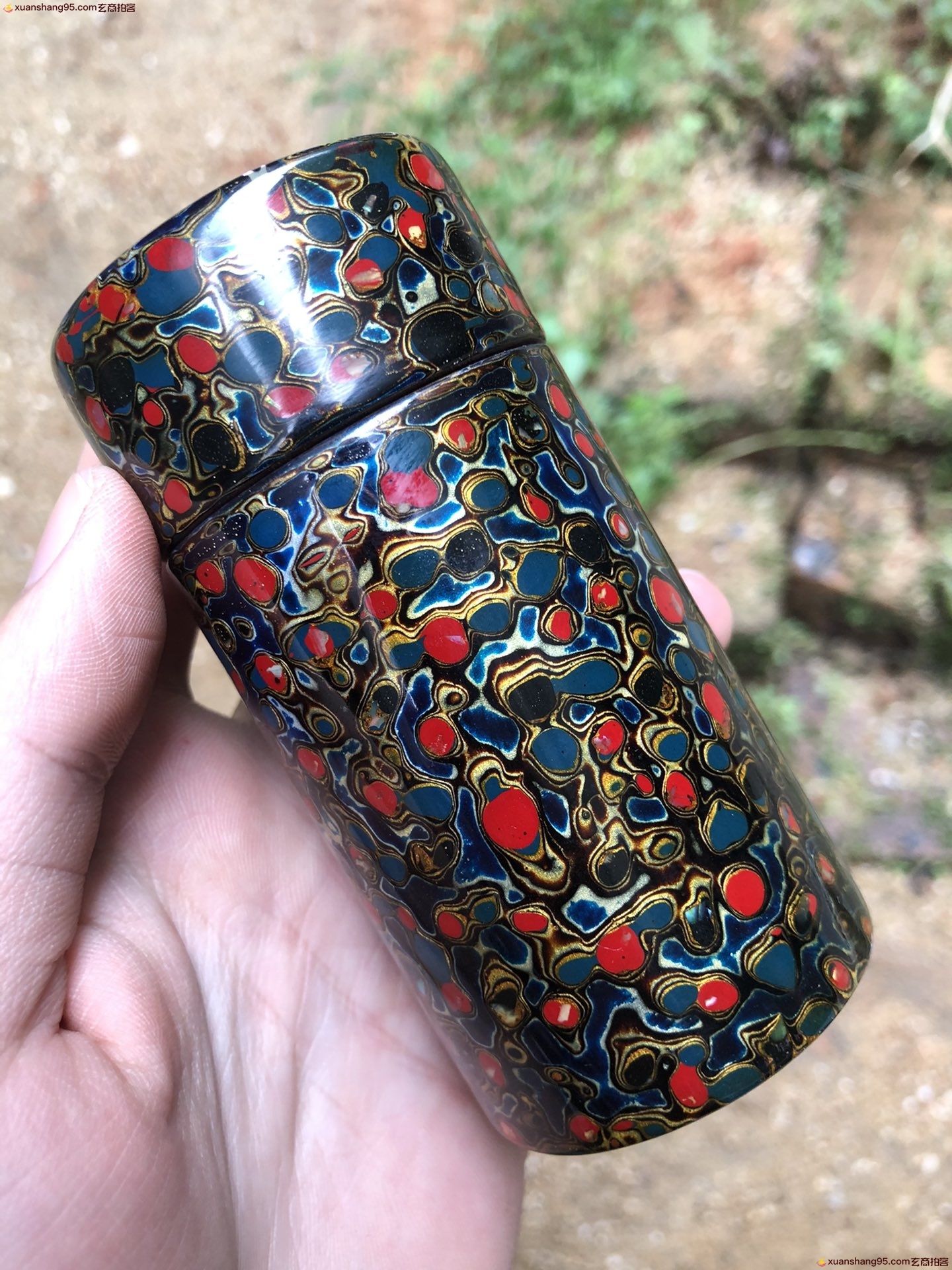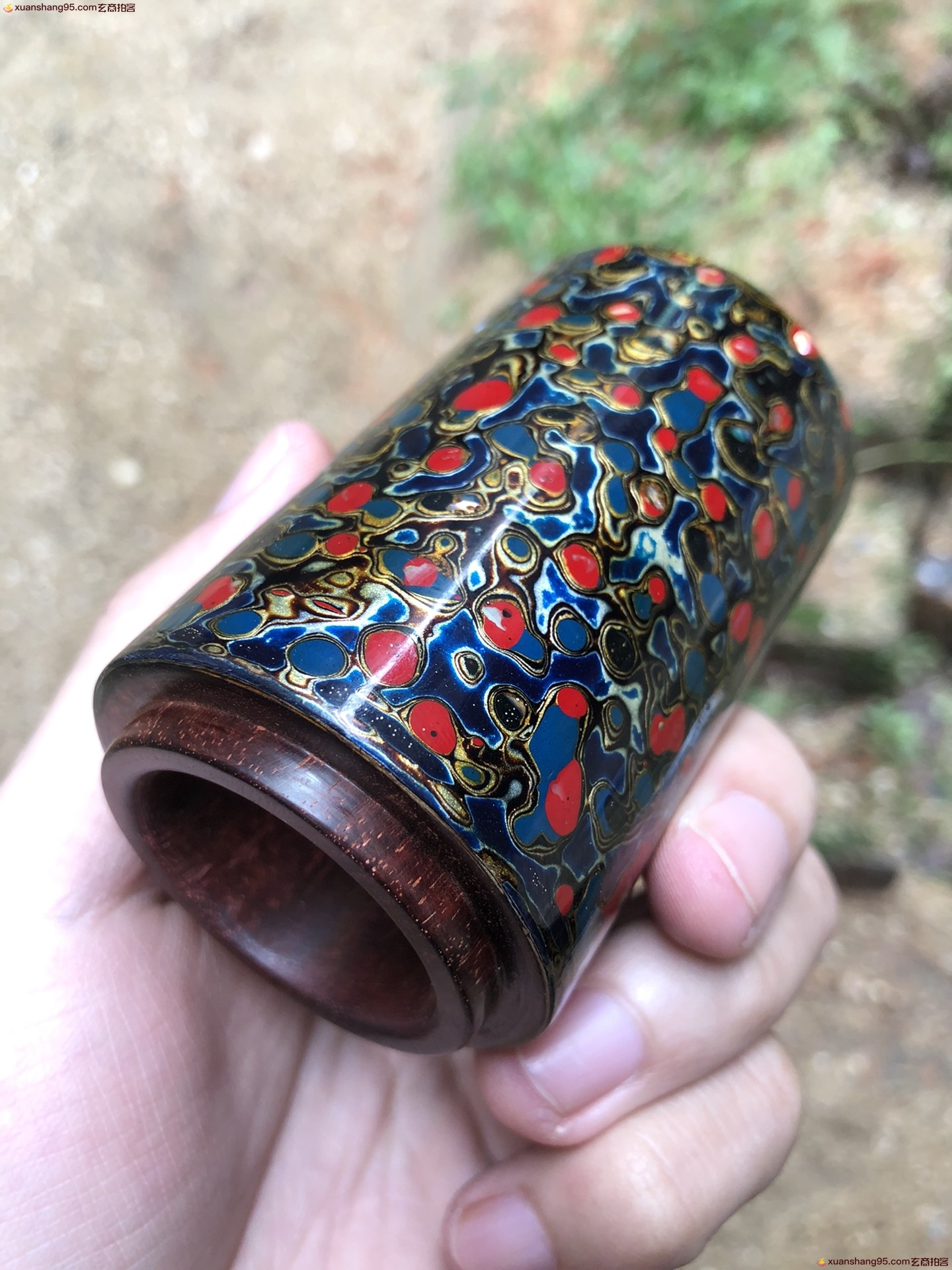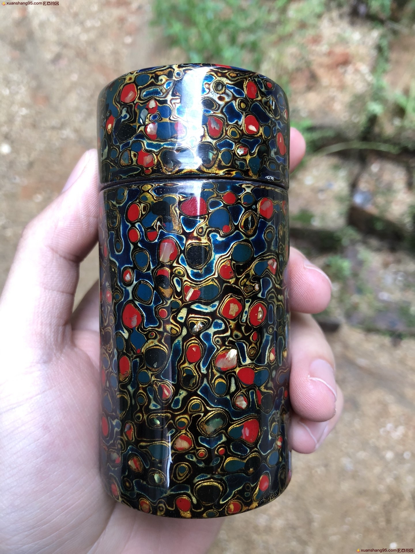 印度小叶紫檀茶叶罐,零瑕疵精品,全实心整料制作,非常耗料,耗工,老师傅纯手工制作大漆,以天空蓝等矿色大漆制作,纹理有条不紊,密而不乱,致使整器温润泽感,每一处细节别有深意,方便携带,直径5.1cm高10cm 重0.31斤。