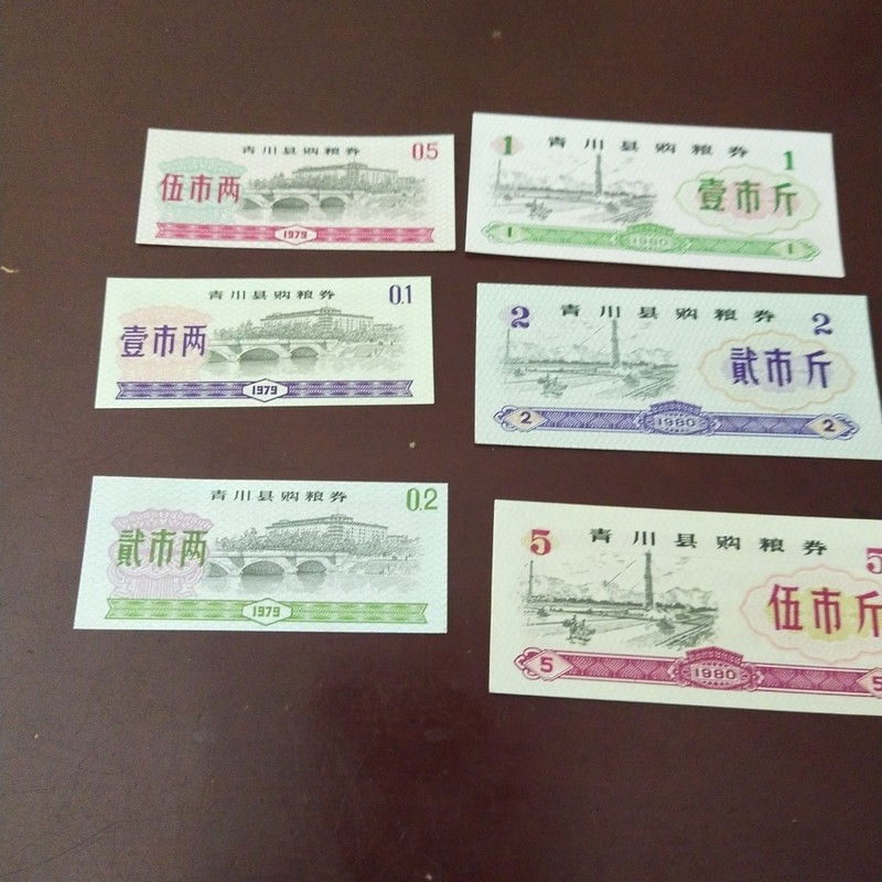 1979年3张和1980年3张青川县购粮券一套。品相见图。