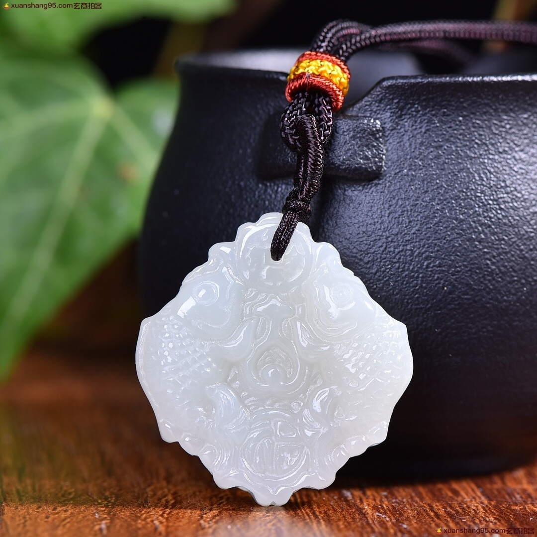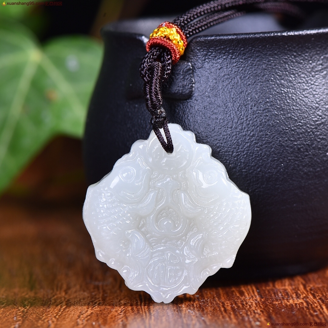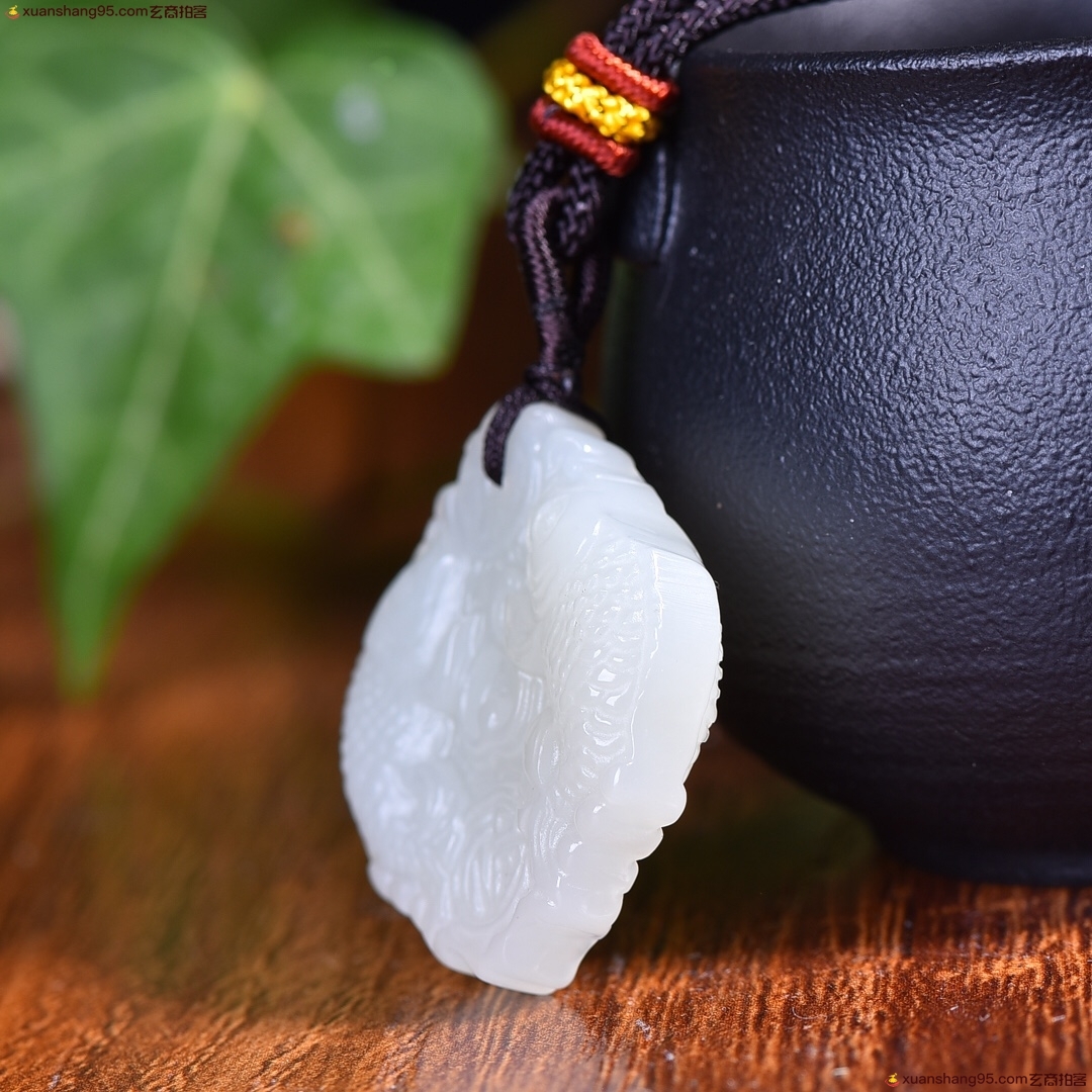 和田玉 吉祥如意 吊坠 雕工一流 设计巧妙 料子纯净 尺寸32*35毫米。