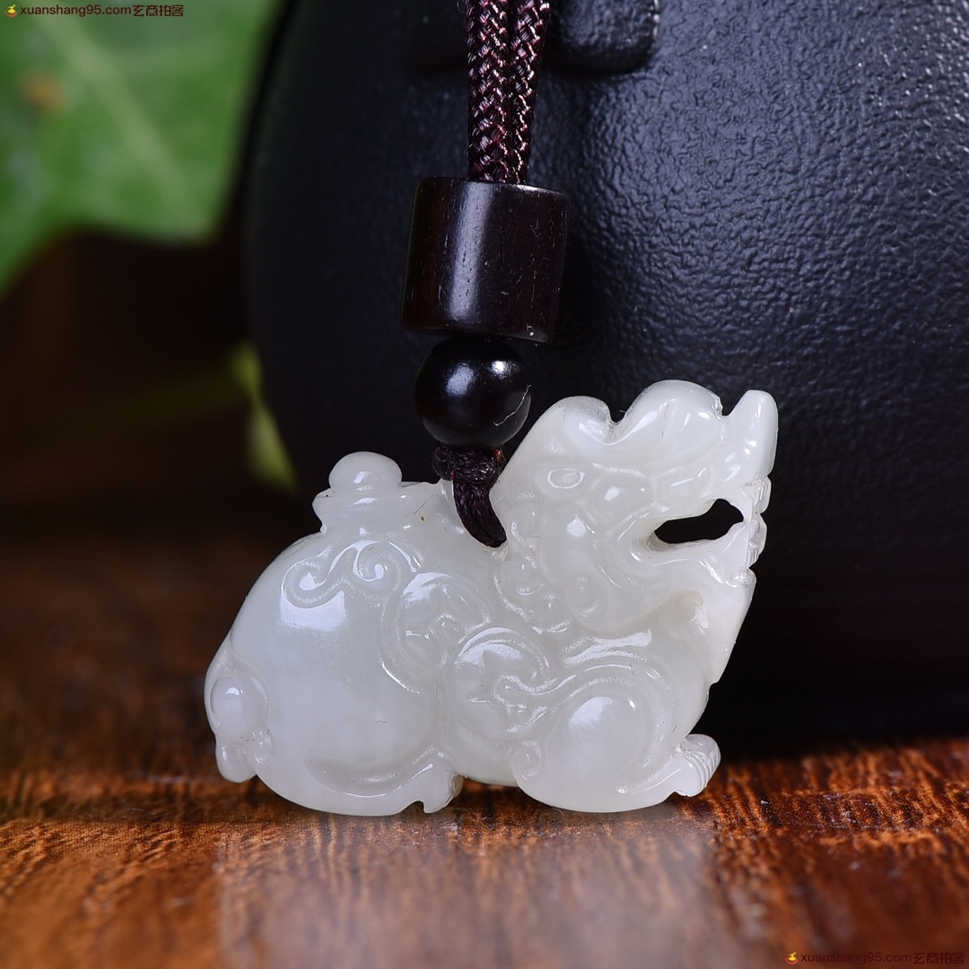 和田玉 立体 招财貔貅 雕工一流 料子纯净 尺寸28*22毫米。