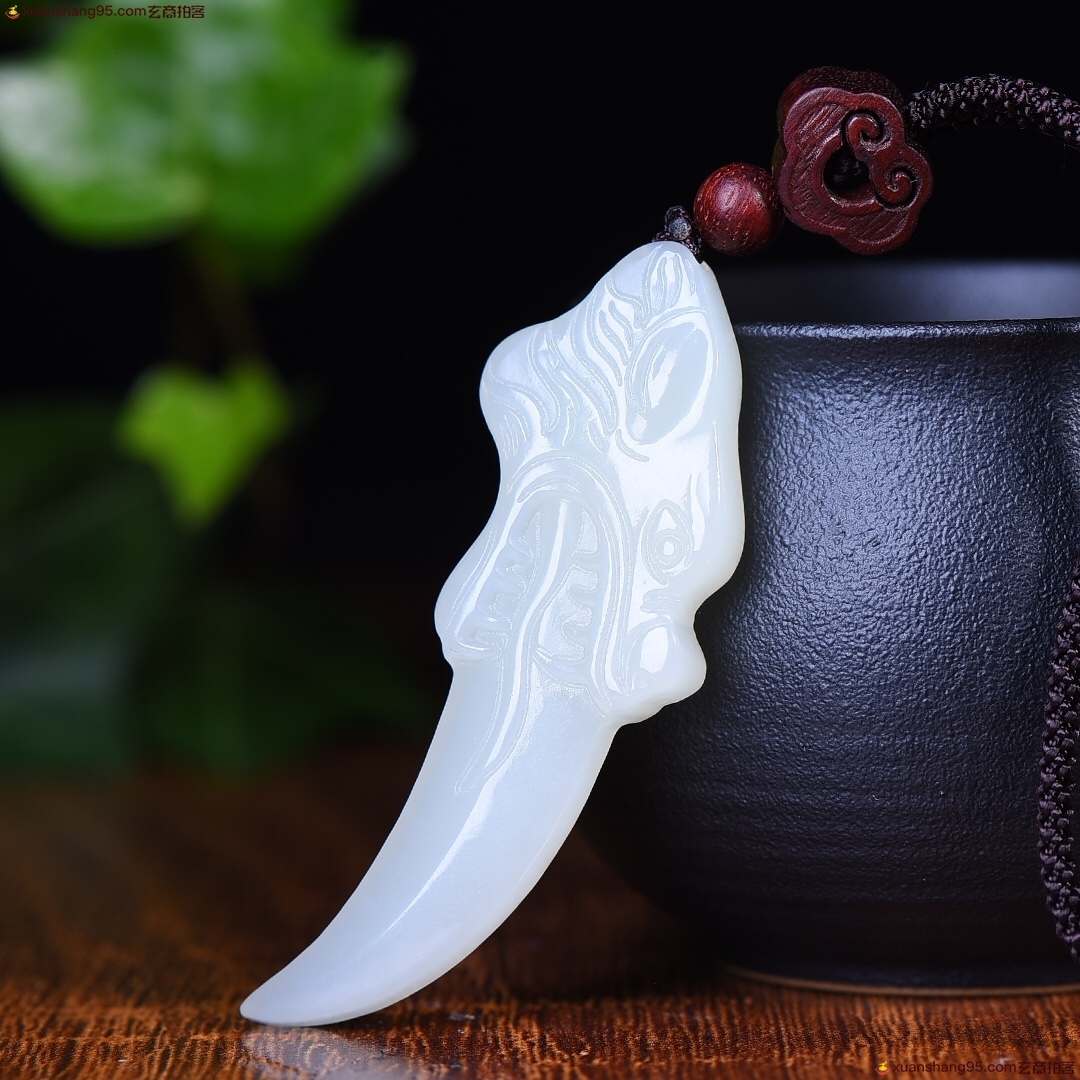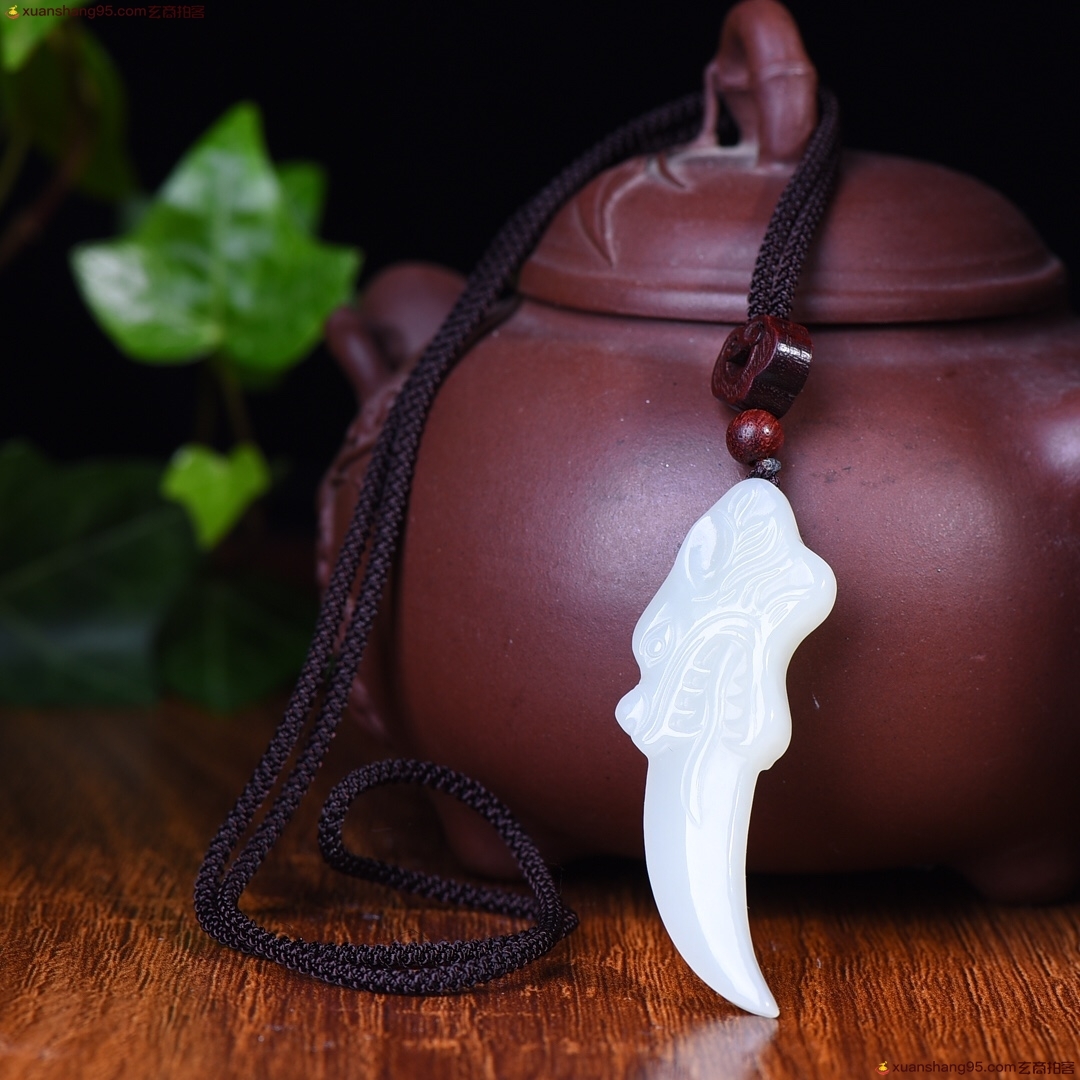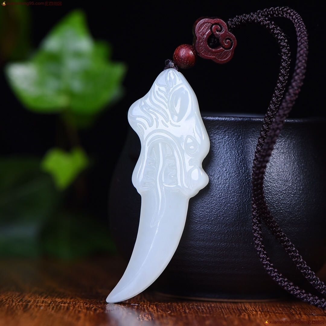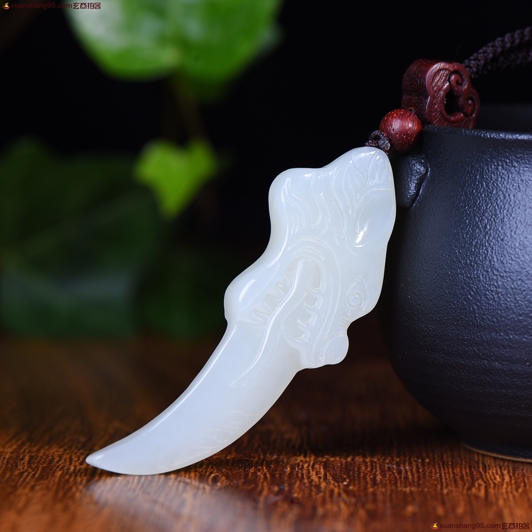 和田玉 双面吉祥 龙牙 设计巧妙 雕工精细 料子纯净 尺寸23*64毫米。