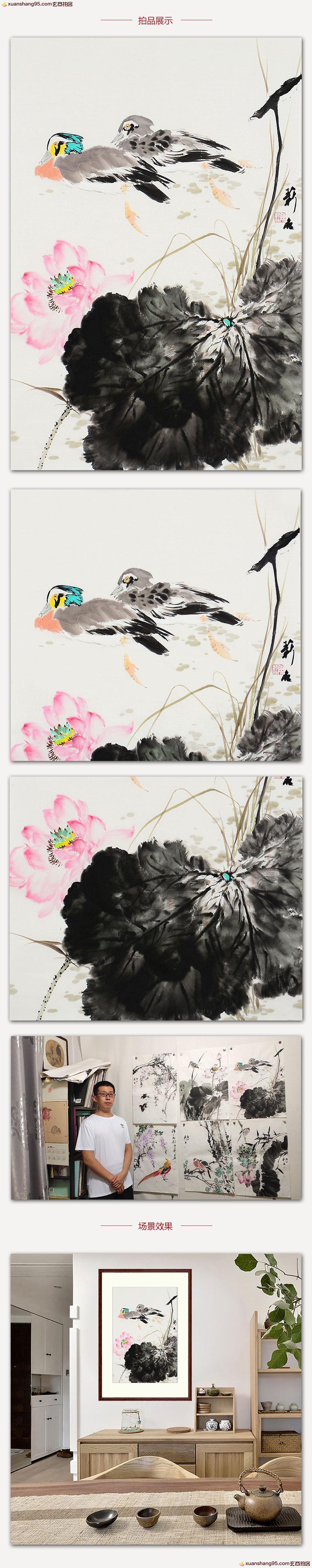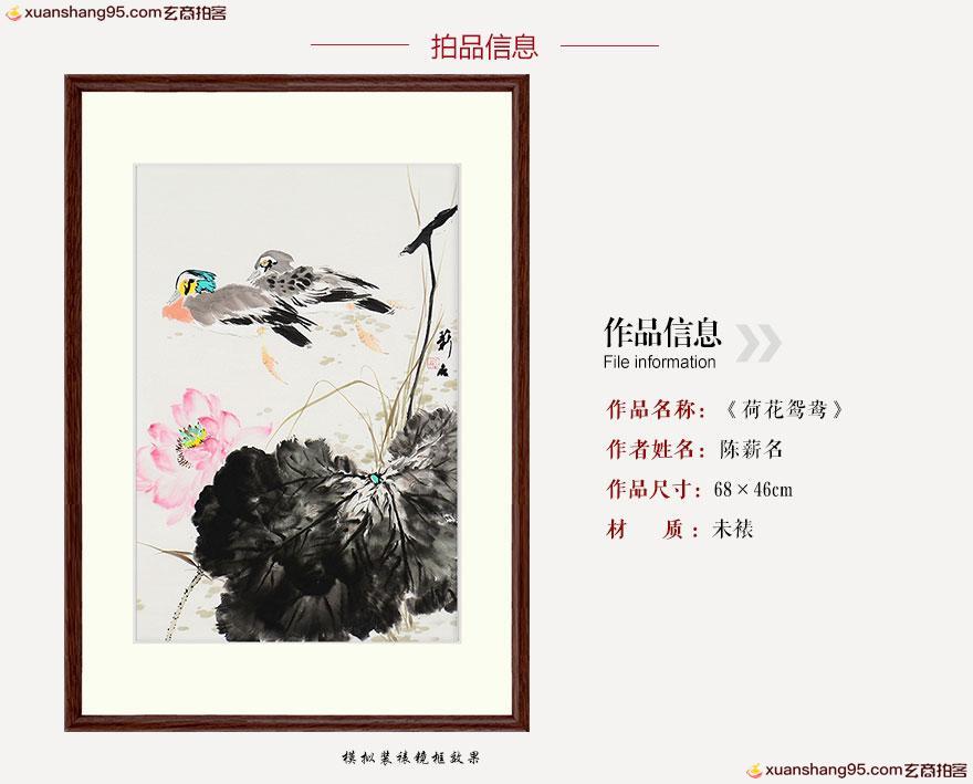 3. 竞拍详细 - 陈薪名《荷花鸳鸯》带合影 全国花鸟画展金奖获得者 中美协会员