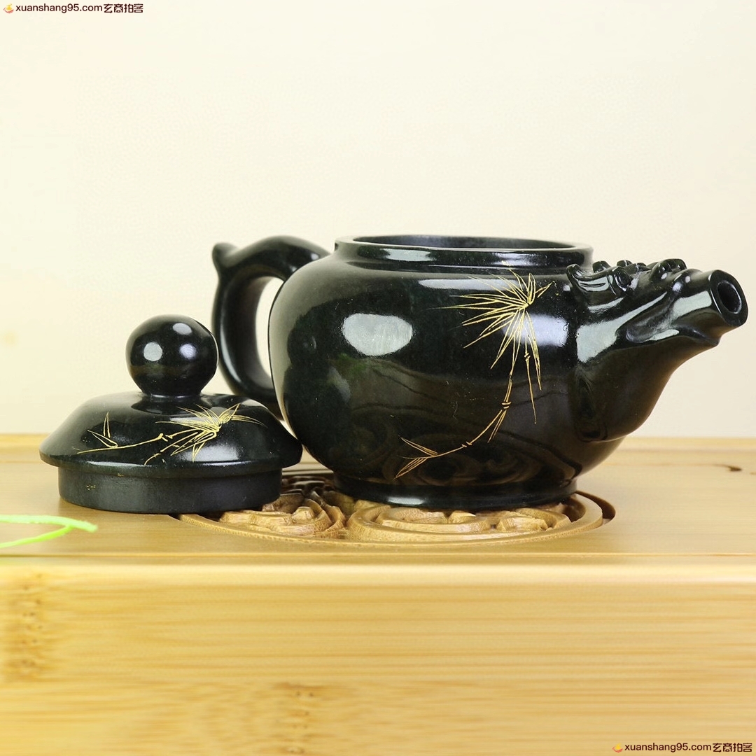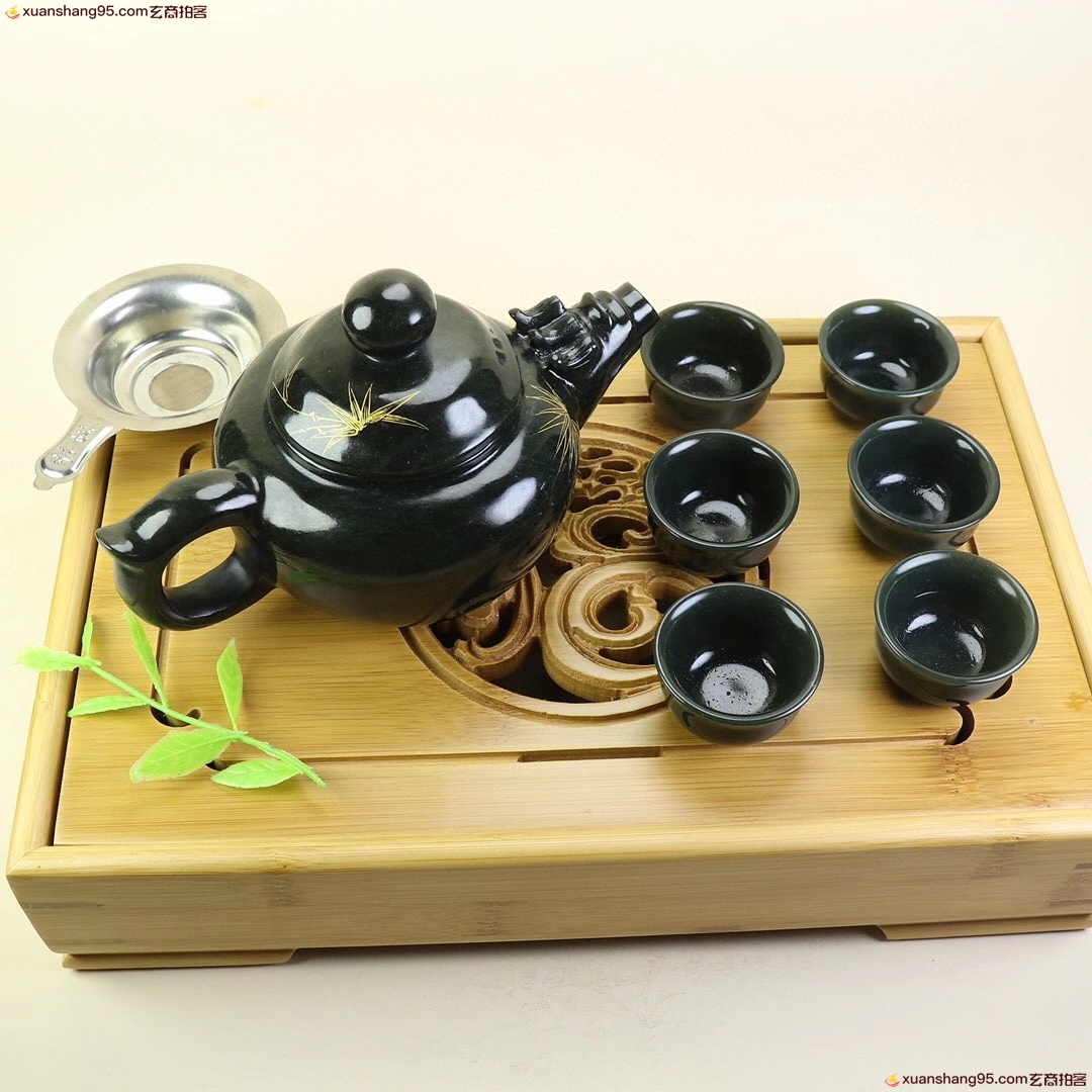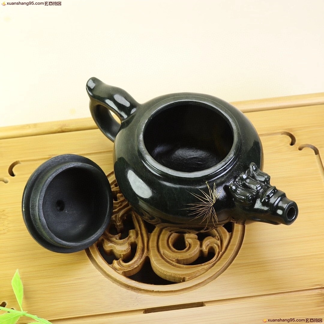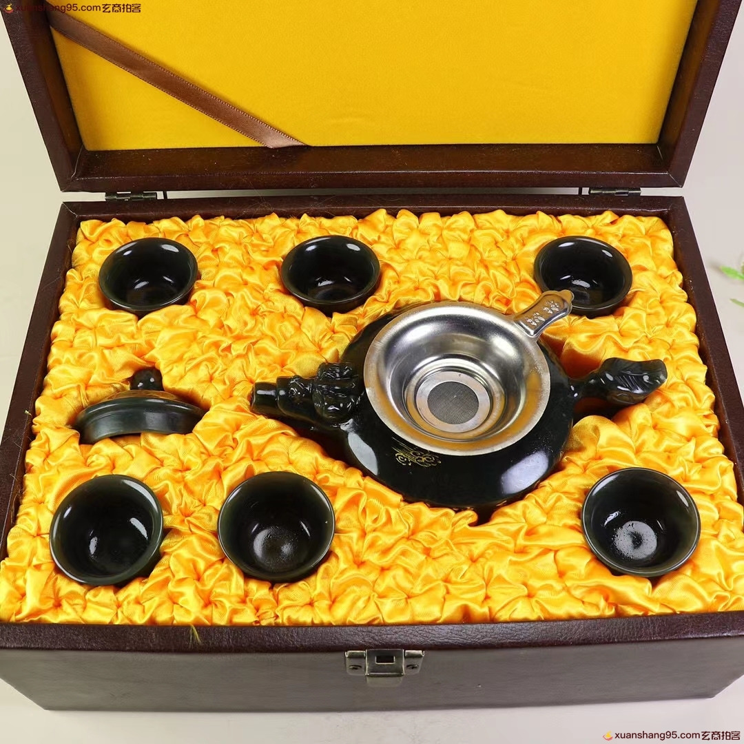 【吉祥如意.茶具套装】精品和田玉青 玉茶 壶茶碗 玉质莹润细腻,造型精致小巧 整器比例协调,灵动且曼妙,把执舒适有力,风格简约古朴,淋漓展现玉石之温、纯、柔、雅的品质,不经意间流露出返璞归真的那份优雅。闲暇之余随手把玩,细思慢品玉壶的古韵古香,仿佛已经泡好一壶新茶,清风徐来,赏杯中茶汤微漪。茶壶重321克 尺寸160-91.5-93mm 茶碗取一重27克 尺寸41-22mm。