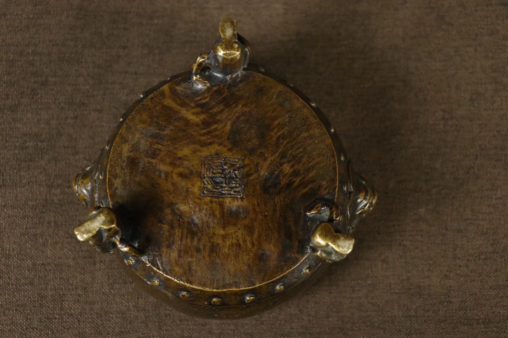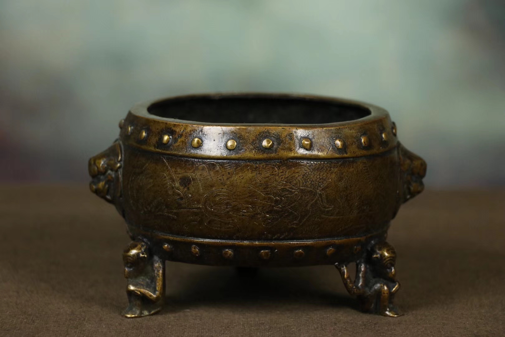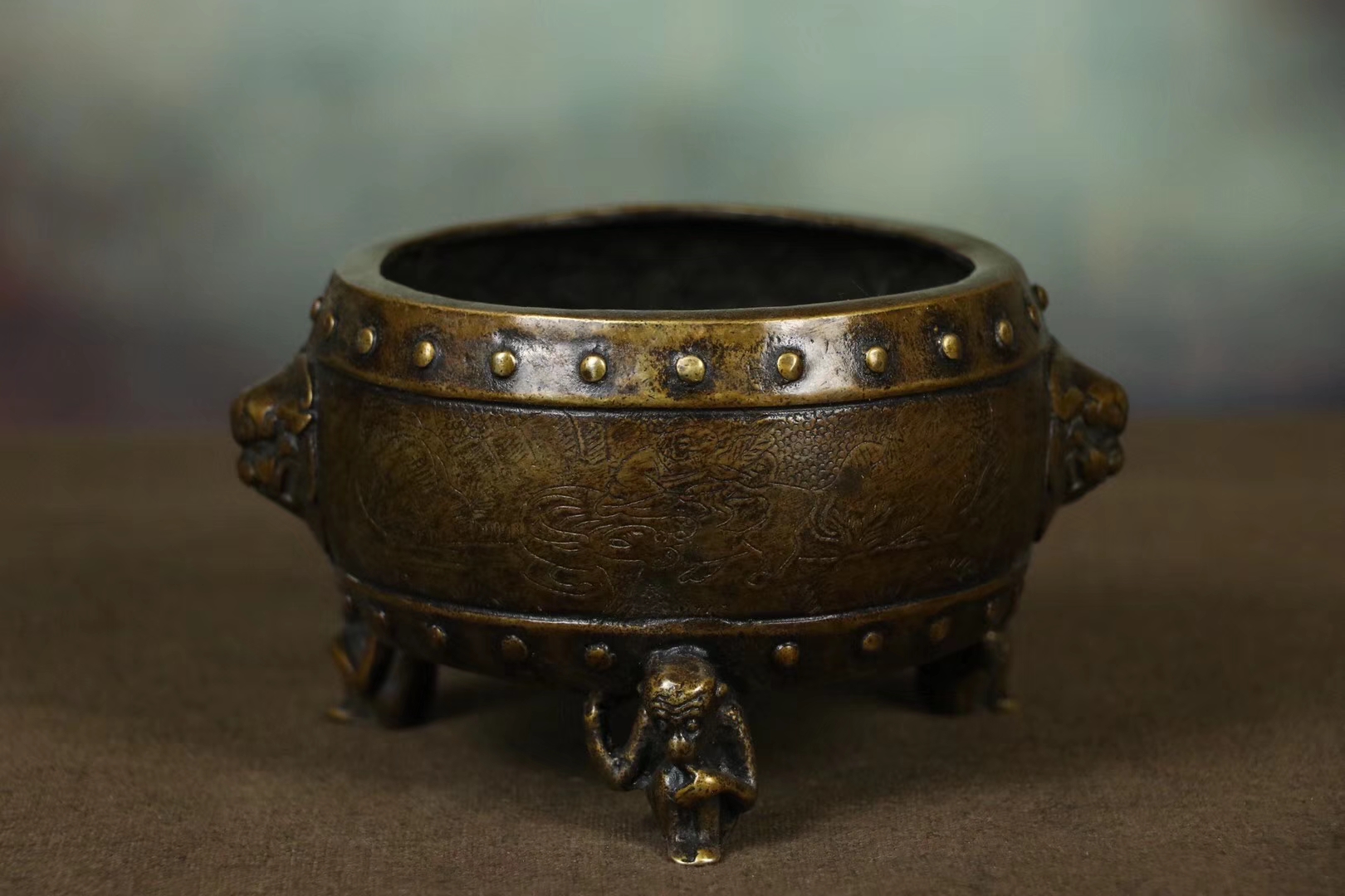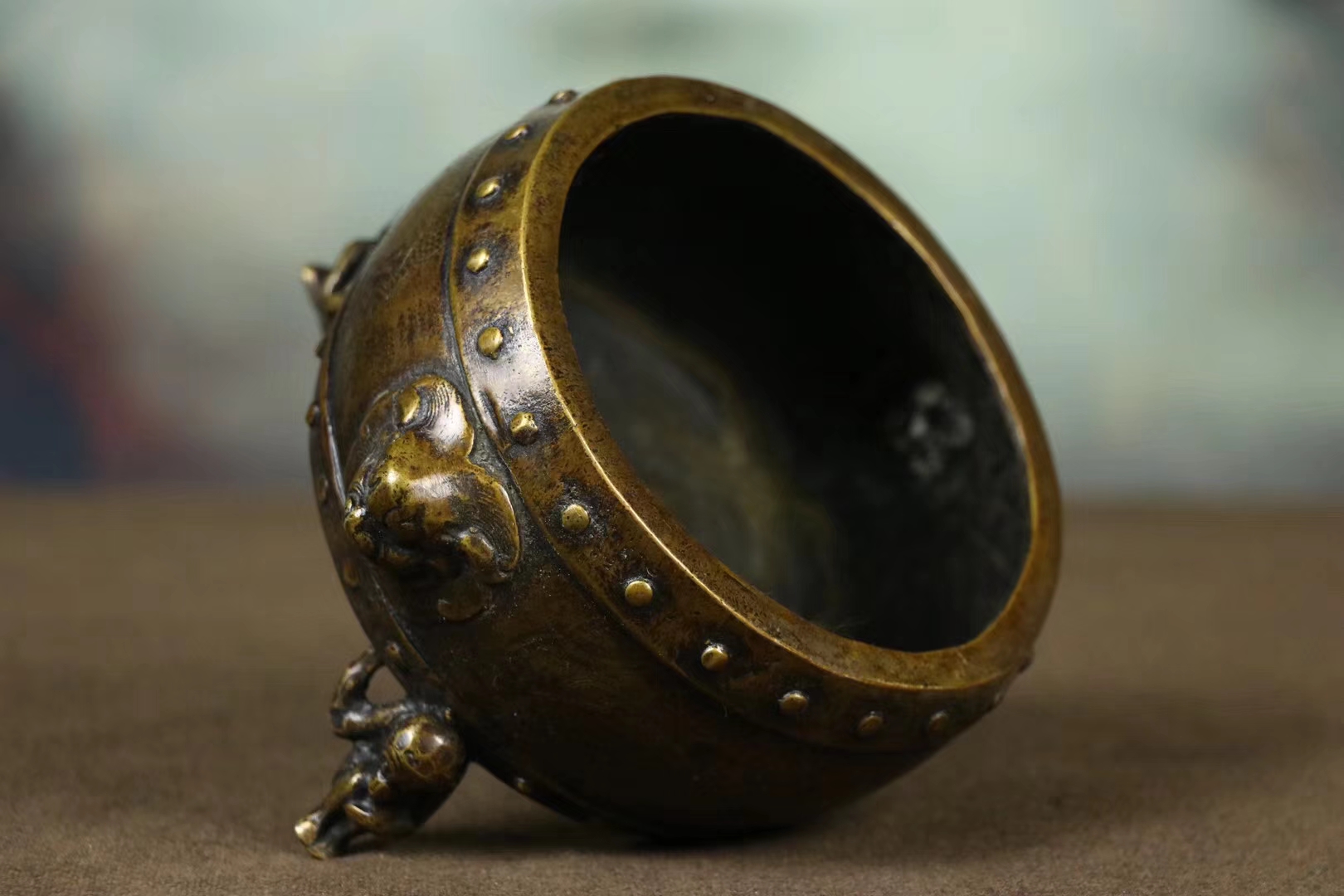 铜熏香炉一件,色泽雅致,造型独特,体型端正招财纳福,香炉其用途亦有多种,熏衣、或陈设、或敬神供佛。香炉不仅象征着吉祥、美观和威严,还为你累积福慧、事事圆满的风水宝物。尺寸14.9×8.50cm,重933克。