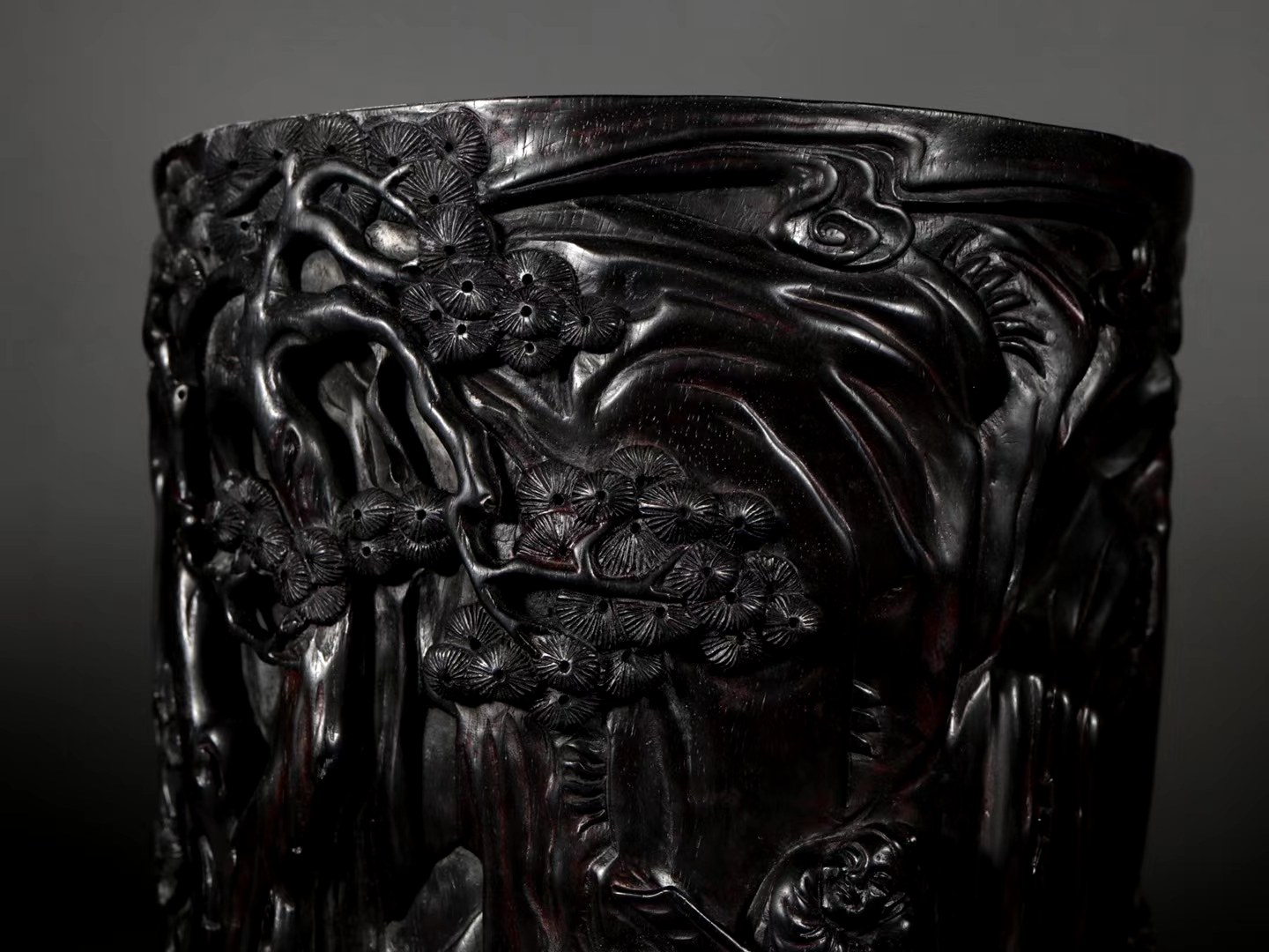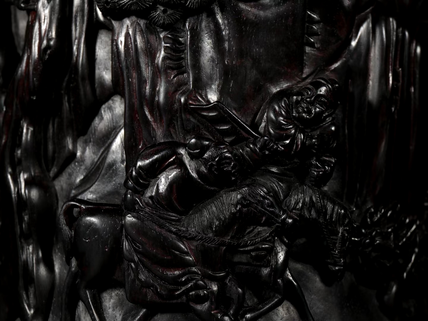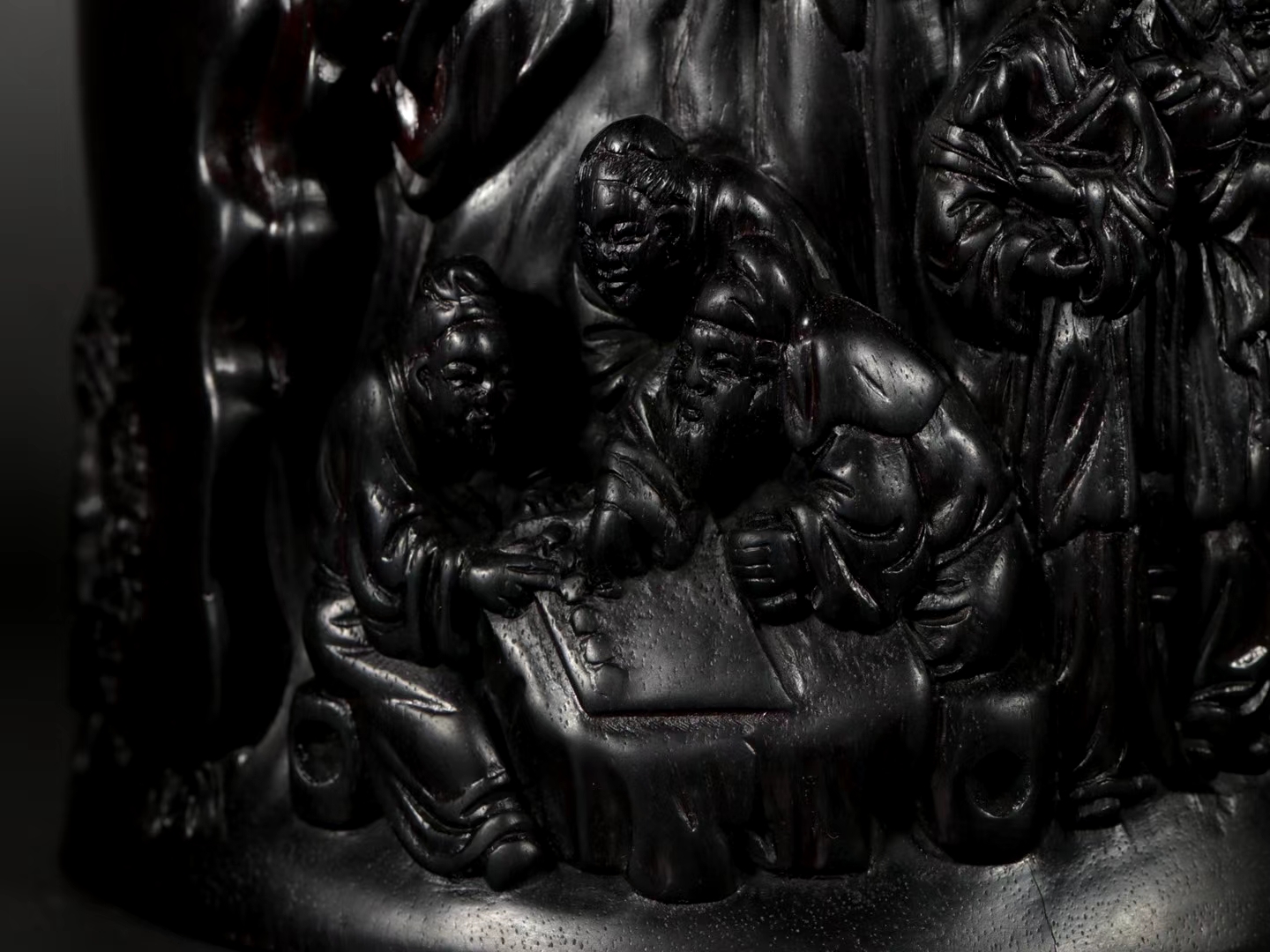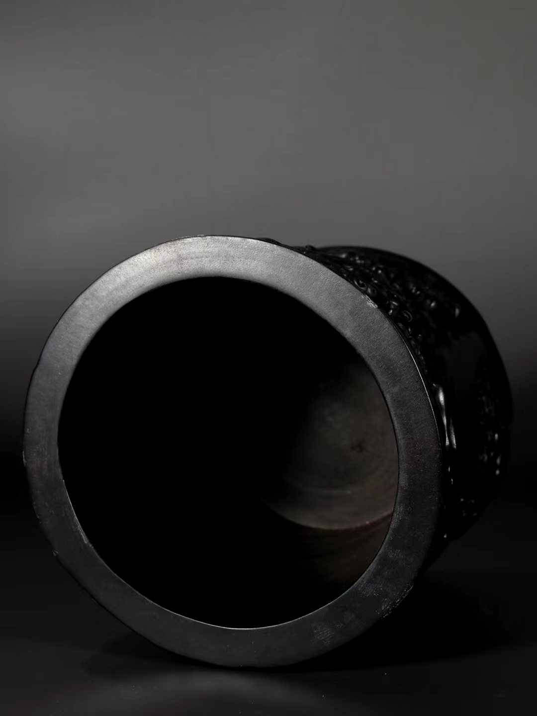 人物故事 文房笔筒,采用檀木精雕而成,材质上乘,木质坚硬,形制古雅,内部掏空,整木成器,浮雕人物精美生动,五官精致,树木茂盛,雕工精细,皮壳包浆老辣,纹理清晰,收藏价值高!规格:高15cm宽13.4cm 重981克。