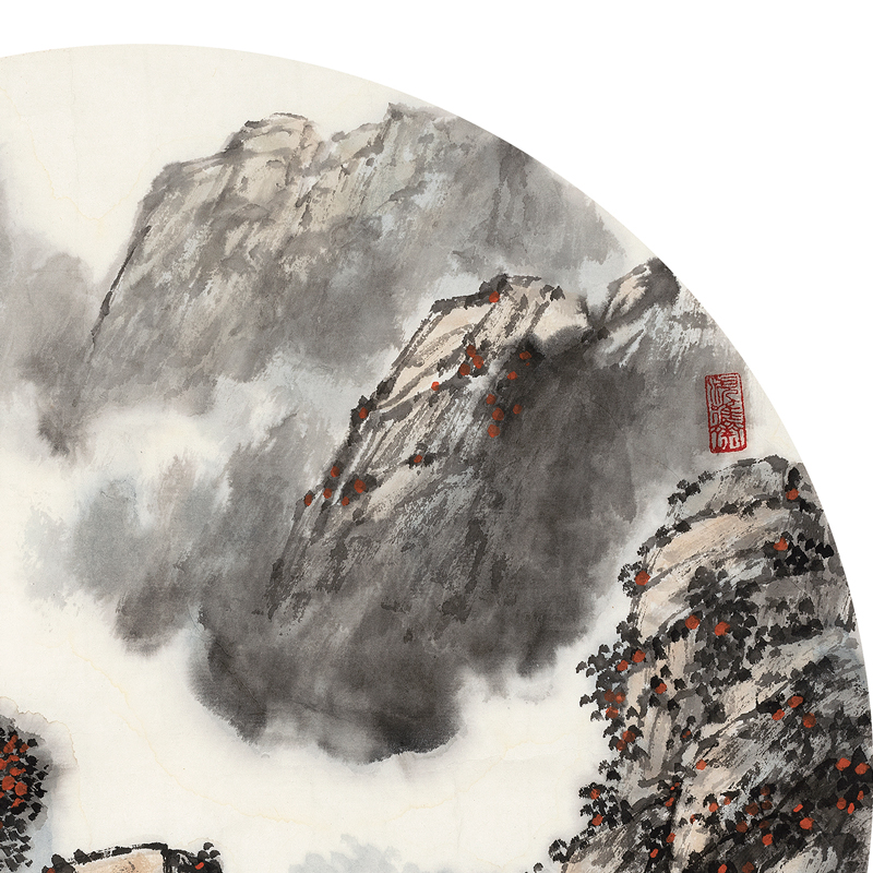 【尺寸与说明】 尺寸:约38x38cm,装裱情况:托片,材质:纸本水墨