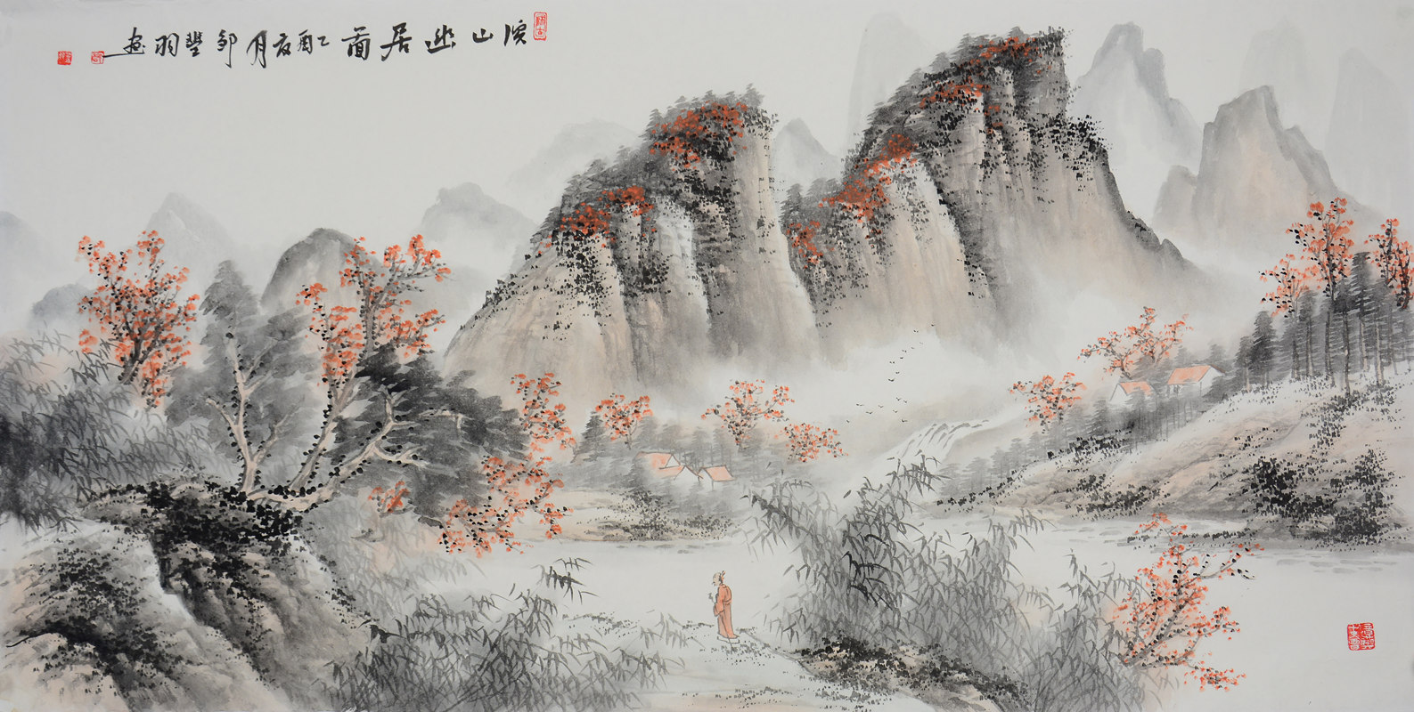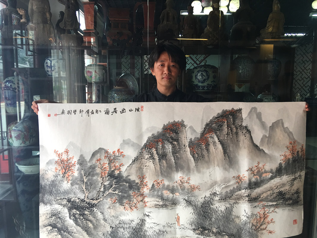 尺寸规格:131×67cm 当代*山水画家 带合影