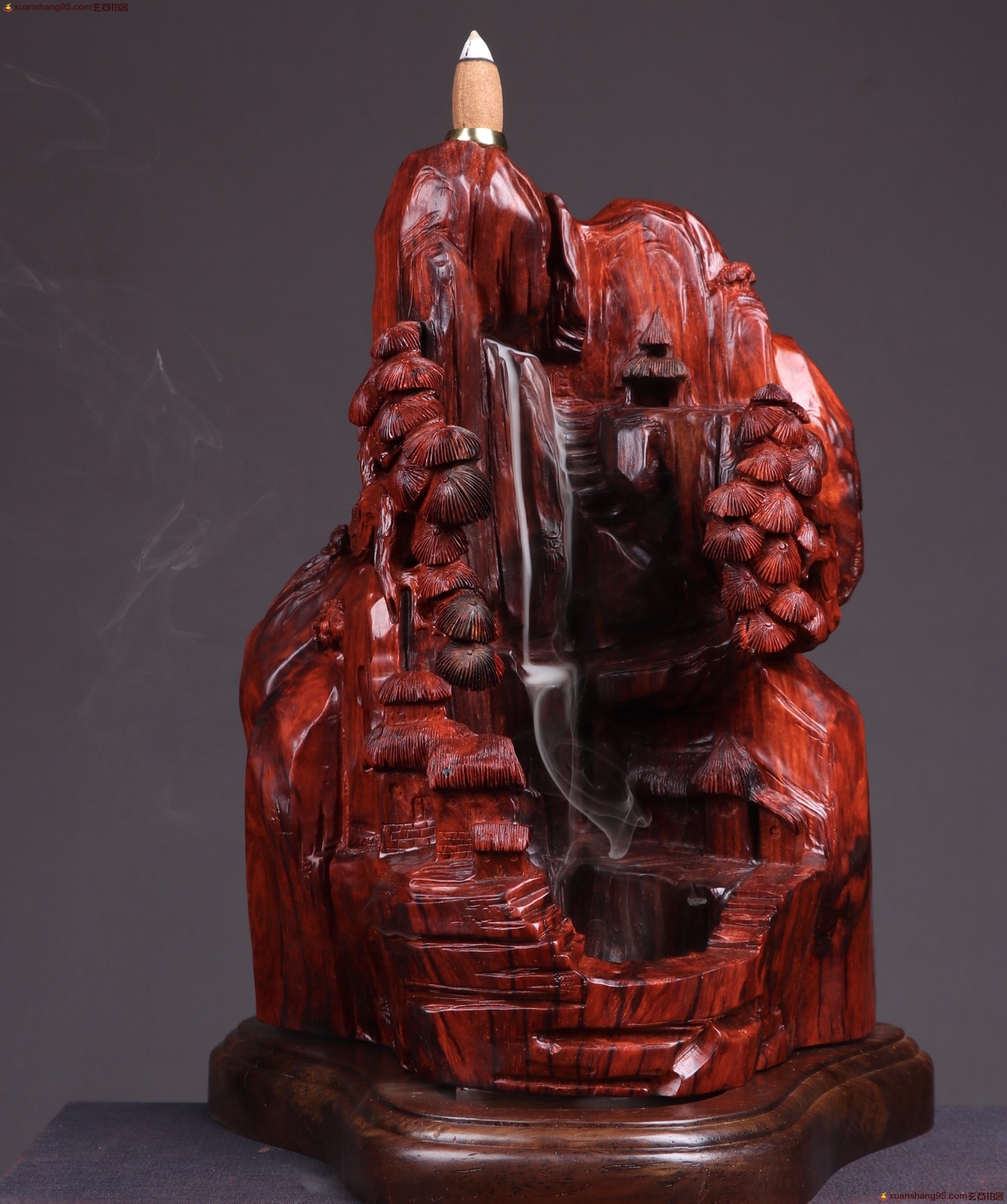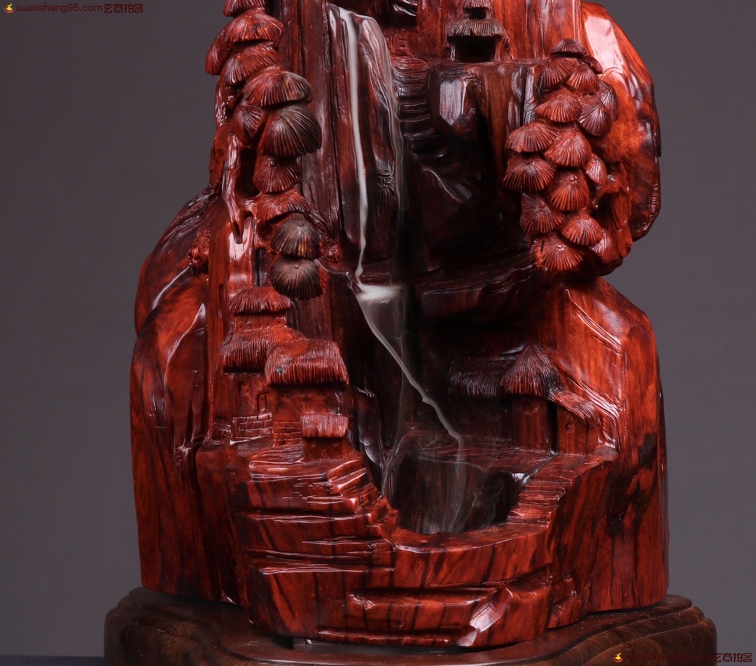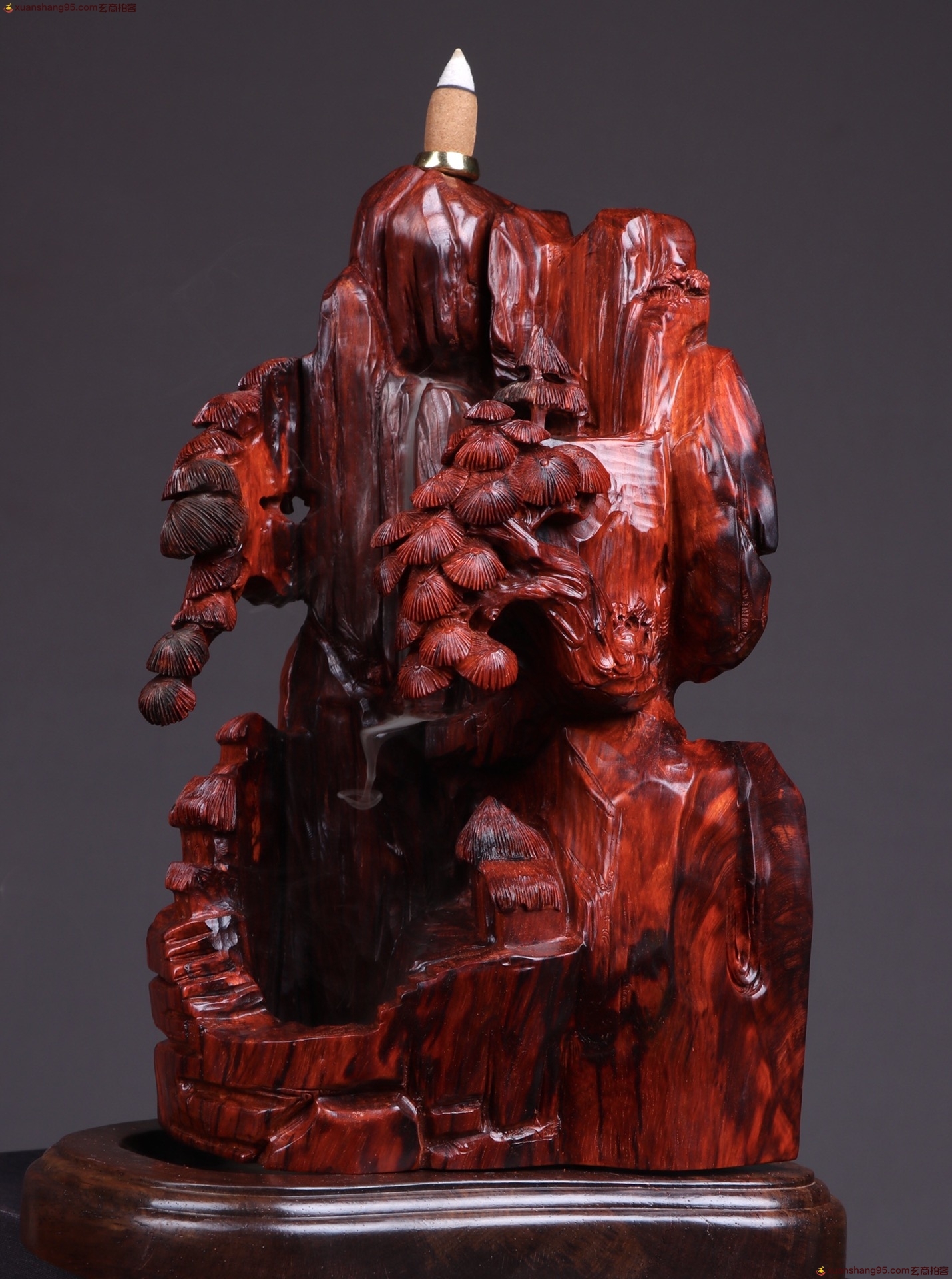 印度 小叶紫檀 高山流水遇知音,山水倒流香,居家摆设,寓意有靠山,基业稳定,是收藏送人的最佳选择。尺寸:18*12.5*25厘米,净重:3.6斤。