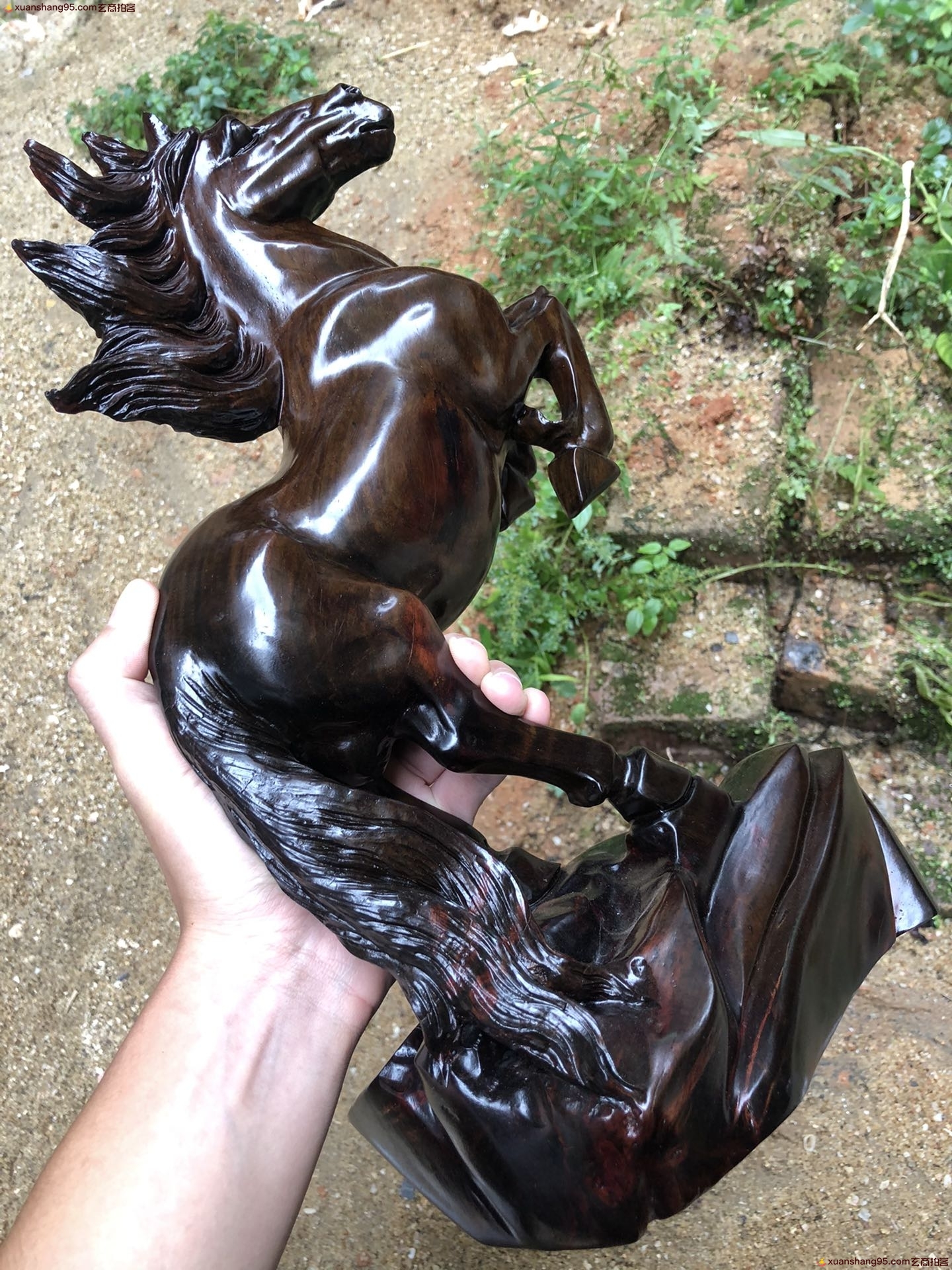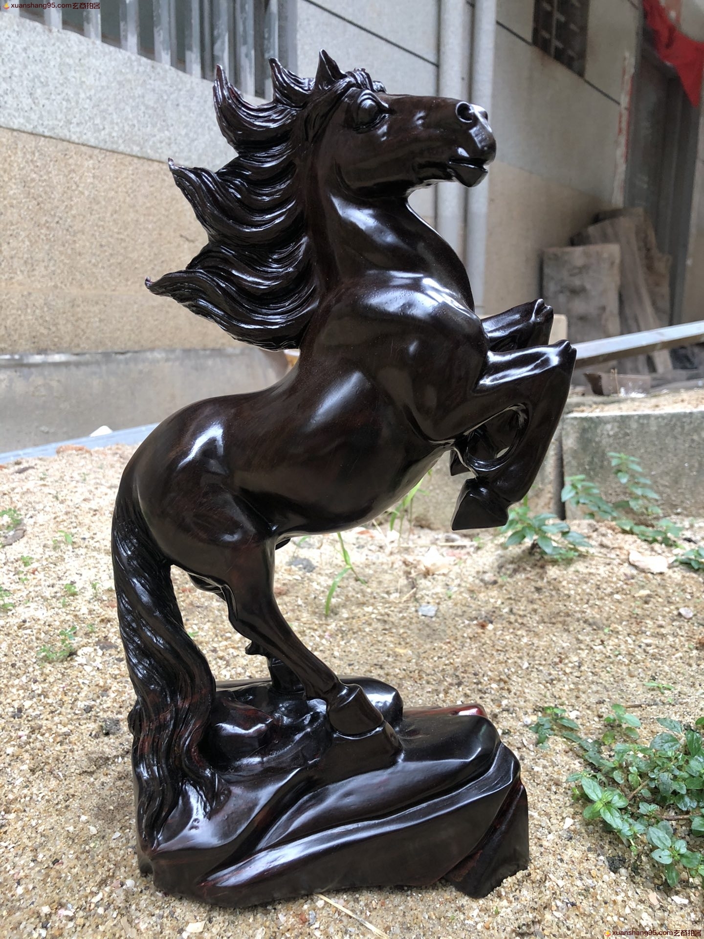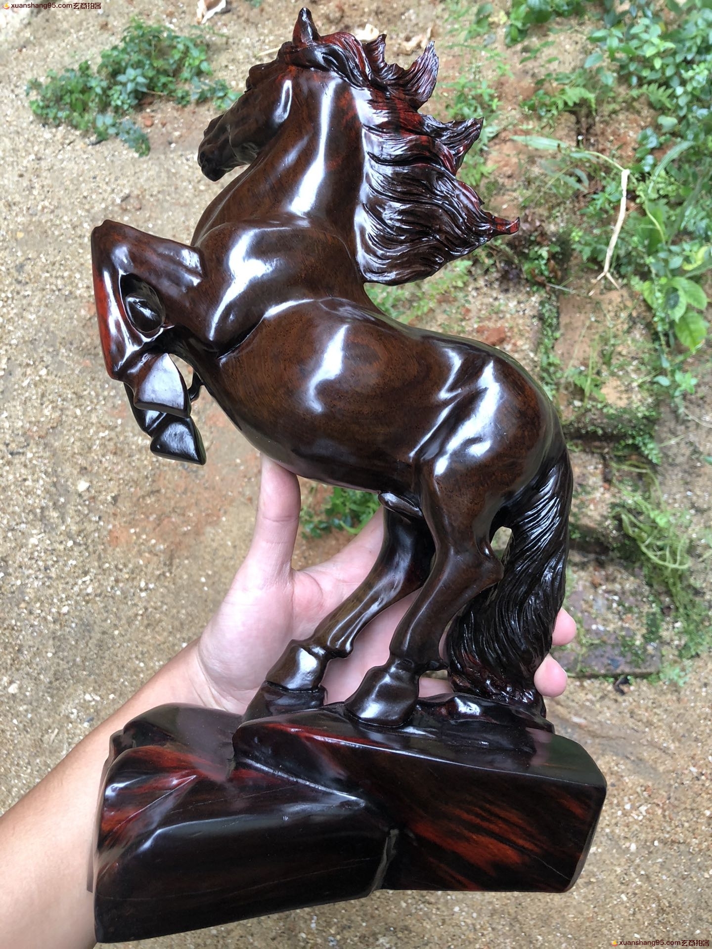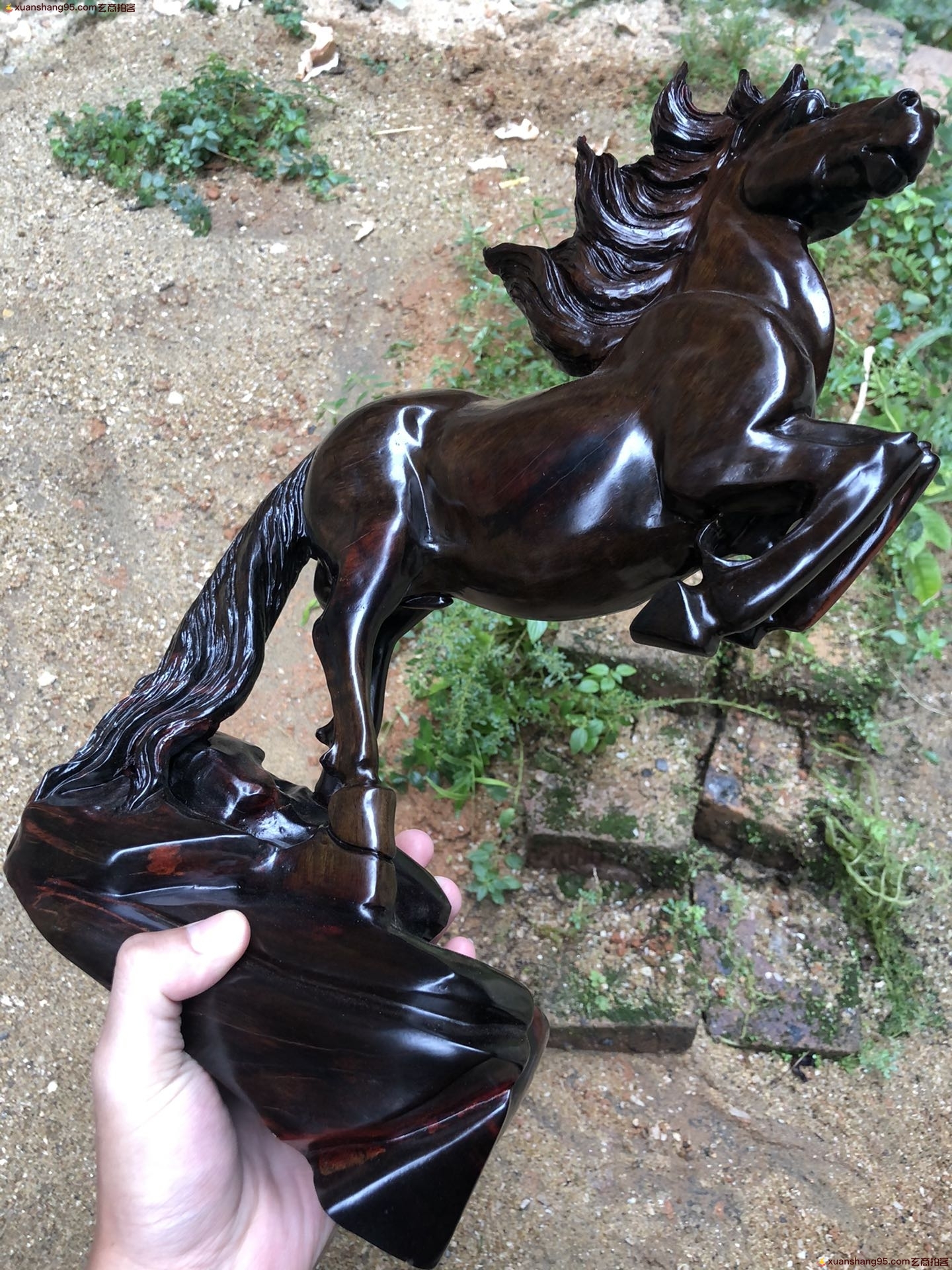 老挝 大红酸枝 一马当先,高密度,老黑料,整料一体雕刻而成,寓意:马到成功,一马当先,长:20.5厘米 宽:11.5厘米 高:36.5厘米 重量:3.72斤