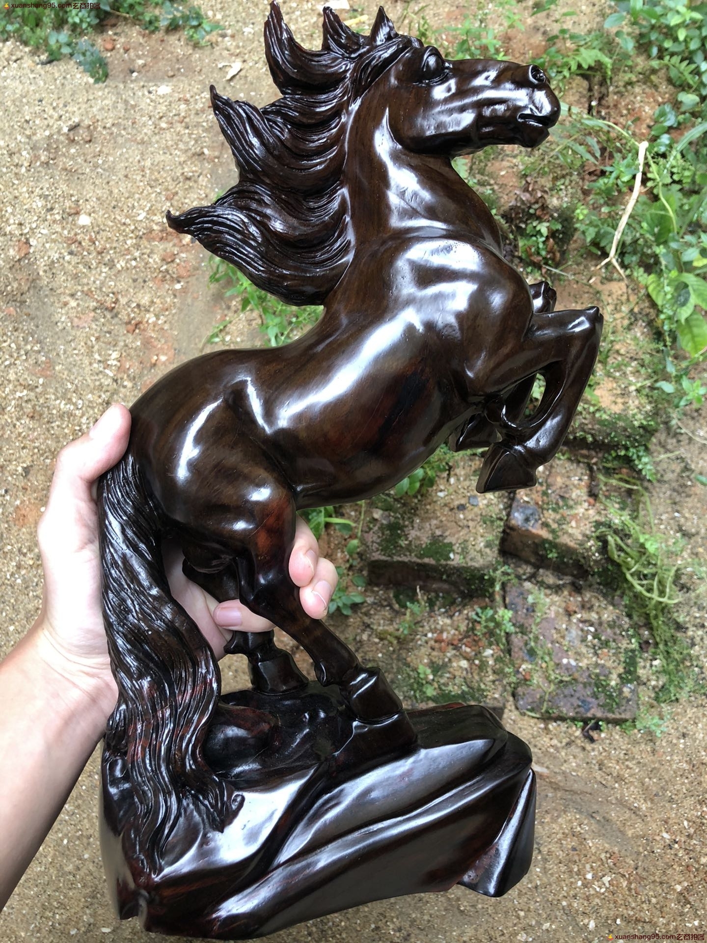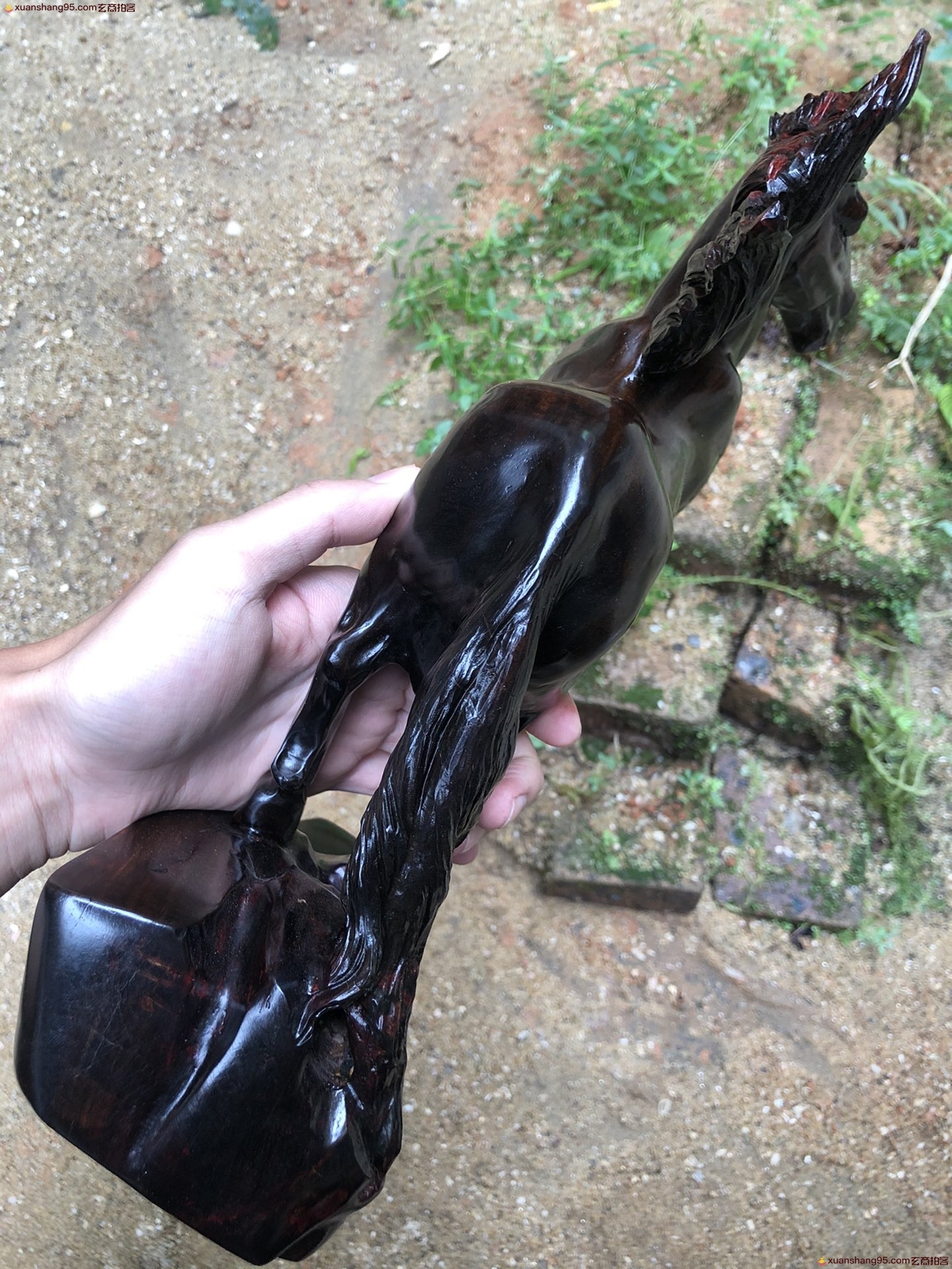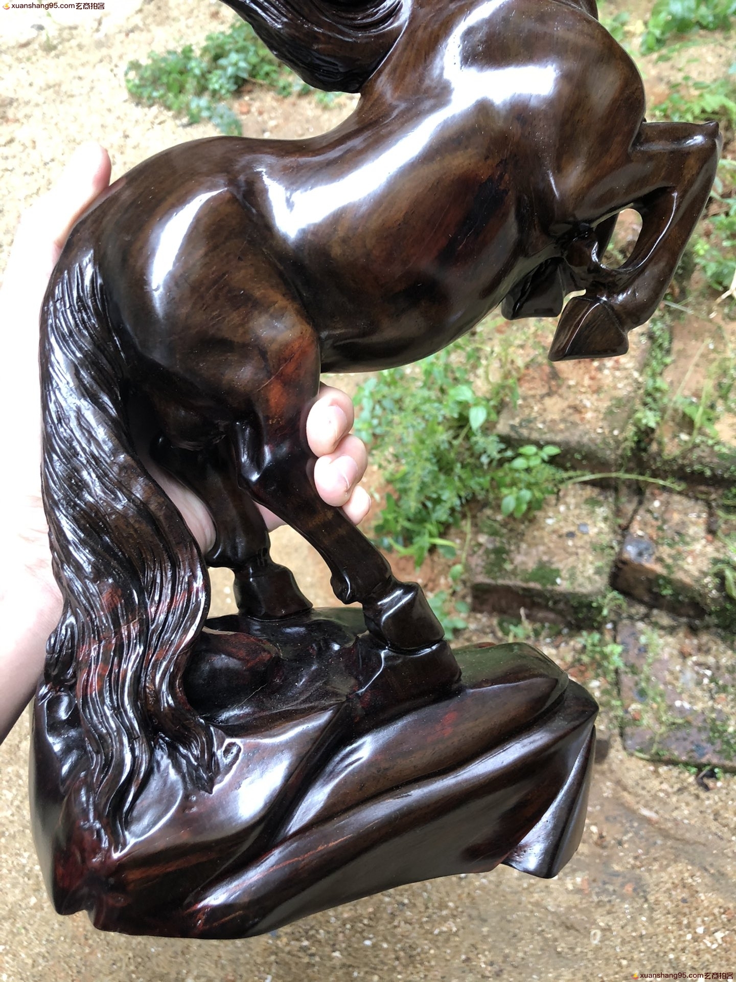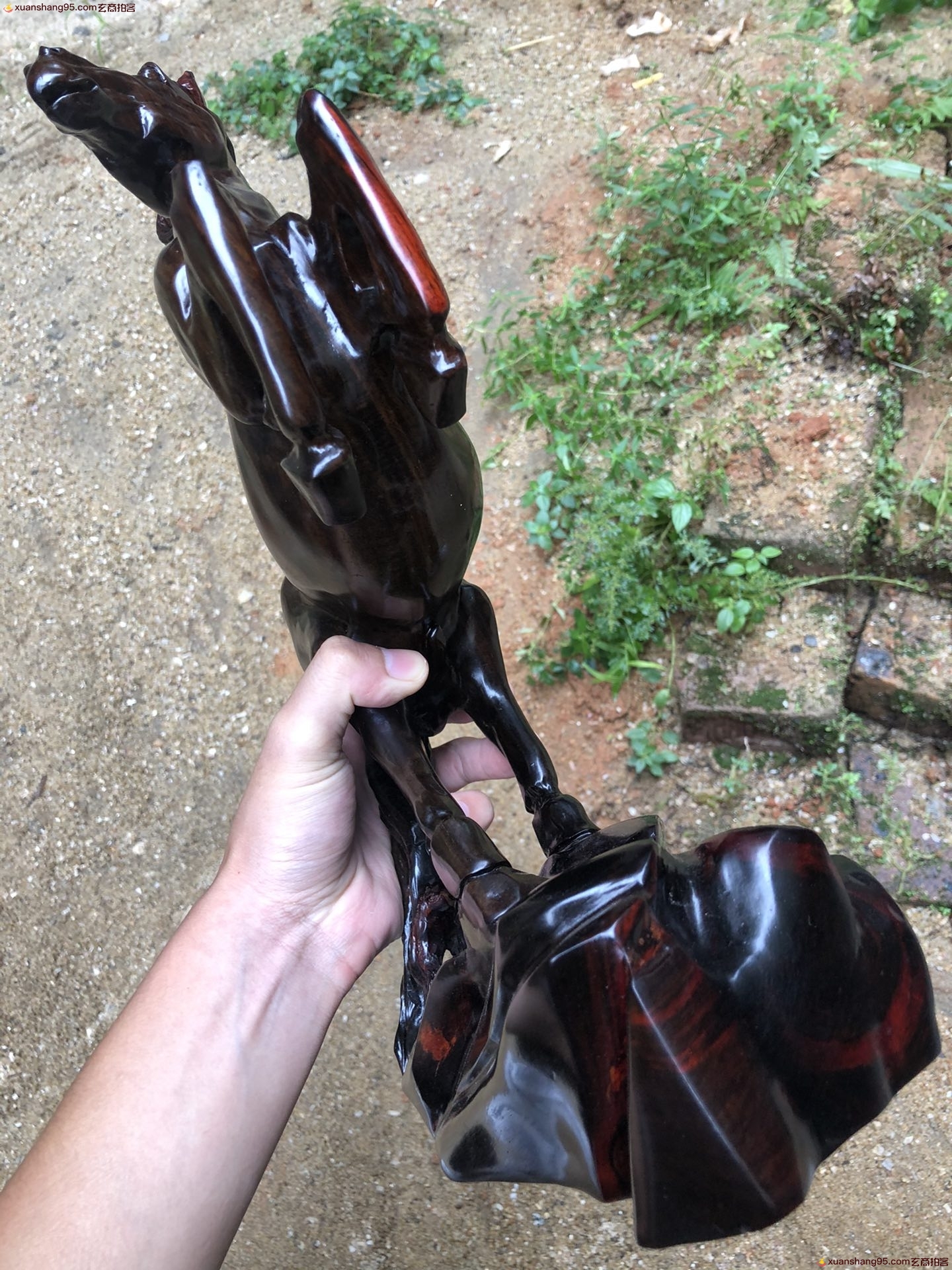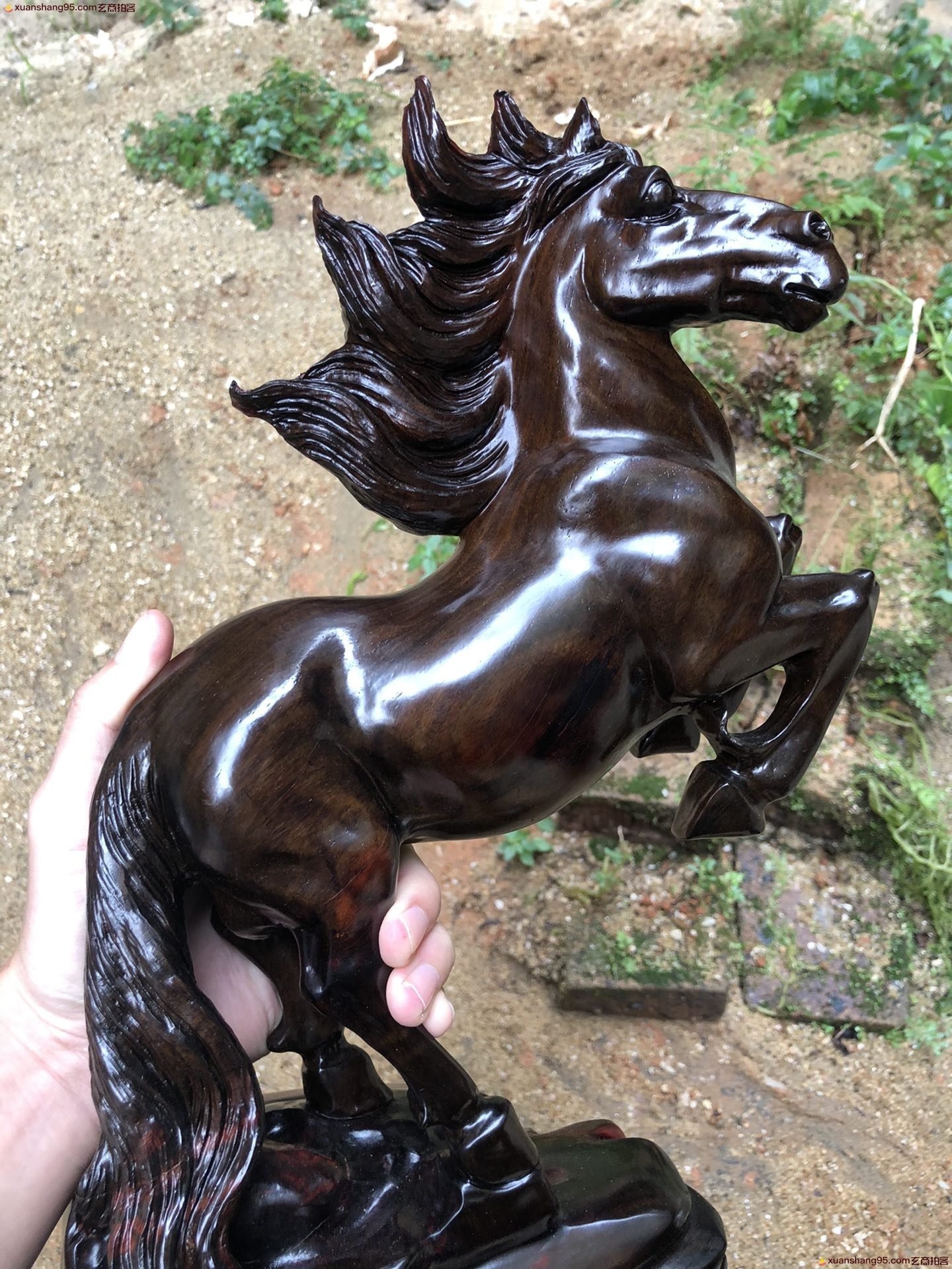 老挝 大红酸枝 一马当先,高密度,老黑料,整料一体雕刻而成,寓意:马到成功,一马当先,长:20.5厘米 宽:11.5厘米 高:36.5厘米 重量:3.72斤