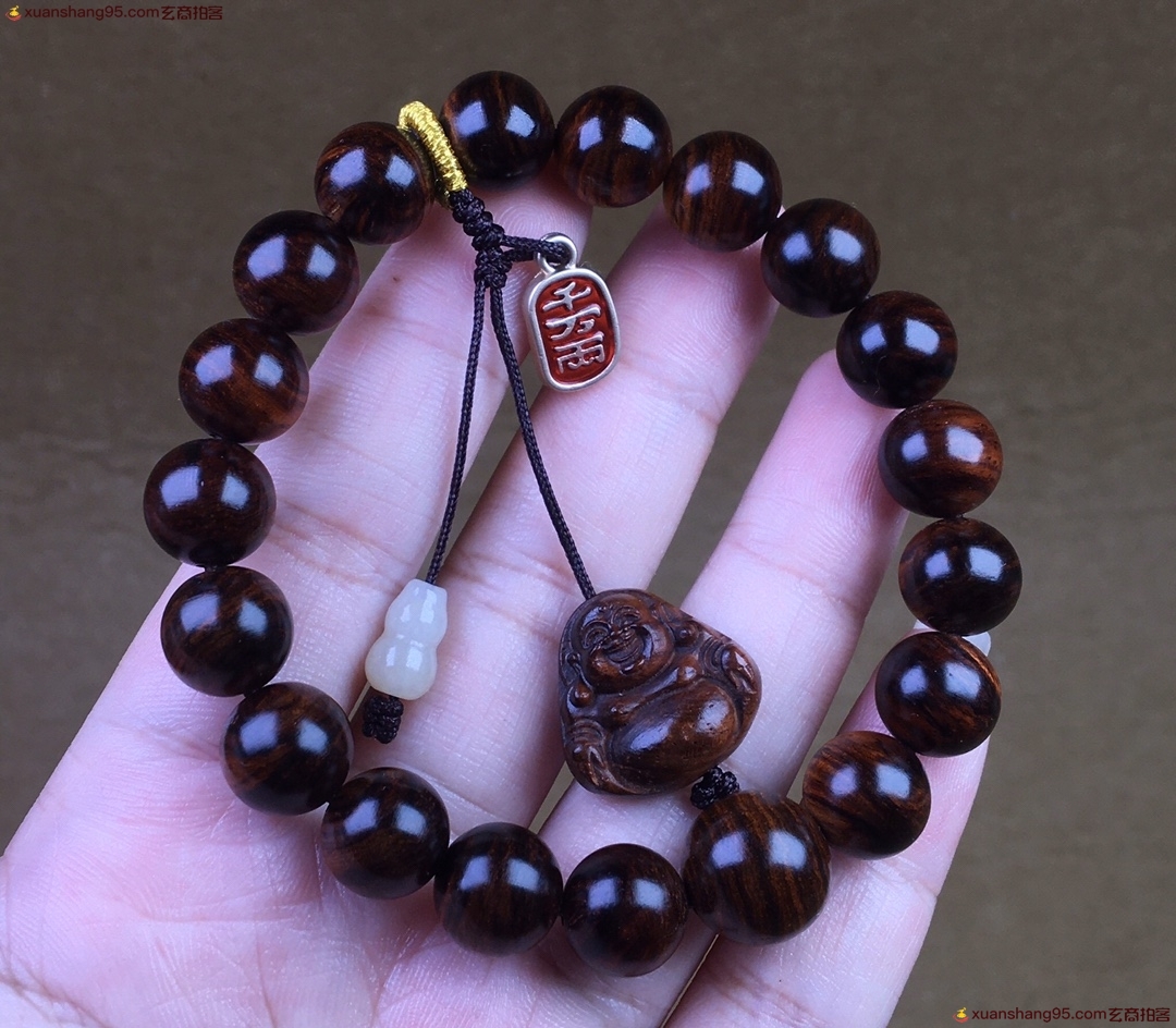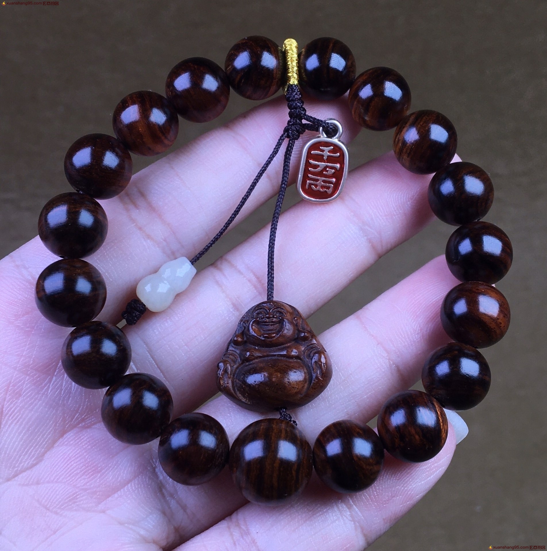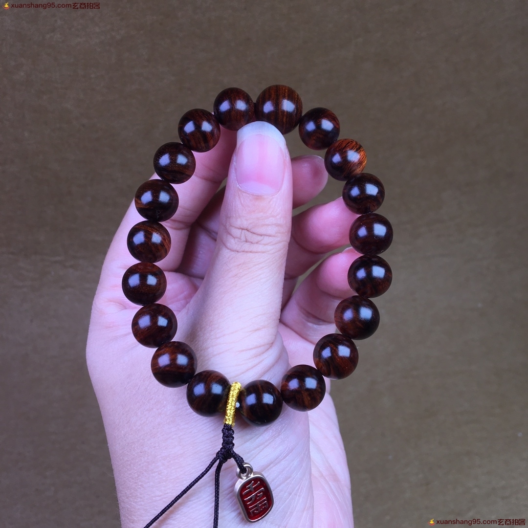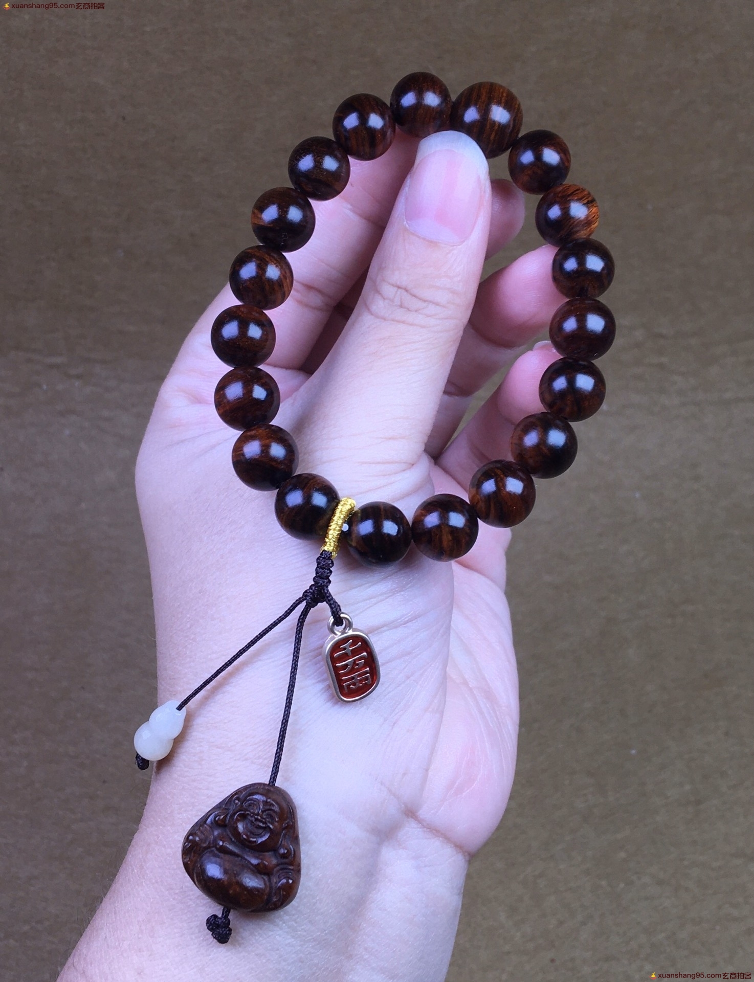 海南黄花梨 手串,精品海南黄花梨1.0手串,1.2顶珠,颗颗精选老料,纹理清晰,油性十足,完美无暇,盘完佳品,配送精美礼盒。