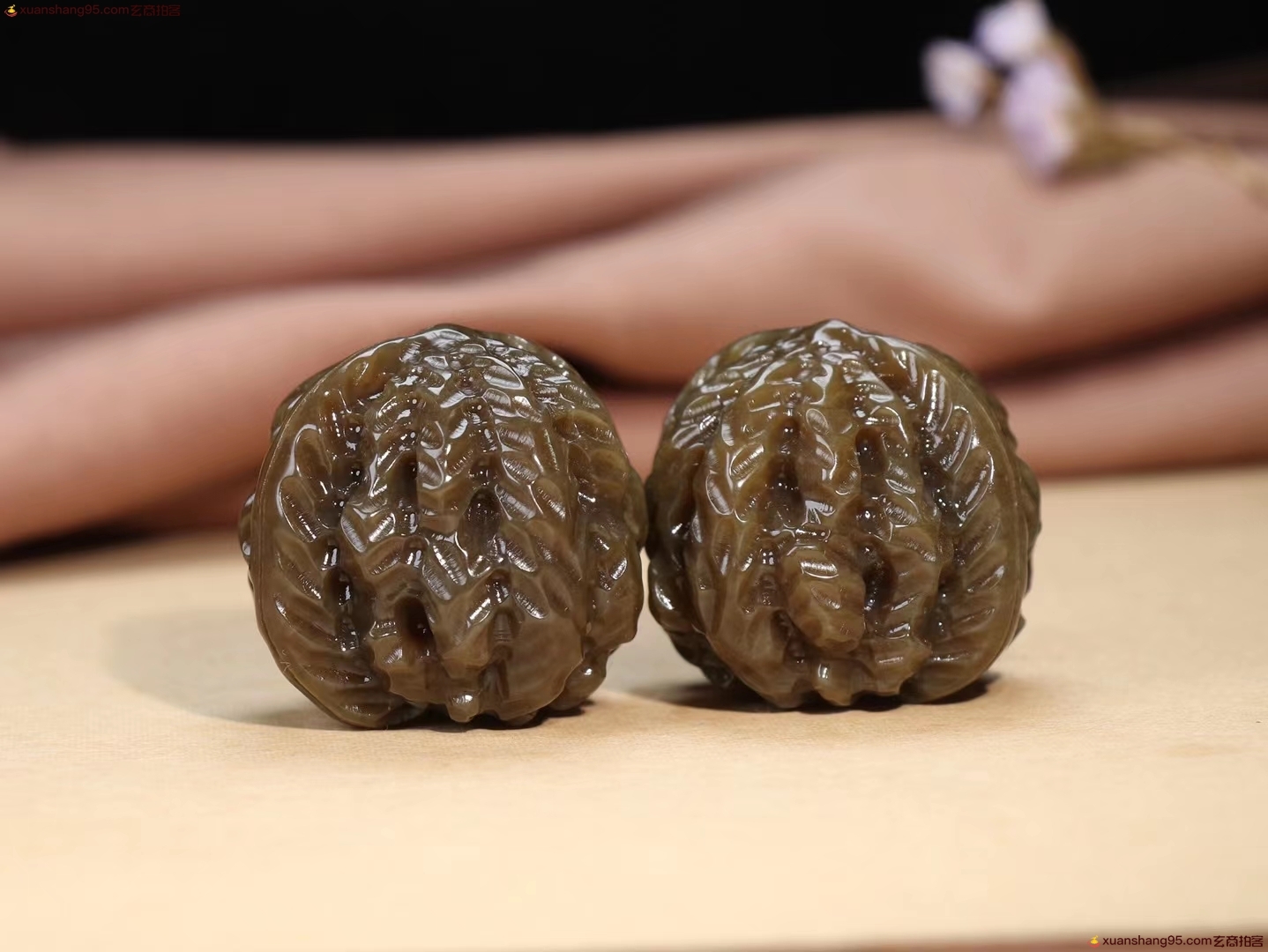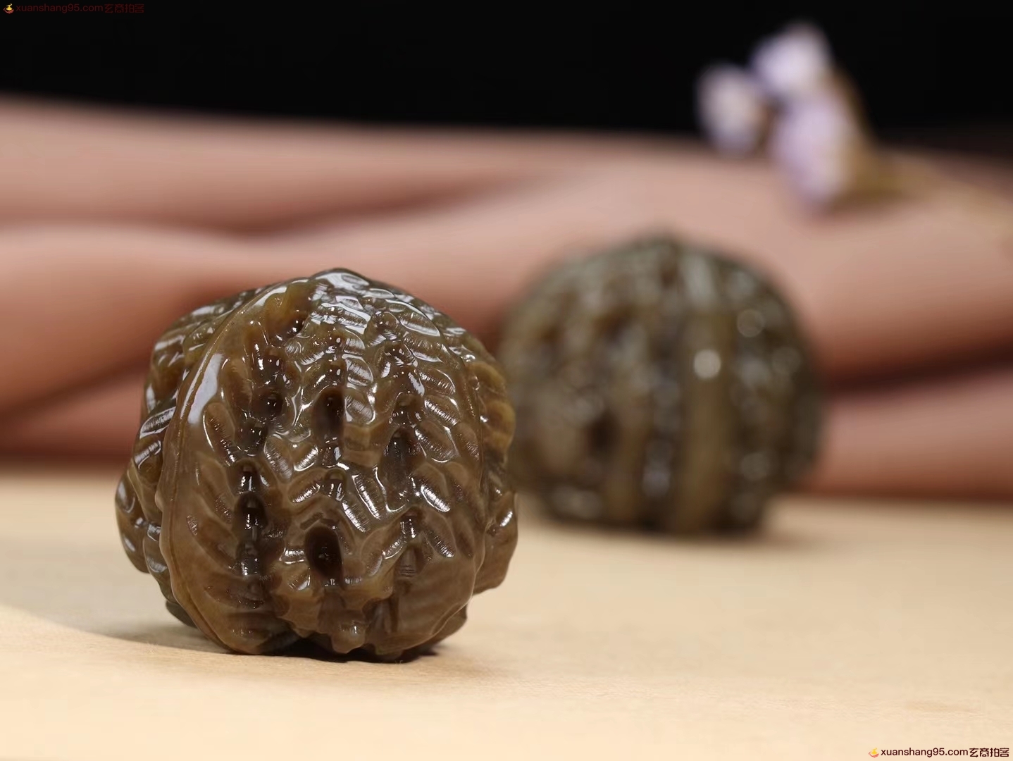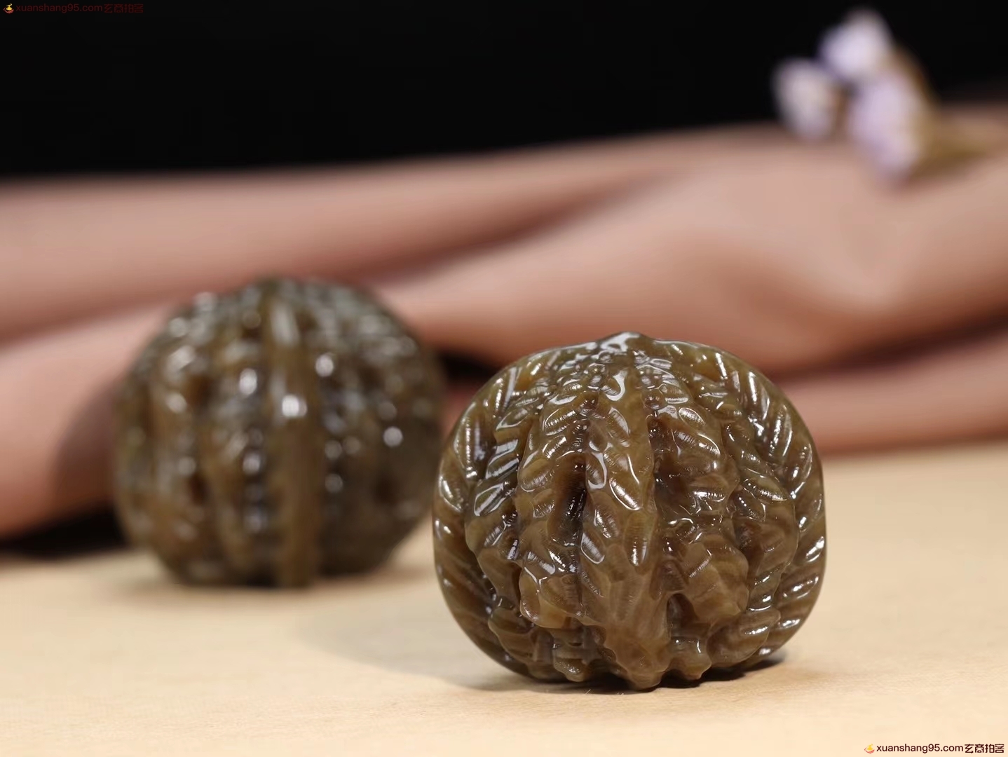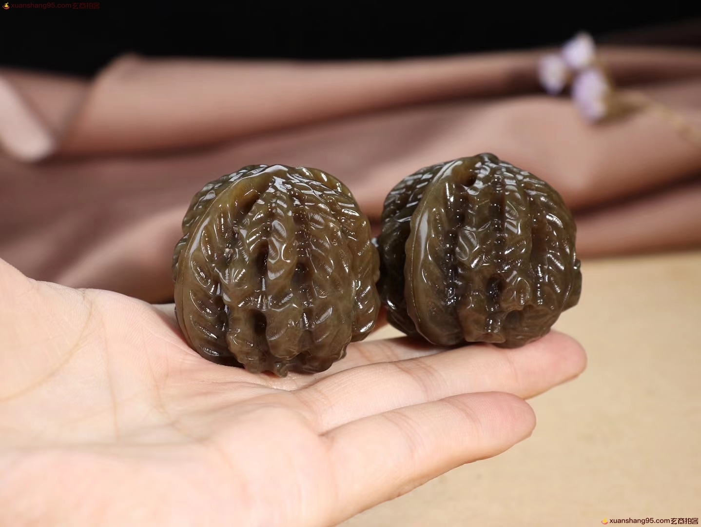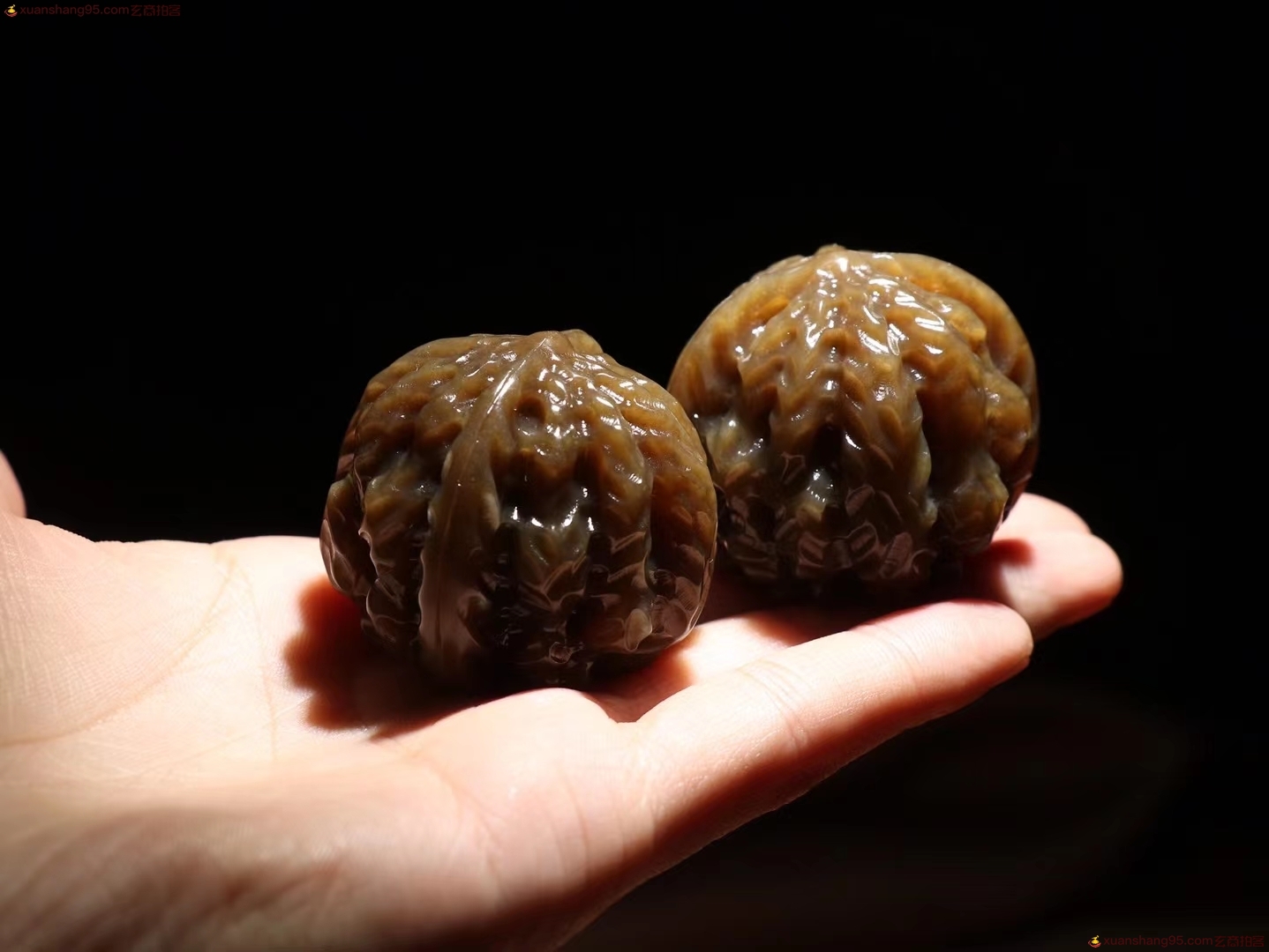 【江山在握】精品和田玉糖玉核桃手把件 玉质温润油性十足掌上旋日月,时光欲倒流。周身气血涌,何年是白头。能工巧匠的精心雕琢核桃一对,外壳纹路刻画细致,逼真生动,整器盈手可握,可随手把玩。总重158克尺寸 取一41-35.5mm。