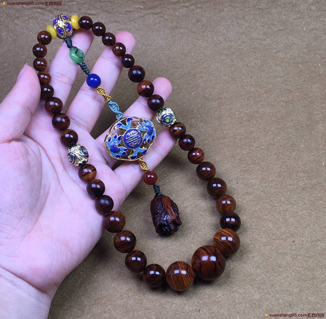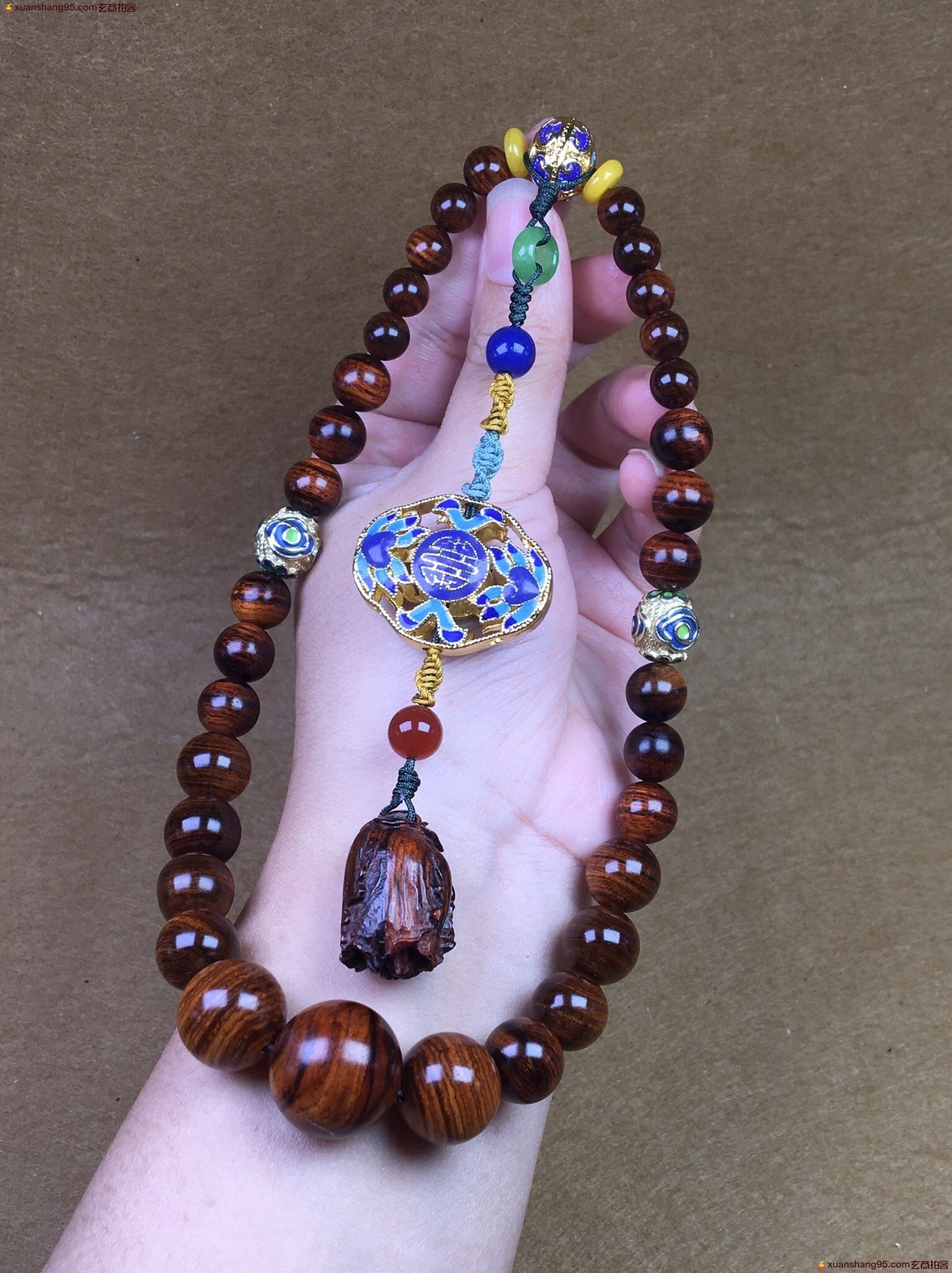 海南黄花梨 手持 挂件,颗颗精选,紫油梨,满纹虎皮纹,百里挑一,降香味浓郁,搭配海黄白菜吊坠,景泰蓝配件,霸气十足,纹理清晰,品质完美。尺寸:0.8至1.8厘米。配送精美礼盒,盘珠袋。