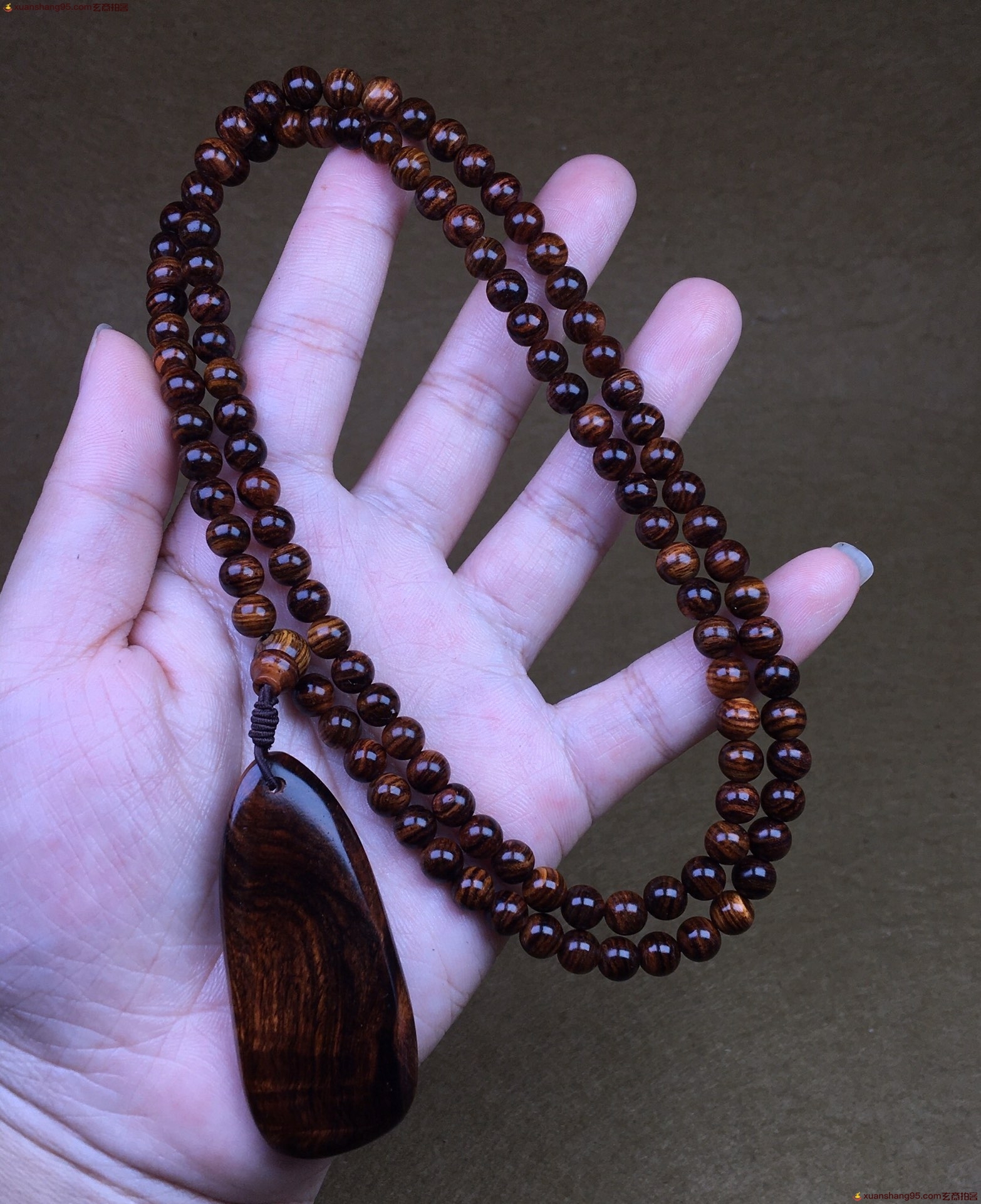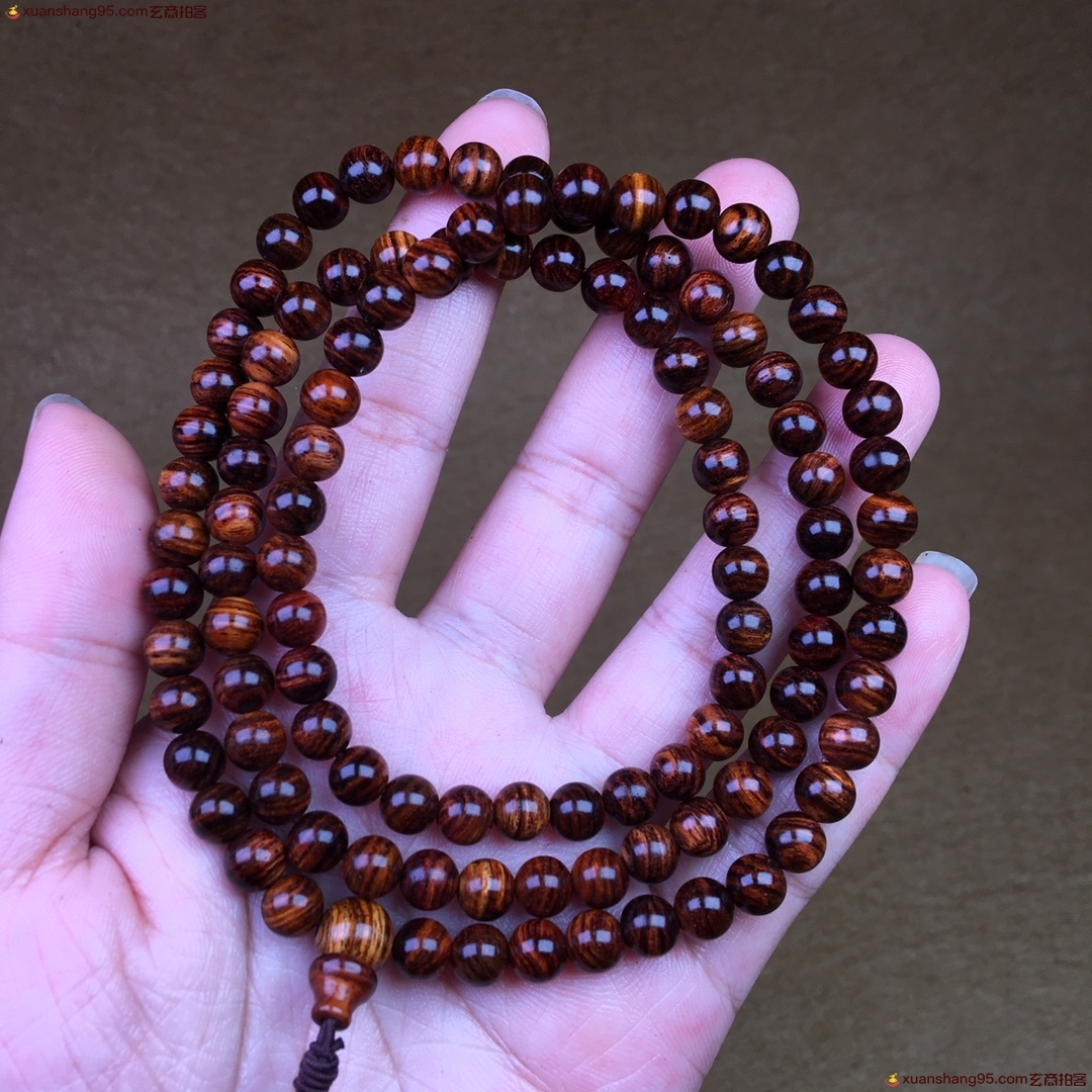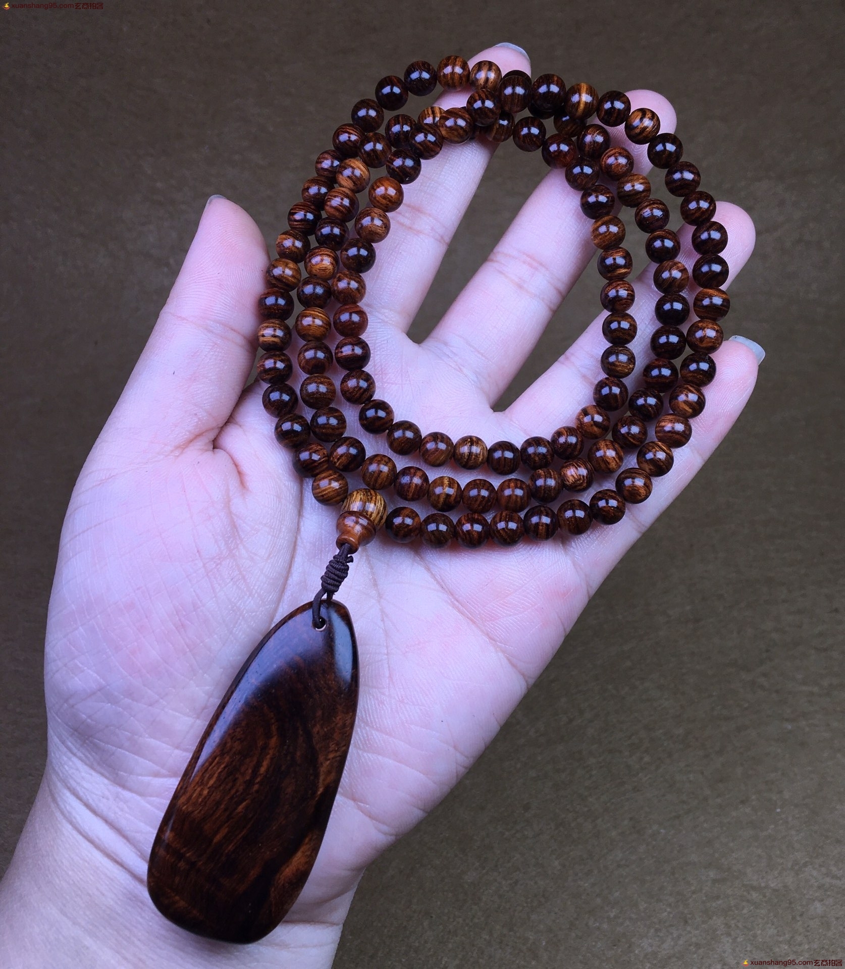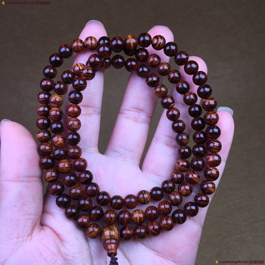 海南黄花梨 佛珠,颗颗精选,满纹虎皮纹,高油密,搭配随行吊坠,完美无暇,甄选108颗,直径:0.6厘米