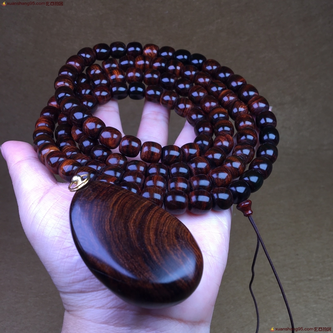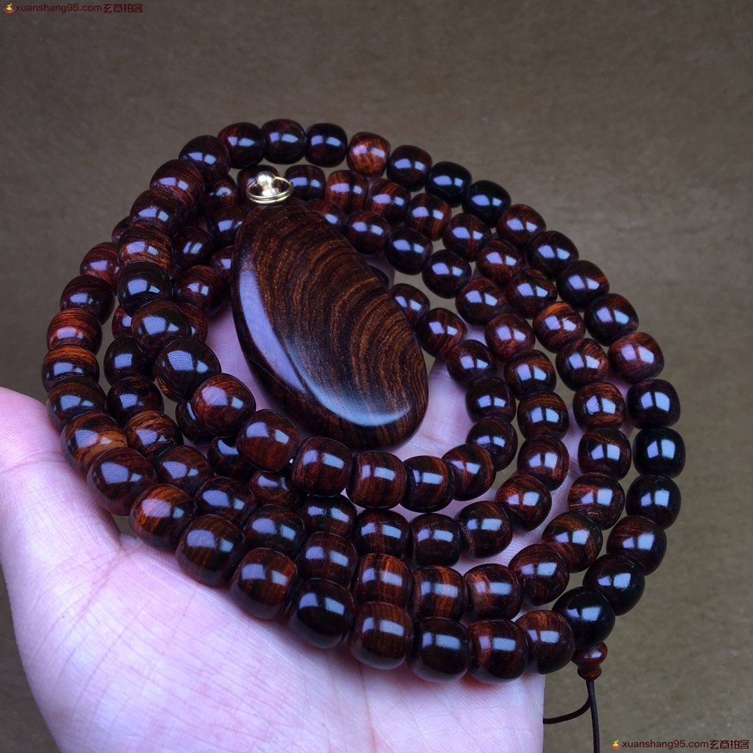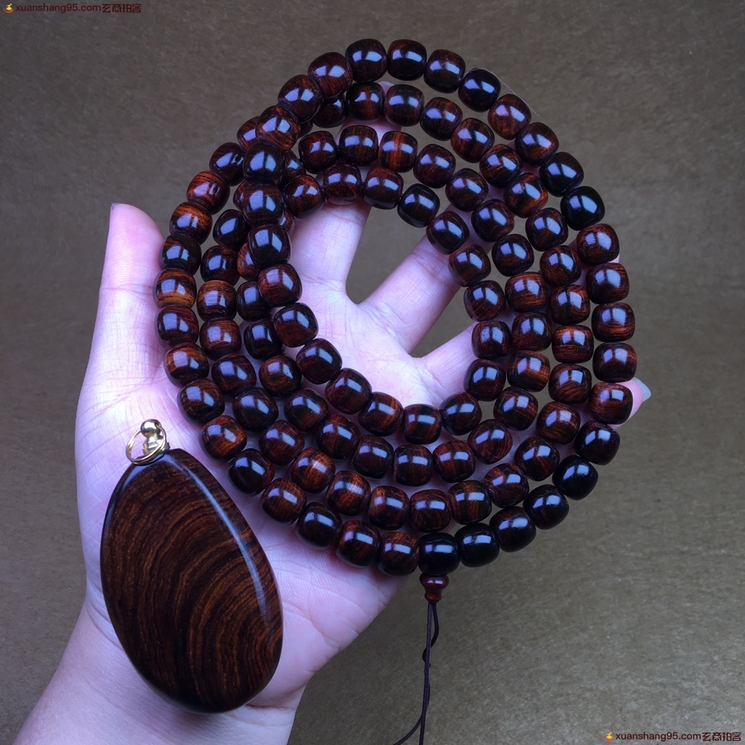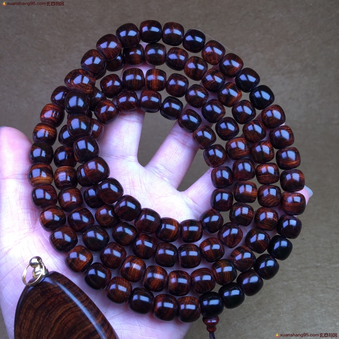 海南黄花梨 108颗 老型珠,1.0*1.0*108颗,颗颗精选紫油梨高油密,满纹虎皮纹,纹理清晰流畅,大料所制,手感舒适,降香味十足。