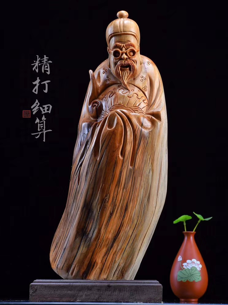 最佳收藏品太行山崖柏 财神 精工 太行崖柏陈化料,自然旋转,名师点缀油性一流,镜面高抛。长18厘米 宽17厘米 高43厘米 重8.7斤。