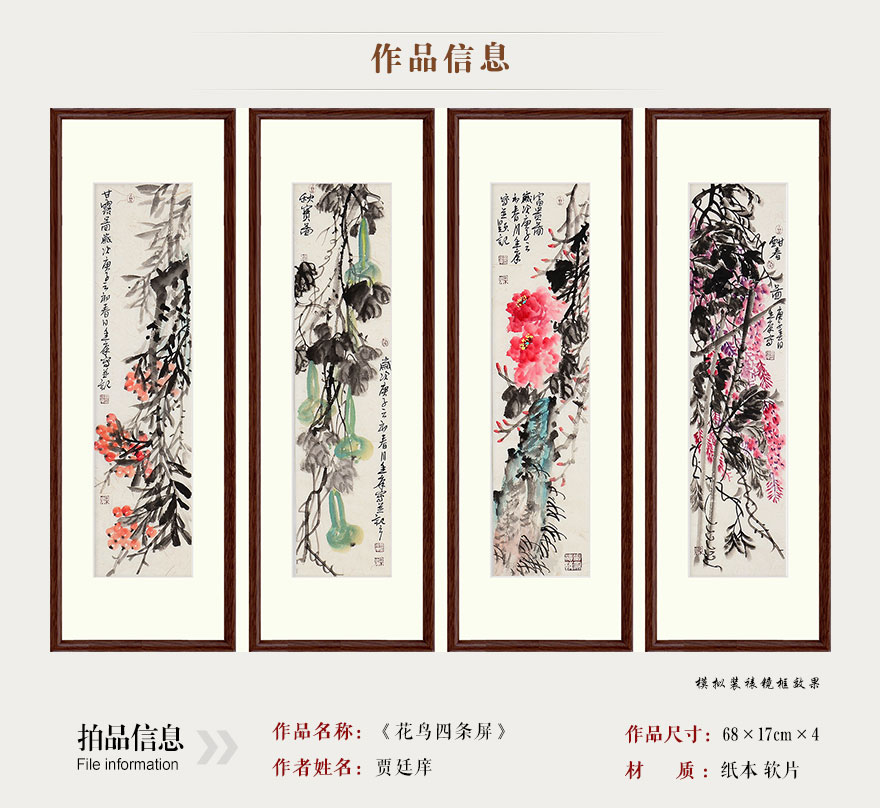 3. 竞拍详细 - 贾廷庠《花鸟四条屏》山西省美协理事