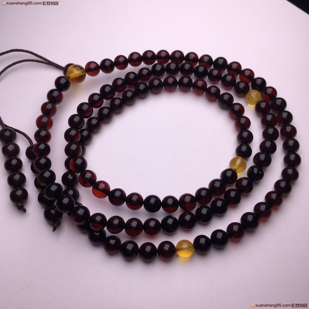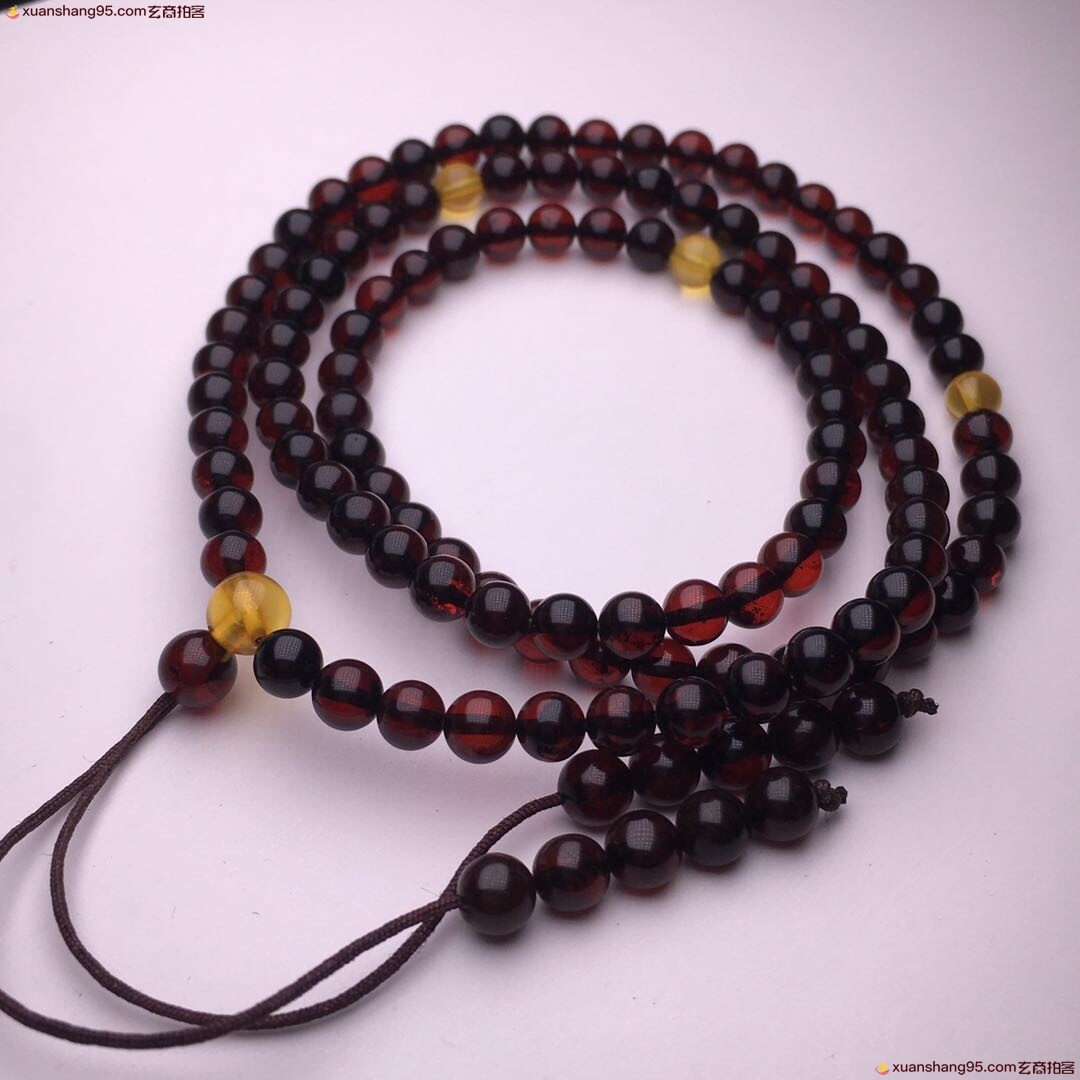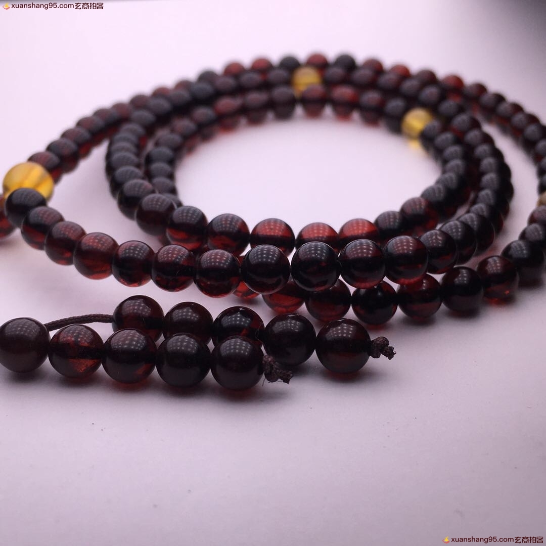 精品 血珀108颗 佛珠,纯天然,略带瑕疵,尺寸5毫米,重9.35克。静待有缘人,