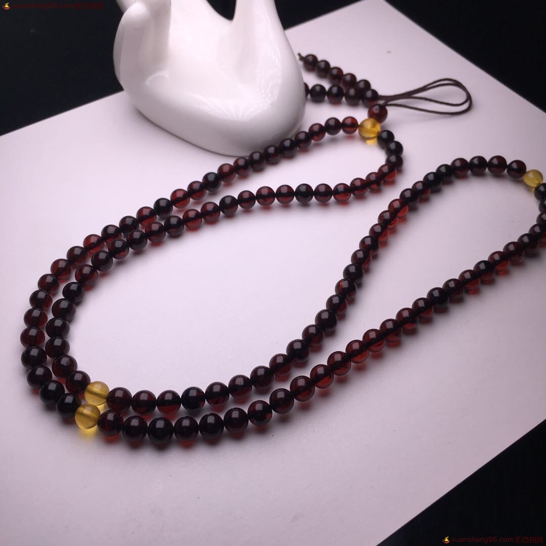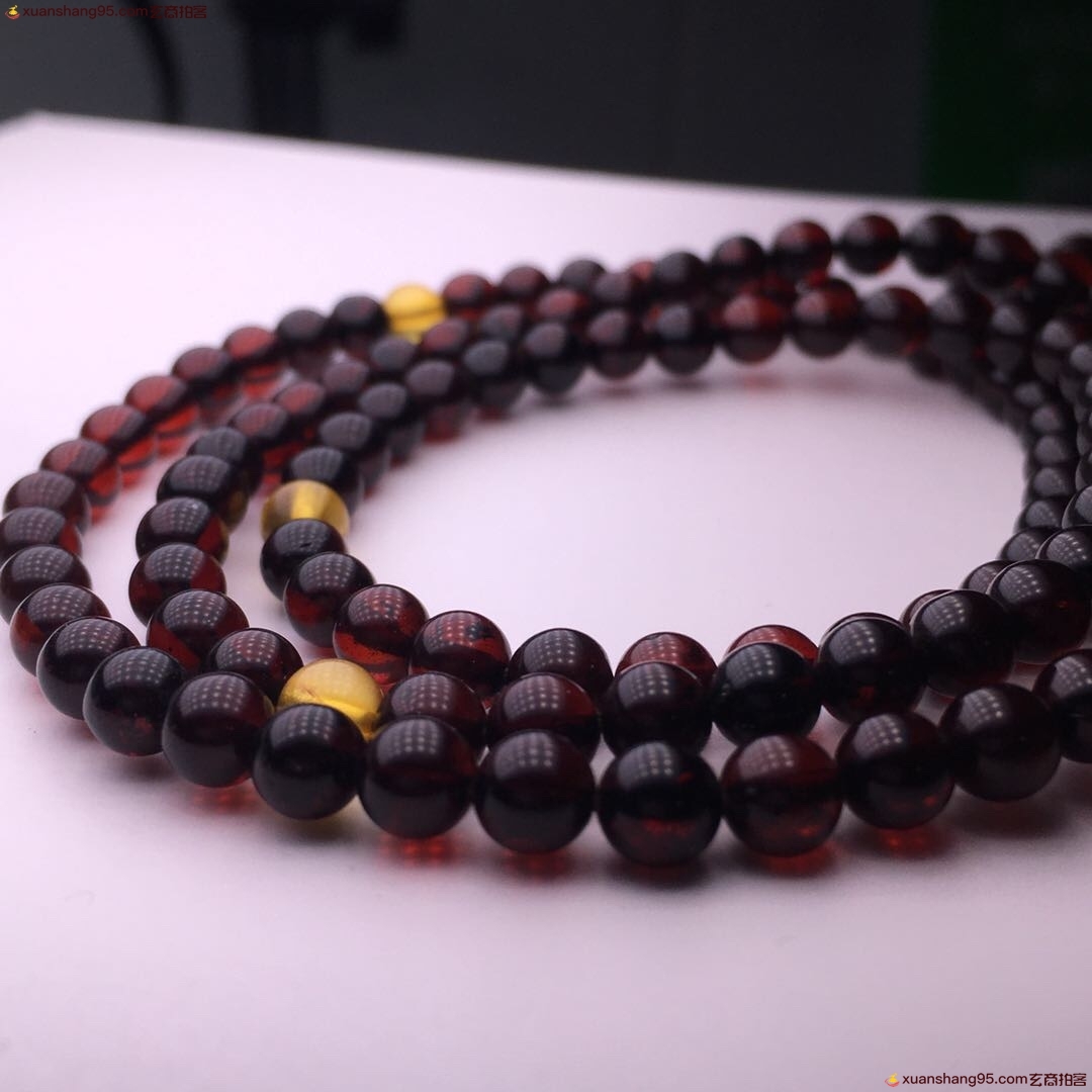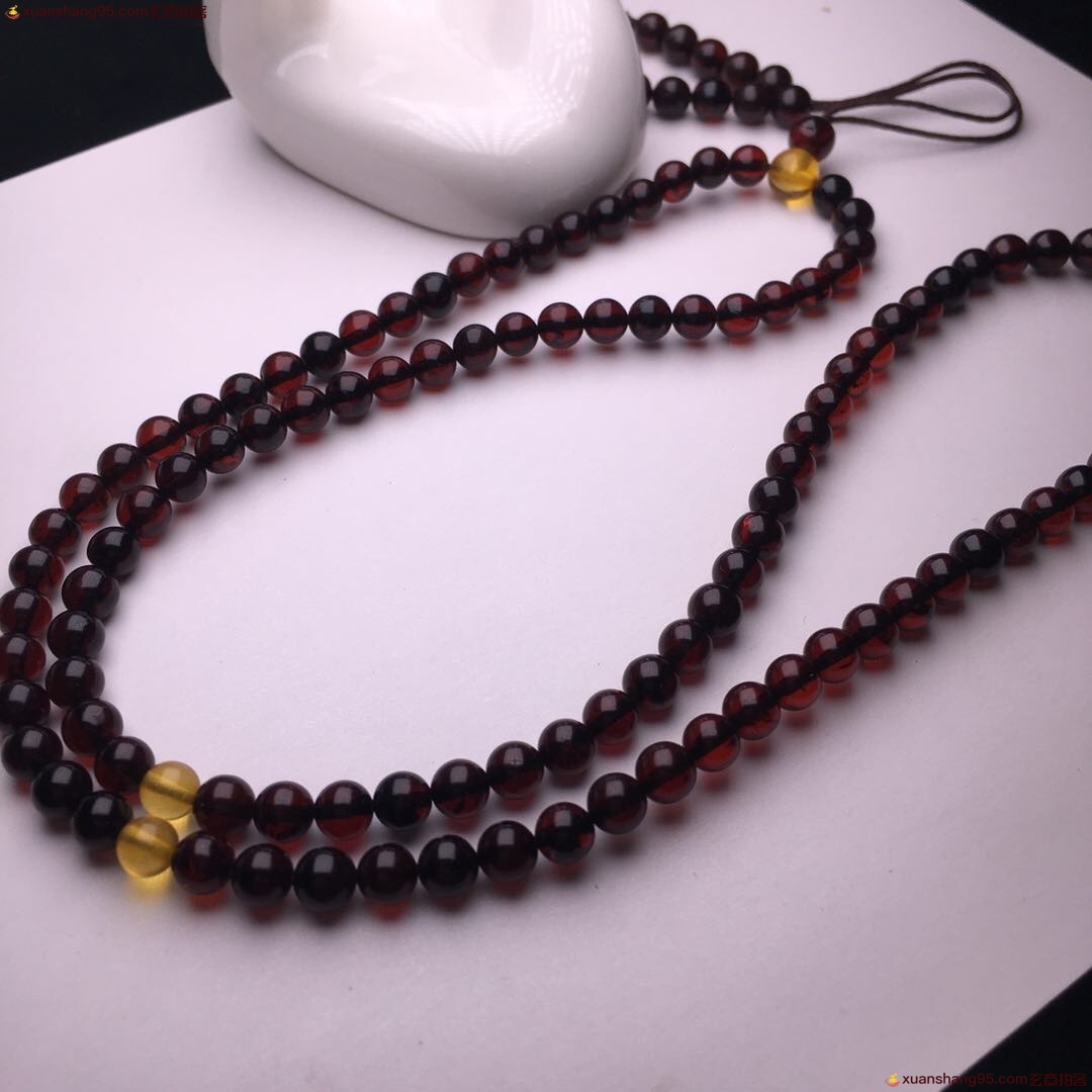 精品 血珀108颗 佛珠,纯天然,略带瑕疵,尺寸5毫米,重9.35克。静待有缘人,