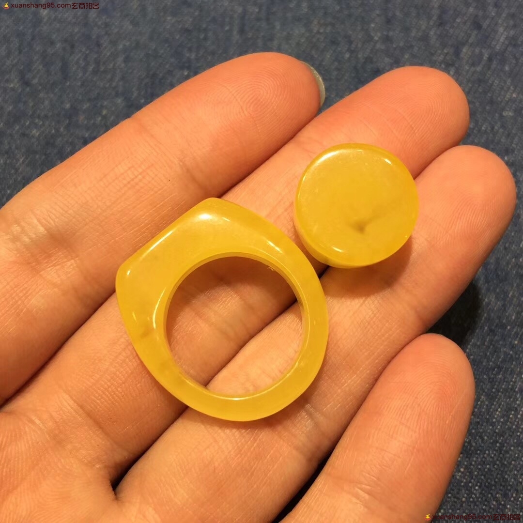 *品 鸡油黄满蜜 指环,颜色漂亮,蜜实蜡满,全品纯天然,无优化无烤色,物美价廉 ,内径:18毫米