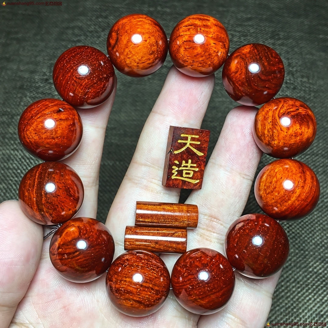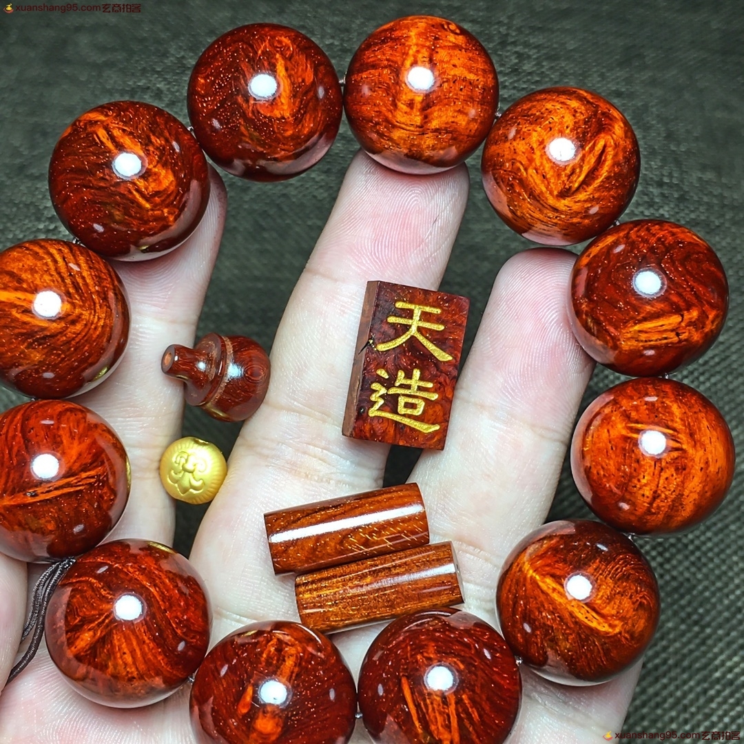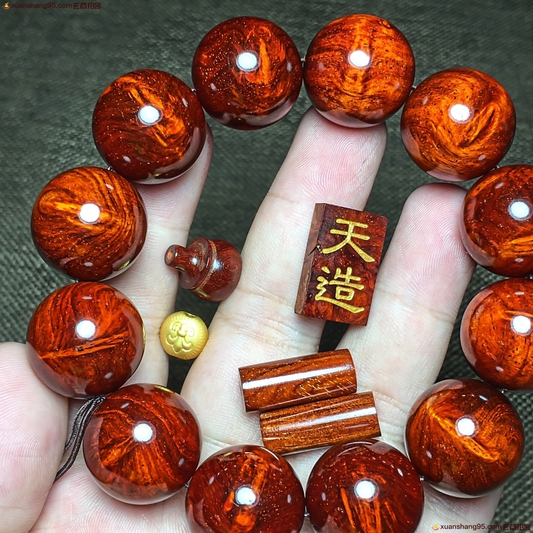 精选 印度小叶紫檀 天造 手串,老料黄金底,瘿子瘤,料质细腻温润,底色干净通透,顶级黄金底,规格:印度小叶紫檀2.0厘米