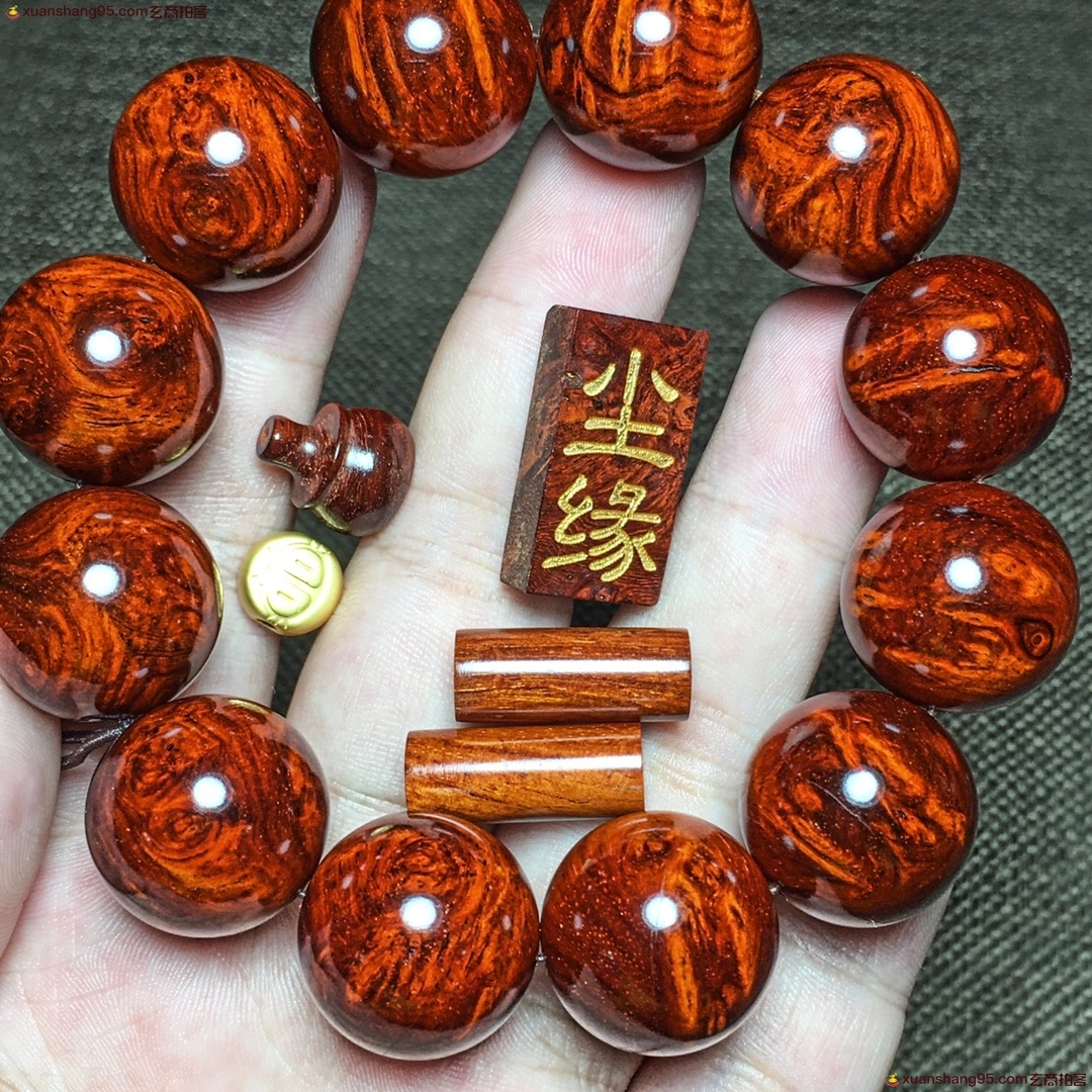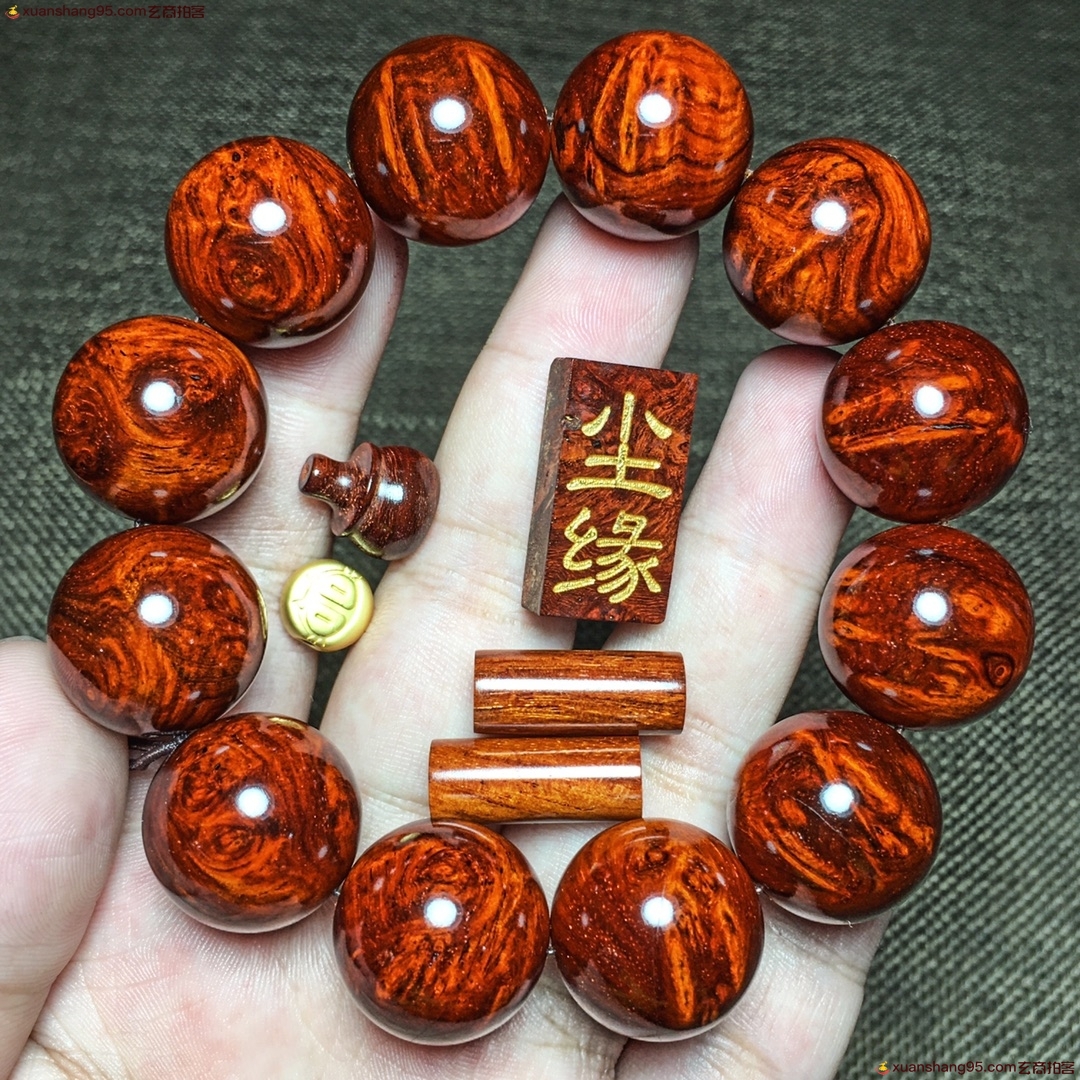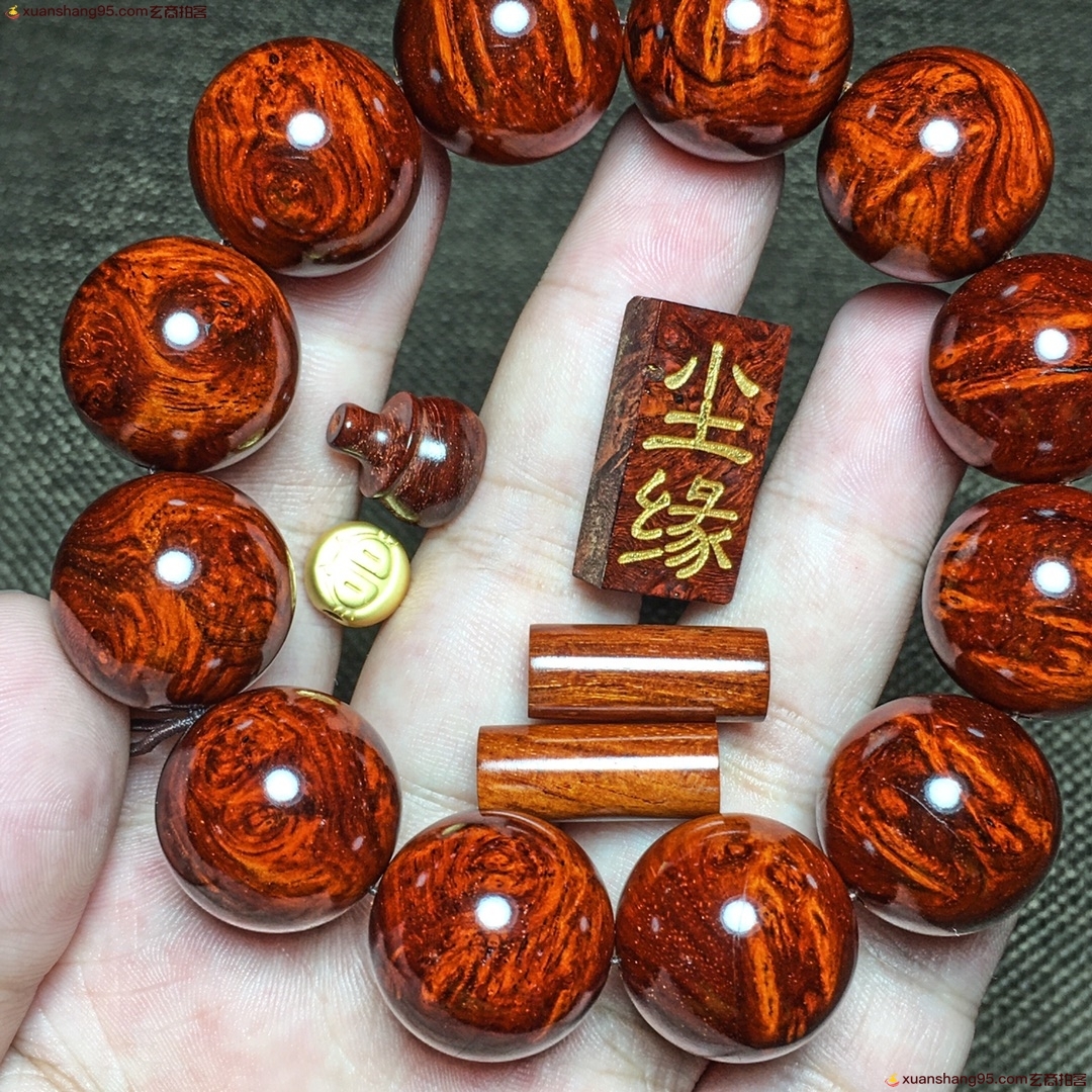 精选 印度小叶紫檀 尘缘 手串,老料黄金底瘤疤,料质温润细腻,底色干净通透,规格:印度小叶紫檀2.0厘米,静待有缘人,