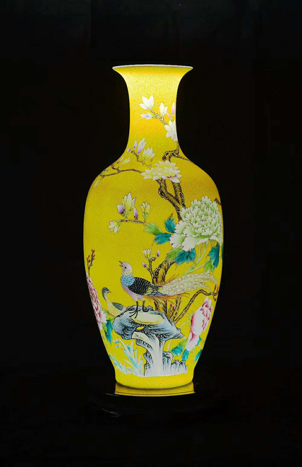 【藏品介绍】 青花、玲珑、粉彩和颜色釉是景德镇的四大传统名瓷。其中,粉彩最为美艳多彩,而粉彩瓷制作中的扒花工艺更是细腻妙绝,令人惊艳。 制作粉彩扒花瓷要经过四次烧造,第一次是烧制陶瓷白胎,第二次是在白胎上刷一层釉料,再以扒花工艺扒出花纹,再进行烧制,第三次是在烧好的瓷胎上画出线条或图案,填充好花鸟、山水的不同颜色,再进行烧制,第四次是在瓷胎顶部或底部描上金粉进行装饰,最后烧制出成品。 【尺寸与品相】
